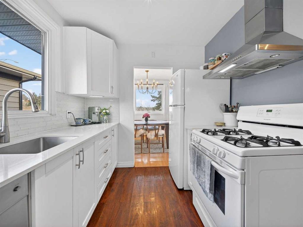 Renovated bungalow perfectly positioned on a sunny corner lot with alley access and picturesque park views. This home blends timeless charm with modern updates, offering versatility for families, investors, or those seeking additional income potential. The main floor features rich hardwood flooring, two spacious bedrooms plus a dedicated office, and a stylish 4-piece bathroom. The renovated kitchen is both functional and elegant, complete with quartz countertops, a gas stove, and ample cabinetry — ideal for everyday living and entertaining. A cozy wood-burning fireplace anchors the living space, adding warmth and character. Step outside to enjoy the brand-new front porch overlooking the park — the perfect spot for morning coffee. The property also includes a detached single-car garage with convenient alley access. Downstairs, the fully LEGAL basement suite offers a separate entrance, providing excellent rental potential or private space for extended family. An exceptional opportunity in a sought-after NW location.