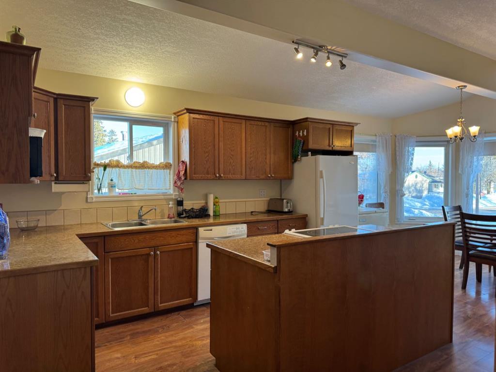 Well-built and solid 5-bedroom, 3-bathroom home with double attached garage! Rare opportunity to own an ICF-constructed home featuring in-floor heat on both levels. This home has been meticulously maintained. The main floor offers over 1,300 sq. ft. of functional living space, including convenient main floor laundry, a bright open-concept kitchen and dining area with abundant cabinetry, a central island with convection oven, and a spacious living room. The primary bedroom features a generous 3-piece ensuite and walk-in closet. Two additional bedrooms and a full 4-piece bathroom complete the main level. The fully developed basement includes two more bedrooms, a 3-piece bathroom, utility room, cold storage, and a dedicated indoor workshop—ideal for hobbies or extra storage. Enjoy outdoor living with a morning deck on the east side (perfect for coffee at sunrise) and an evening deck on the west side for BBQs and relaxing sunsets. The double attached garage features two overhead doors for added convenience. Contact your REALTOR® today to schedule your private showing!