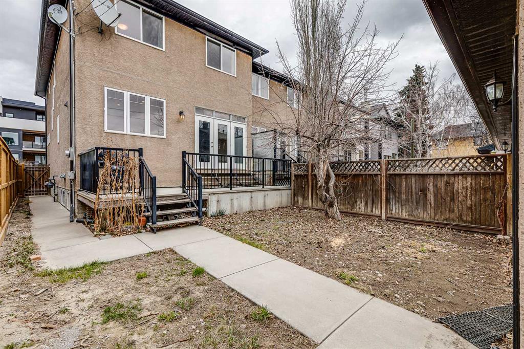 Welcome to this beautifully designed semi-detached home in the highly sought-after community of Marda Loop. Offering nearly 3,000 sqft of thoughtfully designed living space, this home blends timeless architecture with modern comfort. From the moment you step inside, you’ll be impressed by the high ceilings, elegant crown molding, skylights, and a stunning curved staircase. The main floor features a spacious foyer perfect for welcoming guests, a bright living room with a three-sided fireplace, and a generous dining area ideal for entertaining. The kitchen is sure to impress with granite countertops, stainless steel appliances, a large pantry, abundant cabinetry, and a functional island with plenty of prep space. The sunny breakfast nook opens to your private, fully fenced backyard complete with a deck — perfect for BBQs and relaxing evenings outdoors. The yard provides convenient access to the double detached garage. Upstairs, the spacious primary retreat offers a luxurious 5-piece ensuite and walk-in closet. Two additional large bedrooms, a full 4-piece bathroom, and a dedicated laundry area complete the upper level. Two skylights flood the space with natural light. The fully developed basement features two additional bedrooms, a 4-piece bathroom, a large recreation area, and a rare cold room — perfect for extra storage and keeping food fresh. Renovations were started but not completed, giving you the opportunity to add your personal finishing touches and instantly build equity with new flooring and paint. Additional highlights include air conditioning and central vacuum. Living in Marda Loop means enjoying trendy boutiques, vibrant cafés, and diverse dining options just steps from your door. The community also offers fantastic amenities including an outdoor pool, tennis and pickleball courts, in the summer, and an outdoor skating rink in the winter. With easy access to major routes leading to the mountains, weekend escapes are effortless. This exceptional home offers space, style, and an unbeatable location — a true must-see!