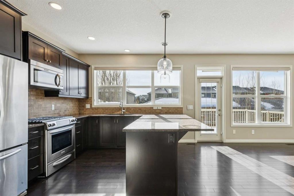 Beautifully maintained & upgraded home on a choice, south exposure lot. The “Reunite” is one of Jayman’s most popular plans offering 9’ ceilings & an open plan that allows for an abundance of natural light from dawn to dusk. Spacious formal entry with 2 steps up to the comfortable great room highlighted with a brick faced fireplace with a wooden mantle. The adjoining full size dining area & gorgeous kitchen make this a wonderful space for large family gatherings & entertaining. Premium granite upgraded pull-out drawers, newer Bosch dishwasher & the oversized table-top peninsula has room for 4 stools - great for serving buffet style meals. The south exposure features a large picture window overlooking the backyard. Garden door to a spacious 12’x10’ deck with a newer remote-controlled awning - perfect for BBQs & summer dinners. A convenient computer station, private ½ bath and direct access to the fully finished double garage (drywall, insulation, heat & epoxy floor) complete the main floor. The upper level offers a spacious bonus room, 4-piece bathroom, 3 bedrooms including a large primary suite with 5-piece spa-inspired ensuite, dual basins & a deep soaker tub. The convenient laundry room has been beautifully upgraded with upper cabinets, a folding table & storage closet. Many upgrades throughout the home including maple hardwood flooring on the main, LVP flooring up, lighting & plumbing fixtures. The lower level was professionally designed & finished with all required permits. The design of the large rec room allows for easy addition of a wall & door to create an optional 4th bedroom. Fully tiled 5’ step-in shower, quartz vanity countertop & electric heated flooring in the 3-piece bath. Custom wet bar, sink & refreshment fridge & room for a full-size fridge or stand-up freezer as well. Oversized storage closet with removable shelving. Large storage & mechanical room with a wash basin for crafts/hobbies. The back yard is a true oasis! Beautifully manicured & mature landscaping. A separate garden deck & a private retreat deck with portable firepit. Spacious 110’ fully enclosed area under the deck is great for seasonal furniture & storage. Enjoy the additional front & back LED lighting all year long. Over $100,000 in additional upgrades & lower-level development in the last 10 years. Wonderful curb appeal with Hardy board siding & stone front trim. Great location, one block to K-8 public school & close to walking paths & parks. Minutes to Cochrane’s popular Spray Lake Rec Centre, only 20 minutes to the Tuscany LRT or 35 minutes to YYC airport. Enjoy the views of the majestic Rocky Mountains every day on your drive home and on your weekend drives west into K-Country. Pick your possession date, move right in and enjoy! Great home! Great value!