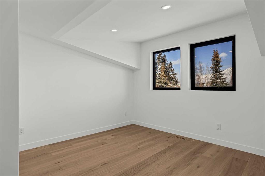 Experience modern mountain living in this brand new stunning 5-bedroom, 5-bathroom duplex, perfectly situated in the heart of South Canmore. Built by the renowned Lakusta Homes, this architectural gem features a sleek shed roof design and a thoughtfully crafted floor plan, offering both style and functionality. With a legal suite featuring a private entrance, it's ideal for generating rental income or accommodating extended family. The heated double car garage provides convenience and comfort, especially during chilly mountain mornings. Designed for easy accessibility, the main floor offers one-level living, while the south-facing orientation ensures year-round natural light and breathtaking mountain views. Located just steps from the Bow River and scenic walking trails, this exceptional home combines modern design with mountain charm, offering the perfect retreat in one of Canmore's most desirable neighborhoods.
