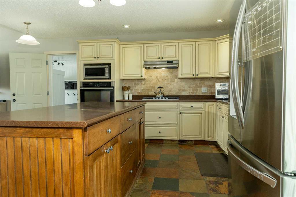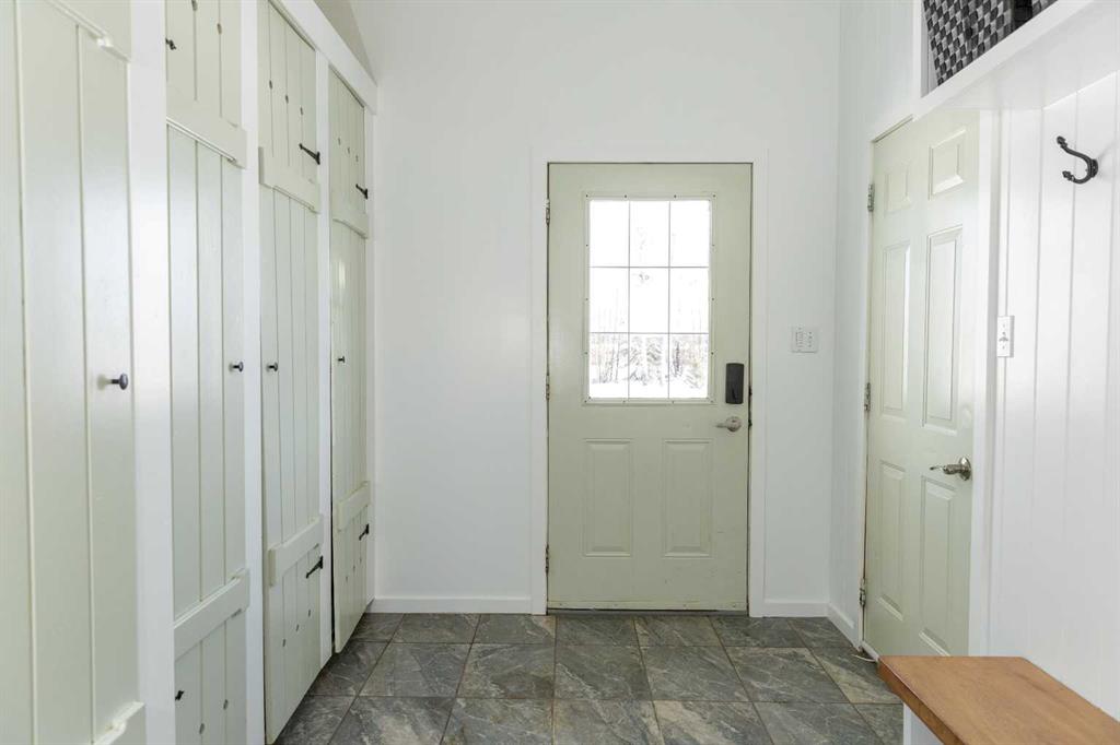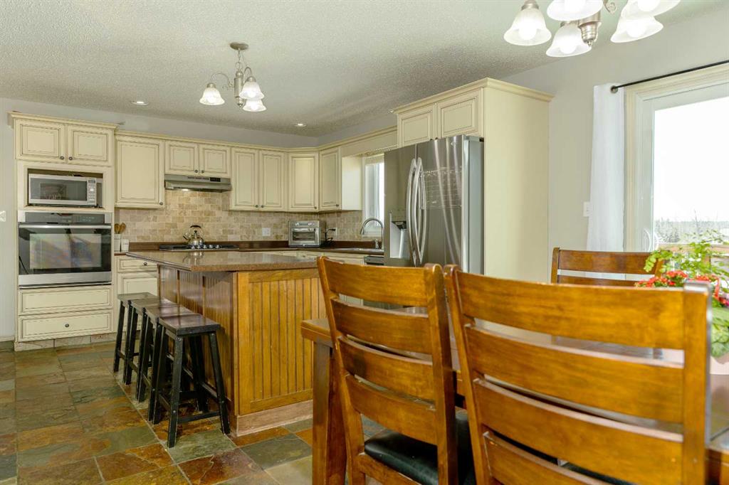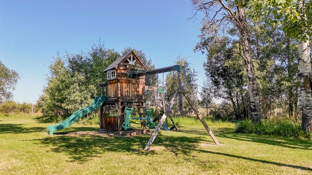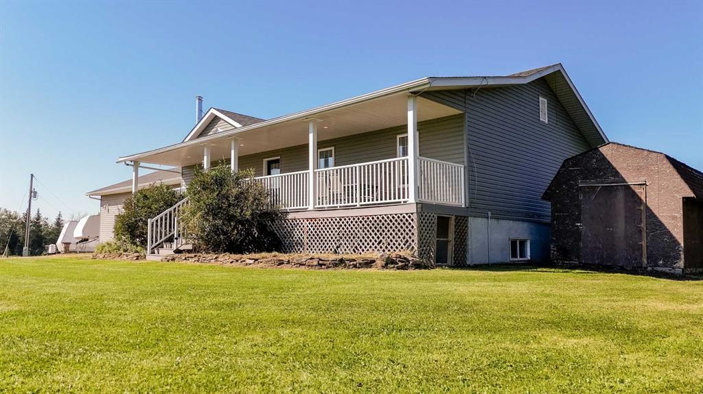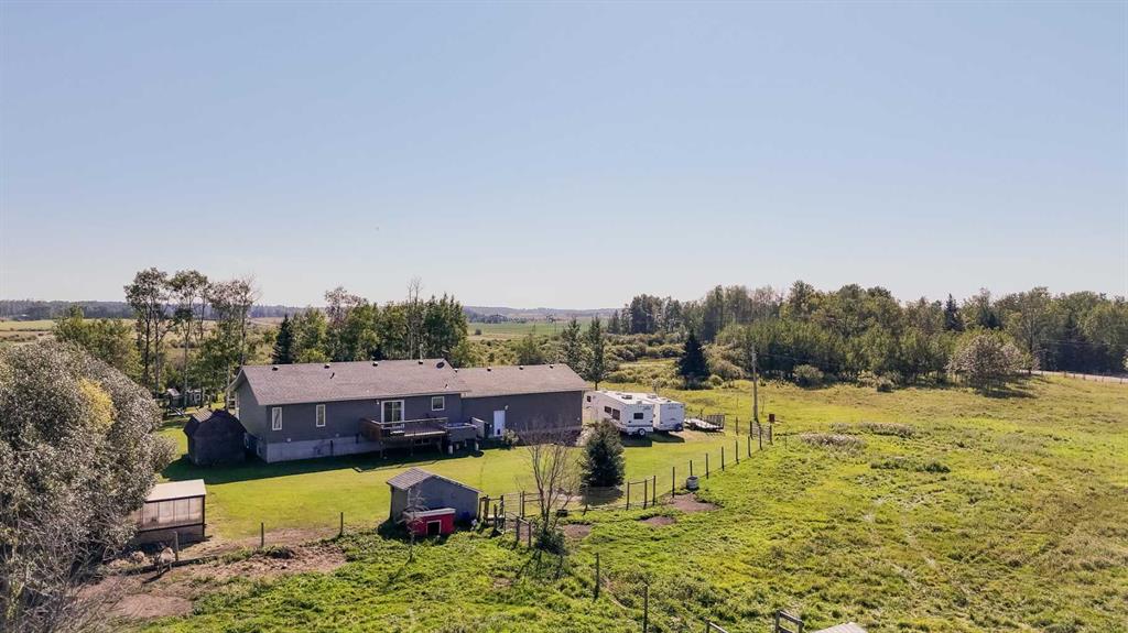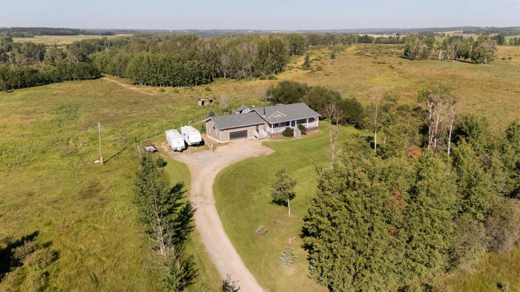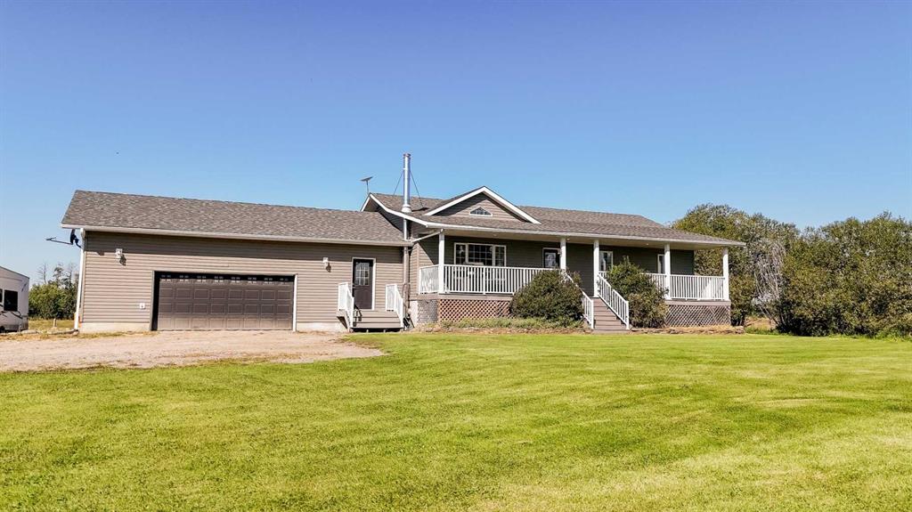 Finally, the acreage that checks all boxes! Treed privacy, relaxing views yet within minutes of full amenities, set up for a hobby farm and garden spaces, over 2800 sq ft of living space, energy efficient and move in ready! Welcome to 7+ acres of country bliss. Conveniently pull into the oversized attached garage boasting in-floor heat and take a load off as you walk into the spacious mudroom equipped with plenty of closet and storage space! Sunlit views shine throughout the open concept kitchen; perfect for family and entertaining. The west facing window overlooking the pasture has been upgraded to triple pane as well as the patio door leading out to your sunset haven. The dining area is thoughtfully situated aside the oversized kitchen island easily accommodating extra guests. Relax in the spacious living room featuring entry to the covered deck; great for taking in sunrises with your morning coffee as the kids play in the front yard. The main floor bathroom, primary bedroom with 4 piece ensuite and two bedrooms complete this sought after layout. Get cozy downstairs in the family room watching your favourite movie or great conversation by the fireplace. Under stair storage divides the recreation space and large bonus office space. A beautifully tiled walk in shower brings spa retreat vibes while two more bedrooms add comfort to your peaceful serenity. Let country roads bring you home!
