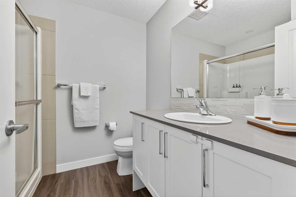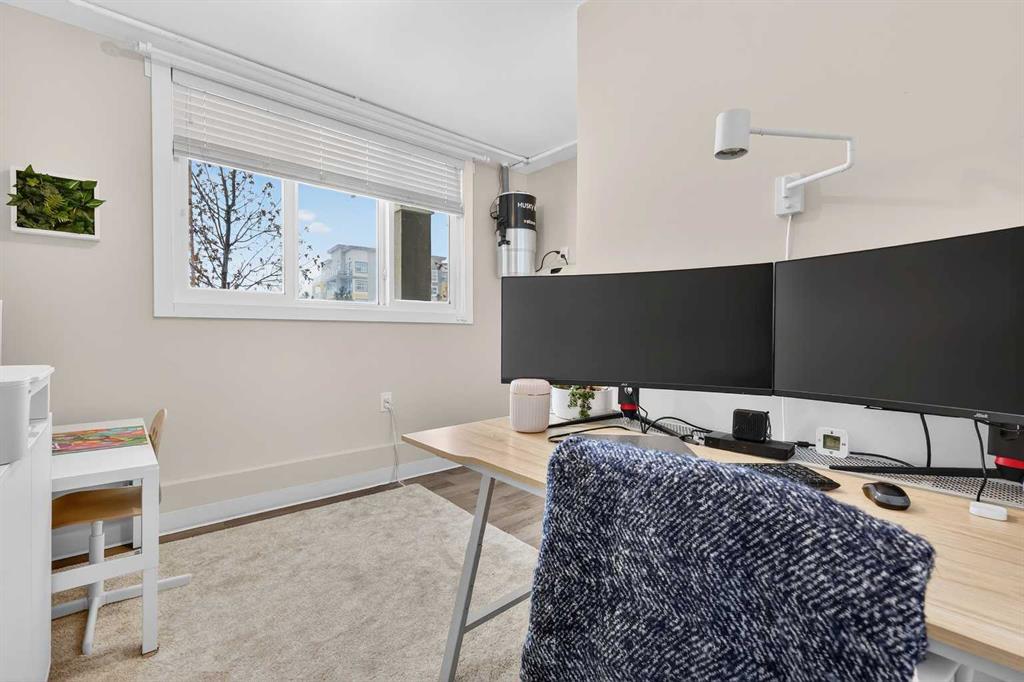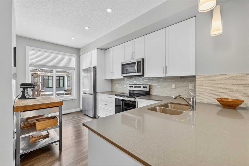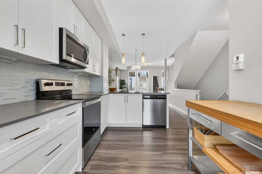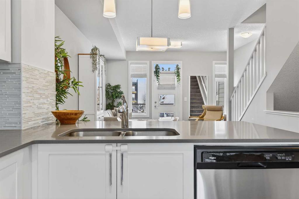 QUICK POSSESSION | DUAL PRIMARY SUITES | INDOOR PARKING – PLUS MAIN FLOOR DEN This trendy and spacious three-storey townhome in the desirable community of Seton offers outstanding value, a stylish modern design, and a convenient location close to transit, shopping, schools, walking paths, green spaces, dog parks, YMCA and more. Designed for both comfort and functionality, this home is ideal for professionals, families, or investors looking for low-maintenance living in a vibrant urban setting. The entry-level welcomes you with a large front foyer, a versatile hobby room or home office, extra storage space, and convenient access to the attached garage. The upper main level features an open-concept living space with luxury vinyl plank flooring and abundant natural light, creating a warm and inviting atmosphere. The spacious living room flows seamlessly into the well-appointed kitchen and dining area, making this home perfect for relaxing evenings or entertaining guests. The kitchen is a true standout, featuring white shaker-style cabinetry, quartz countertops, a stunning tile backsplash, upgraded stainless steel appliances, and a dramatic peninsula island with a flush eating bar and undermount sink. Just off the dining area, a sizeable west-facing balcony offers the ideal space for outdoor enjoyment with a covered BBQ area and peaceful mountain views. Upstairs, the home continues to impress with two generously sized primary bedrooms with private en-suites, a laundry closet with a stacked washer and dryer. The main primary suite is thoughtfully designed and includes a large walk-in closet and a luxurious private ensuite featuring quartz countertops and a glass-enclosed walk-in shower. This beautiful home combines contemporary aesthetics with everyday practicality, showcasing a modern décor palette, smart layout, and quality finishings throughout. With low-maintenance living, thoughtful upgrades, and unbeatable convenience, this property offers a fantastic opportunity to move into a vibrant and growing community. Seton is more than a neighbourhood—it’s a lifestyle. Live healthy and connected in a thriving, walkable community where you’re minutes from the South Health Campus, the world’s largest YMCA, green spaces, transit, and the upcoming LRT extension. Whether you're commuting, working remotely, or enjoying your downtime, Seton offers it all. A spring 2026 possession date is available—don’t miss your chance to make this stylish townhome your own. Contact your friendly REALTOR® today to arrange your private showing and experience all that this home and Seton have to offer!