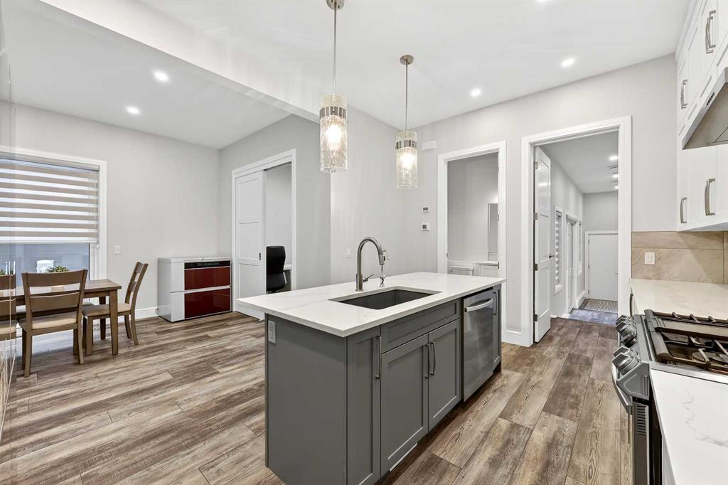 This impressive two-storey home offers over 3,000 sq. ft. of thoughtfully designed living space, perfect for larger families or those who value extra room to grow. A separate carriage house includes a fully legal suite with 2-bedroom, 1-bath, providing privacy and flexibility for extended family or guests. As you step inside, you’re welcomed by high ceilings and large, sun-filled windows that create a bright and open feel. The main living room features a beautiful gas fireplace, perfect for relaxing evenings at home. The kitchen is both stylish and functional, complete with granite countertops, soft-close cabinetry, and a gas stove — ideal for everyday living and entertaining. A spacious mudroom offers access to the backyard deck and the oversized double attached garage. The main floor also includes a generous den or home office and a convenient 2-piece bathroom. Upstairs, you’ll find three well-sized bedrooms, each with its own private ensuite — a rare and highly desirable feature. The upper-level laundry room includes a sink for added convenience. The primary bedroom is a true retreat, showcasing a stunning 5-piece ensuite and a walk-in closet with plenty of space. The fully finished basement adds even more versatility, featuring two additional bedrooms and a large entertainment area complete with a wet bar — perfect for hosting family and friends. The carriage house legal suite is fully self-contained with two bedrooms, a 4-piece bathroom, and a beautiful kitchen equipped with stainless steel appliances, a pantry, and ample storage. This exceptional property offers space, comfort, and flexibility — all designed to support modern multigenerational living.