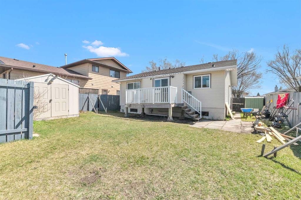 Welcome to this freshly painted and well-cared-for bungalow in the convenient community of Whitehorn, offering a perfect blend of comfort, updates, and outdoor space. Located just minutes from schools, parks, shopping, and the C-Train, this home is ideal for families or investors. The main floor features newer windows, bamboo flooring, and a bright, open living room that flows into a kitchen with tile flooring, white cabinets, and a classic tile backsplash. From the dining area, step out to a durable composite deck—built to last—and a massive backyard perfect for entertaining, pets, or kids. You’ll find three spacious bedrooms, including a primary with its own 2-piece ensuite, plus a full 4-piece bathroom. A separate side entrance leads to the developed basement with a large rec room, fourth bedroom, half bath, and a spacious laundry/mechanical/storage area—offering flexibility and future suite potential (A secondary suite would be subject to approval and permitting by the city/municipality.) Outside, the fully fenced yard includes two storage sheds, with the larger shed being newer and ideal for bikes, equipment, or even a motorcycle. There's also RV access, a rear parking pad with alley access, and plenty of space for a future garage. Don’t miss out on this updated gem in a family-friendly neighborhood—book your showing today!