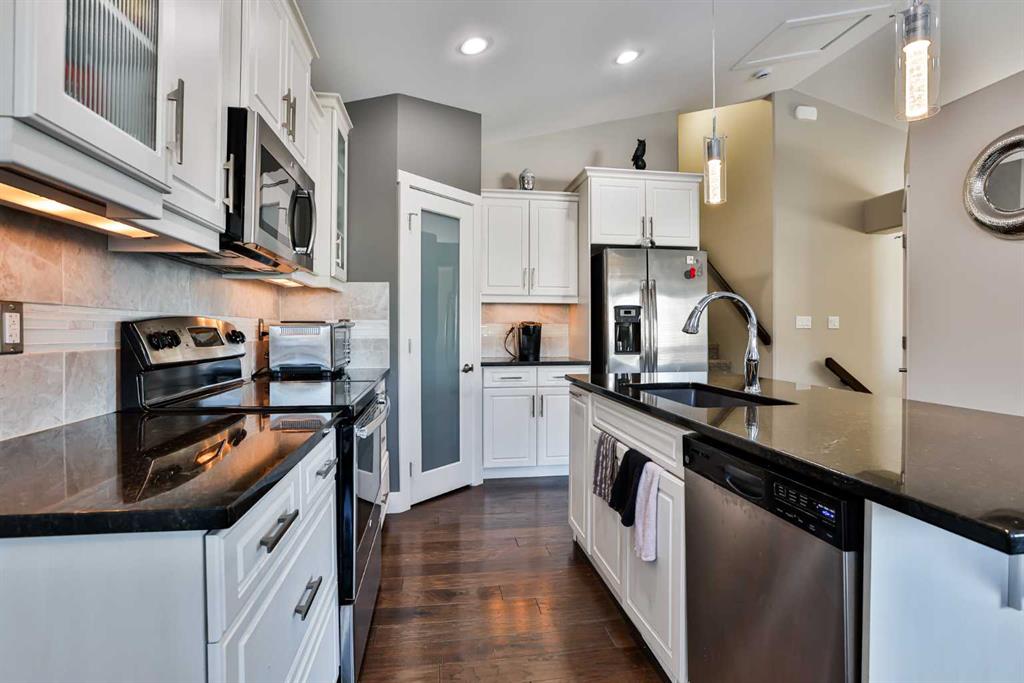 Built by Tara Homes, this quality-crafted modified bi-level offers exceptional versatility and value, featuring two double garages, RV parking, and a separate basement entrance — ideal for multi-purpose living. Located in desirable Sixmile, this thoughtfully designed home showcases quartz countertops, engineered hardwood flooring, 9-foot ceilings, and a gas fireplace, all contributing to a bright and spacious atmosphere. The home includes four bedrooms and three full bathrooms, providing ample space for families or guests. The primary suite is a true retreat, complete with a four-piece ensuite featuring a tiled shower, dual sinks, a walk-in closet, and a tray-lit ceiling that adds warmth and elegance. The main floor also offers a full four-piece guest bathroom and functional laundry area. Step out from the dining nook onto the east-facing rear deck, perfect for enjoying morning sun and outdoor relaxation. The fully developed basement is well suited for an Airbnb opportunity or in-law suite, offering a wet bar, additional bedroom, and a three-piece bathroom, along with a separate entrance providing direct backyard access. At the rear of the property, you’ll find an impressive 18’ x 21’ detached garage/man cave, professionally finished with drywall, insulation, heating, and central vacuum — an ideal space for hobbyists, mechanics, or a private workshop. RV parking is conveniently accessible from the paved rear lane, making it easy to store a trailer or boat at home. Additional highlights include central air conditioning for year-round comfort. All of this is located just minutes from major southside amenities, including Costco, Walmart, Home Depot, Superstore, restaurants, banking, and more. A truly versatile, turn-key property offering multiple ownership possibilities — perfect for vehicle enthusiasts, hobbyists, or anyone seeking flexible living space with exceptional functionality.