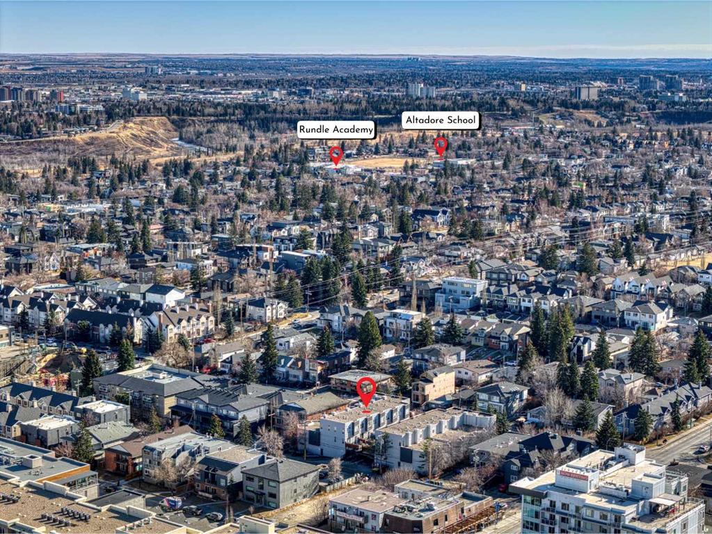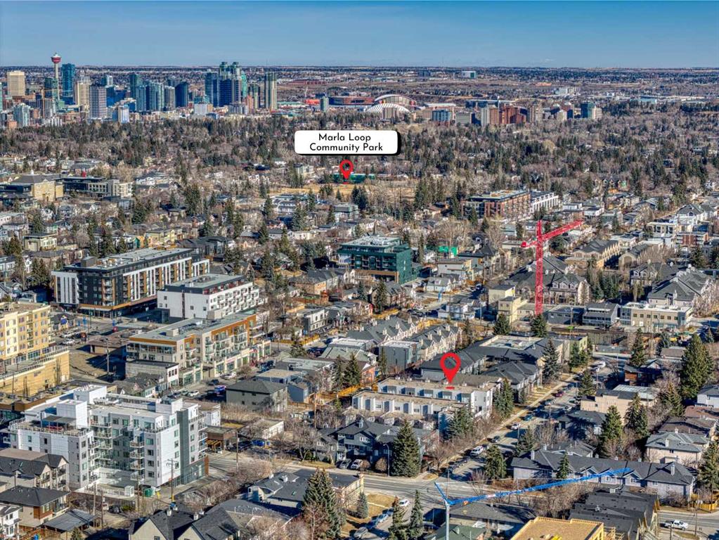 Welcome to inner-city living in the heart of Altadore, just steps from everything that makes Marda Loop one of Calgary’s most vibrant and sought-after communities: shopping, restaurants, Mount Royal, bike paths, and Sandy Beach and River Park. This well-managed 2-storey townhome offers outstanding value and the rare bonus of an OVERSIZED ATTACHED SINGLE GARAGE, giving you the privacy and convenience you won’t find in most inner-city condos. Located in the well-managed Spirit of Marda Loop 2 complex, this home is perfect for anyone looking to enter the market in a desirable community: first-time buyers, young professionals, or anyone looking to enjoy a walkable lifestyle with cafés, shops, restaurants, parks, and everyday amenities right outside their door. The building is pet-friendly (with board approval), making it an ideal option for pet owners who want inner-city convenience without compromise. Inside, the main floor features 9-FOOT CEILINGS and knockdown ceilings throughout, creating a bright, open feel. The living room is warm and inviting with a cozy GAS FIREPLACE, perfect for relaxing evenings at home. The functional kitchen includes a LARGE PANTRY for extra storage and flows nicely into the dedicated dining area, making everyday living and entertaining easy. Step outside to your private patio, ideal for summer evenings, morning coffee, or unwinding after a long day. The private entrance adds to the townhouse-style feel, offering a true sense of home rather than apartment living. Upstairs, you’ll find two generously sized bedrooms with LARGE WINDOWS that bring in beautiful natural light. The primary bedroom features a walk-in closet and a full ensuite, while the second bedroom is ideal for a guest room, home office, or roommate setup. A second full bathroom on the upper level adds everyday convenience. Additional features include a BRAND-NEW WASHER AND DRYER (2025) and a NEW HOT WATER TANK (2025), giving you peace of mind for years to come. The oversized attached single garage comfortably fits your vehicle with extra room for bikes, seasonal items, or additional storage, or even for a second small car. There is plenty of street parking nearby for guests. If you’ve been waiting for the right townhome in Marda Loop with space, parking, and true walkability, this is an opportunity you won’t want to miss. Book your private showing today.