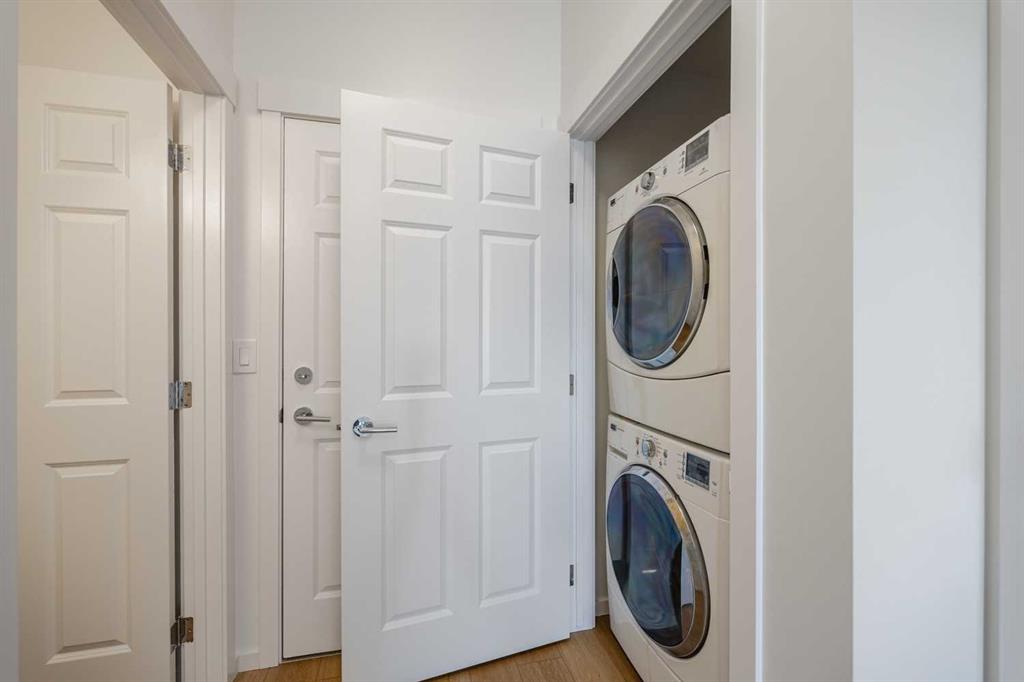 **Open House, Friday Feb 20, 3:30 - 6 p.m. & Saturday Feb 21, 2 - 4 p.m.** Incredible opportunity! This sunny and bright top floor apartment (no neighbours above) has a huge south facing patio with unobstructed views including stunning mountain views to the West. The new owner will enjoy brand new updates including new flooring (LVP in living area + carpet in bedroom), new lighting and paint through the entire unit including ceilings, gorgeous new stainless steel sink and faucet in the kitchen. More features include ensuite laundry, granite counters, double pocket doors to the bedroom, a nook for a desk or more storage and a nice tub and shower combo in the bathroom. Inside the unit you will find two large closets for coats and clothes plus an additional assigned underground storage room. Park in your titled parking stall with plug-ins and enjoy a wonderful lifestyle in this quiet community with close access to ponds, walking paths, parks (just across the street), New Brighton Athletic Park, playgrounds and schools. Incredible amenities are nearby including shopping, restaurants, medical offices, and quick access to the ring road and Deerfoot Trail. Opportunities like this don’t come to market often in Calgary!