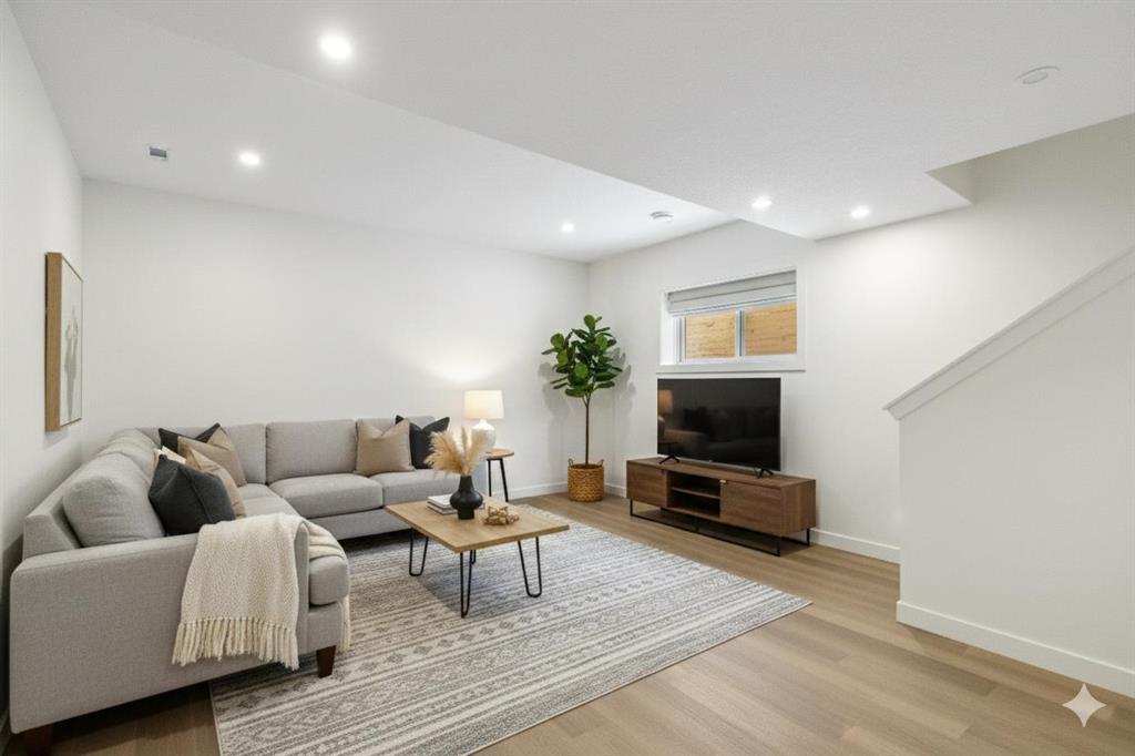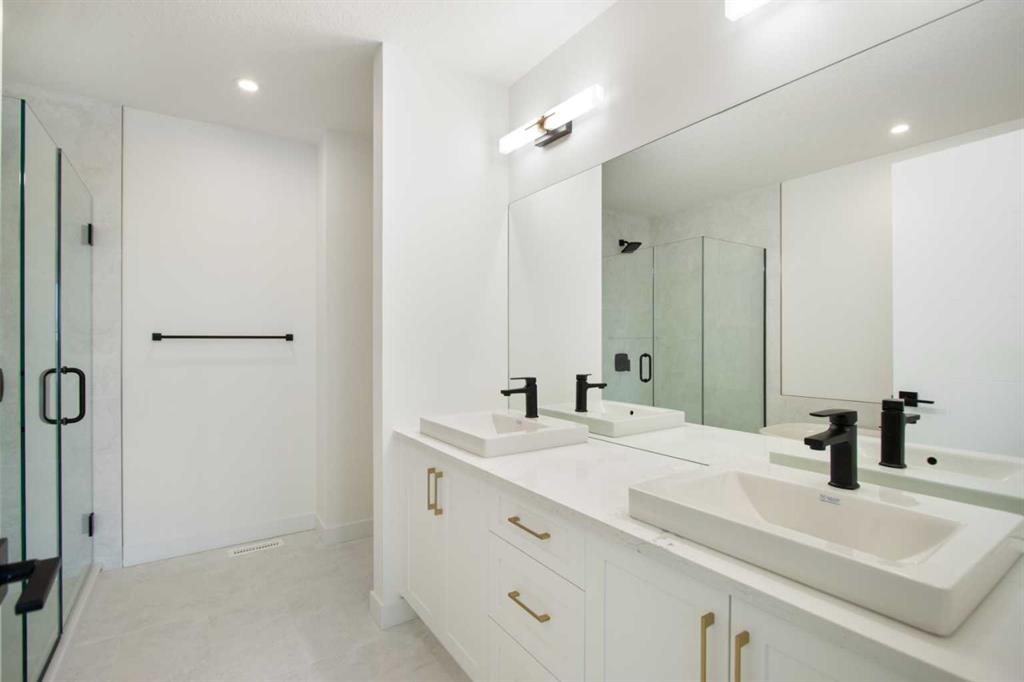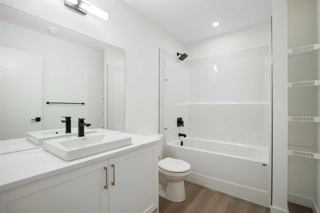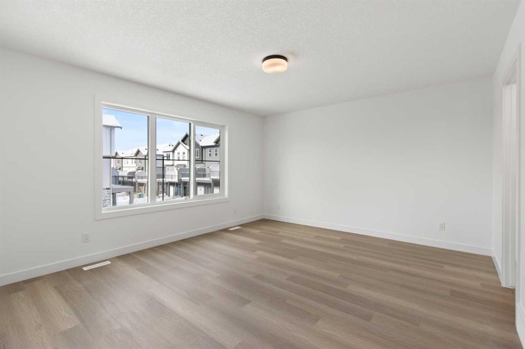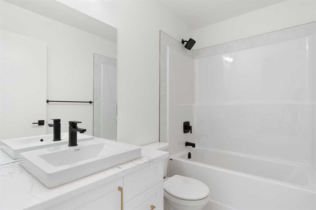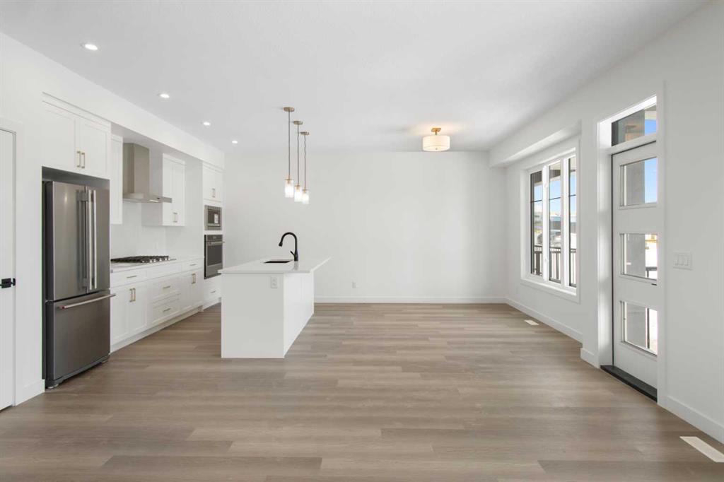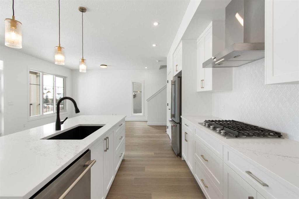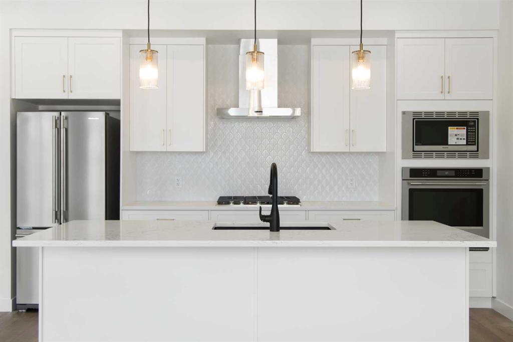 Brand new and situated in the prestigious community of Aspen, this 1,750 sq. ft. fully finished duplex offers 4 bedrooms and 3.5 bathrooms. The open-concept main floor features a chef-inspired kitchen equipped with a gas cooktop, built-in wall oven and microwave, and elegant gold pendant lighting over a large quartz island. Large windows flood the living and dining areas with natural light, highlighting the durable LVP flooring that extends throughout the entire home, including the upper floor and the fully finished basement. Upstairs l is thoughtfully designed with three bedrooms PLUS a dedicated home office/tech room. The primary suite provides a spacious retreat, featuring an ensuite with a luxury stand-alone tub and a full glass shower with dual vanities and full tile! Convenience is built-in with a large upper-floor laundry room finished with quartz countertops. The fully finished lower level adds a versatile fourth bedroom, a full bath, and a secondary media room or lounge! Tons of space for the whole family. Practical additions include an AC rough-in, a double attached insulated garage, and a full new home warranty. This property represents exceptional value, featuring over $20,000 in premium builder upgrades over and above the high standard specification.