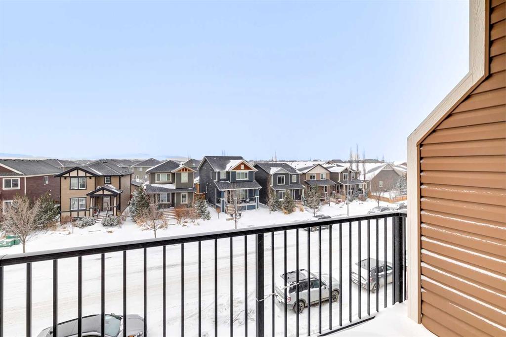 Welcome to this beautifully maintained 2-bedroom, 1.5-bathroom townhome in the vibrant community of Fireside — a place where comfort and convenience come together effortlessly. Step inside through the spacious entryway and into a bright, open-concept main floor featuring 9-foot ceilings and large windows that fill the space with natural light. The inviting living room opens onto your first private balcony — perfect for morning coffee or summer BBQs. The modern kitchen blends style and function with a large island, stainless steel appliances, and seamless flow into the dining area, making everyday living and entertaining easy. Upstairs, you’ll find two well-appointed bedrooms, a full 4-piece bathroom, and a convenient laundry area with a full-sized washer and dryer. The primary bedroom is a standout, complete with a walk-in closet and its own private balcony — a quiet retreat to unwind at the end of the day. Enjoy the added benefits of your own parking stall and a heated storage unit for extra space. In this pet-friendly complex, snow removal and landscaping are taken care of for you, so you can focus on enjoying everything the community has to offer. With schools, parks, shops, restaurants, a community garden, fields and a rink just steps away — plus easy access to both the city and the mountains — this home offers the perfect balance of lifestyle and location. Book your private showing today.