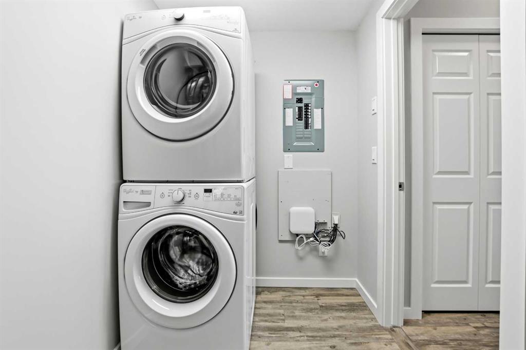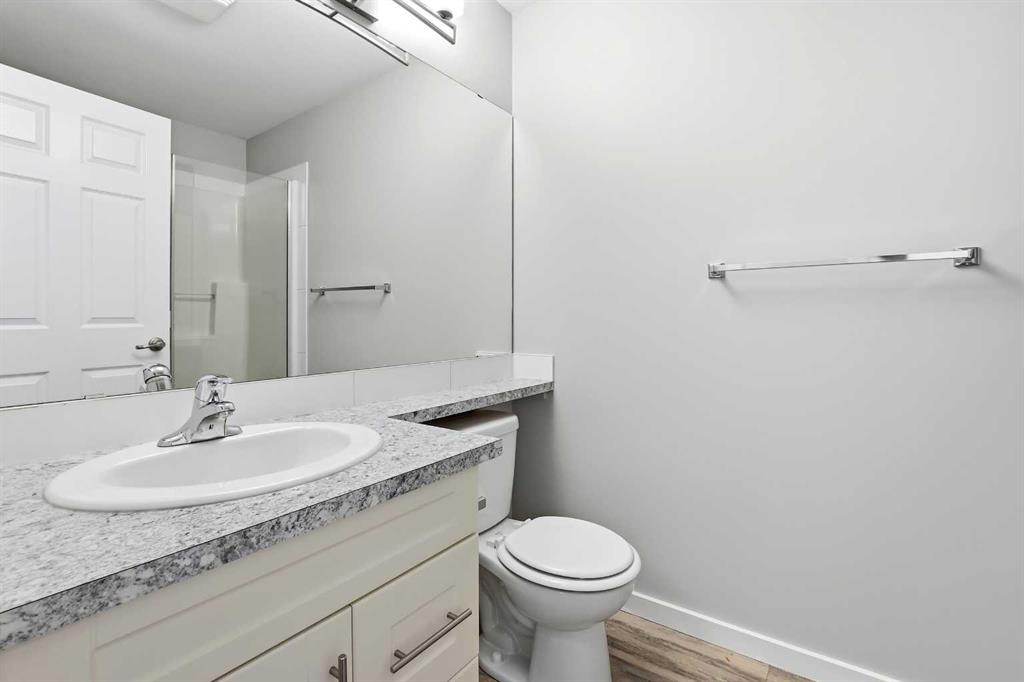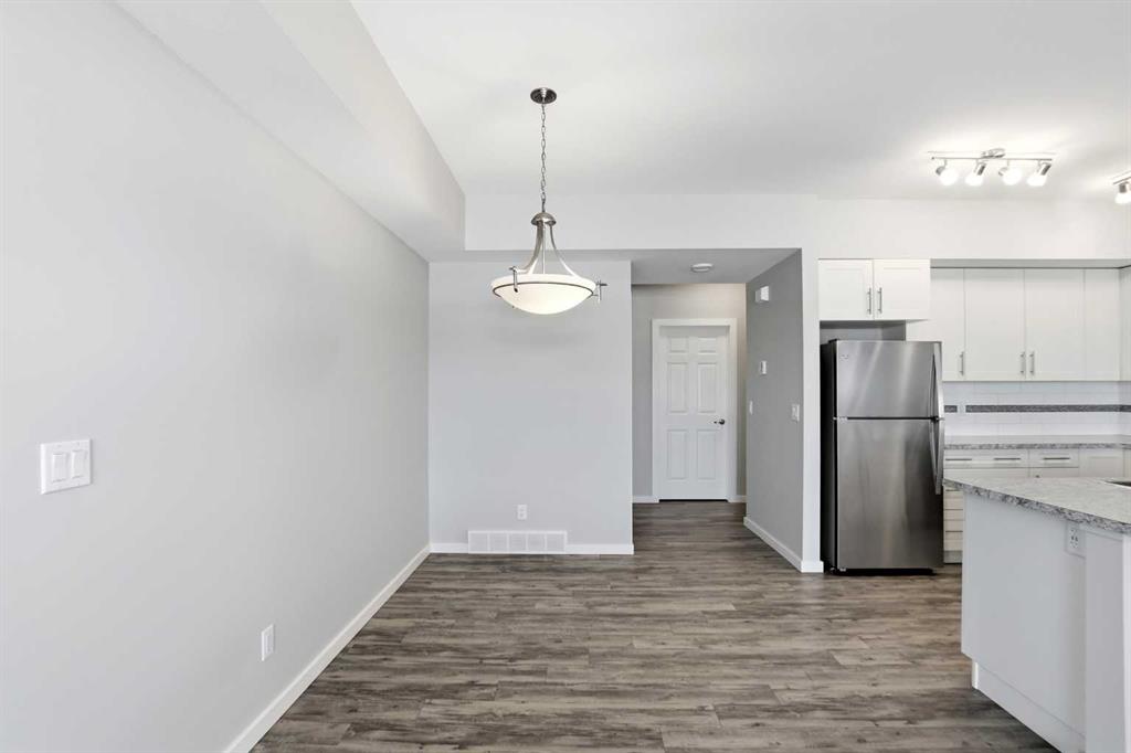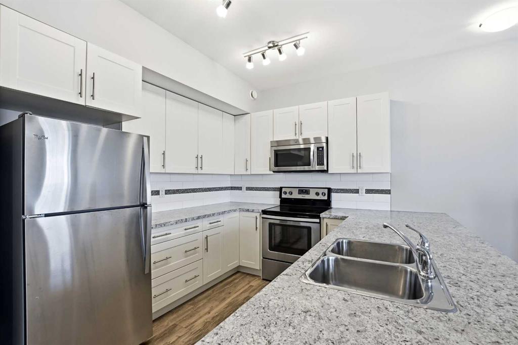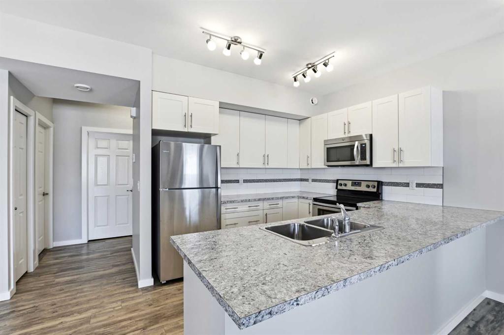 UPPER LEVEL condo in the popular VALLEY CROSSING development. Pull into one of your 2 ASSIGNED POWERED PARKING STALLS right in front of your front door. Once on the main living level - you'll fall in love with the OPEN CONCEPT KITCHEN & LIVING AREA with a large peninsula perfect for entertaining guests or just appreciating the tons of counter space you have for meal preparation or baking. The living area opens out to the COVERED NORTH/EAST FACING DECK. Back inside is 2 good sized BEDROOMS including the primary and ENSUITE WITH UPGRADED SHOWER. There's another full bathroom as well as IN-SUITE LAUNDRY. Come check it out!! It's easy to find because it's right beside the Abbey Center, walking trails and shopping and has quick access to both Hwy 2 and Hwy 2A.