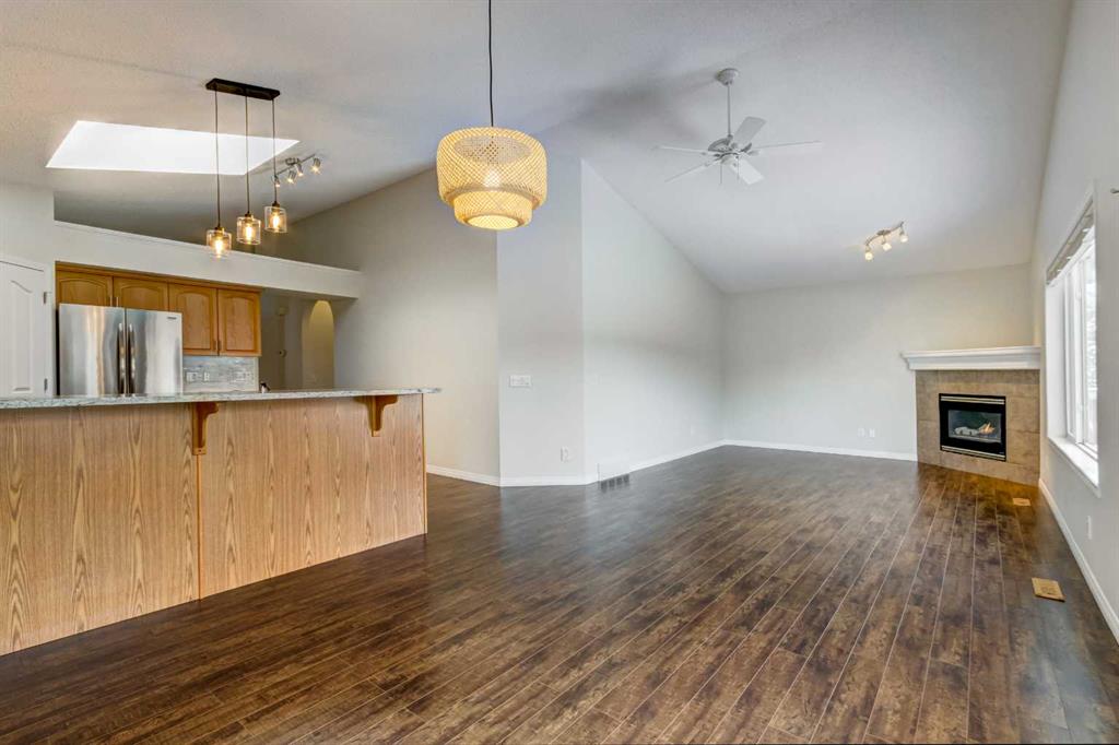 Welcome to this beautifully refreshed bungalow tucked away on a quiet no-through road, offering both privacy and a true sense of community. Perfectly positioned with the lake and Community Centre at the street entrance, this home combines peaceful living with exceptional amenities just steps away. From the moment you step into the inviting foyer, you’ll appreciate the warmth and thoughtful updates throughout. Freshly painted in timeless neutral tones, featuring brand-new carpet and updated lighting, the home feels bright, modern, and move-in ready. The kitchen is designed with both everyday living and entertaining in mind. Abundant counter space, generous cabinetry, and a convenient corner pantry provide excellent storage and functionality. Granite countertops, a gas stove, and a vaulted ceiling with an overhead skylight create a light-filled, welcoming space where family and friends will naturally gather. The open-concept layout flows seamlessly into the dining area and main living room, making hosting effortless. Step outside to your private composite deck, complete with a built-in gas line for your BBQ — perfect for relaxed summer evenings and easy outdoor dining. The spacious primary bedroom serves as a comfortable retreat, easily accommodating a full suite of furnishings. A walk-in closet and private four-piece ensuite add to the comfort and convenience. Main floor laundry, ideally located beside the attached garage entrance, enhances the practicality of single-level living — an ideal feature for mature homeowners seeking long-term comfort. The fully developed lower level expands your living space beautifully, offering two generously sized bedrooms — ideal for visiting family or older children — a full three-piece bathroom, a dedicated hobby or flex room, and an expansive recreation area ready for movie nights, fitness equipment, or a games space. Living in Chaparral means enjoying exclusive access to a private four-season lake, scenic walking paths, and a vibrant community atmosphere. You’ll appreciate the convenient access to major roadways, nearby schools, shopping, and the South Health Campus — everything you need within easy reach. This is more than a home — it’s a lifestyle of comfort, connection, and convenience. Book your private showing today and discover all that Chaparral living has to offer.