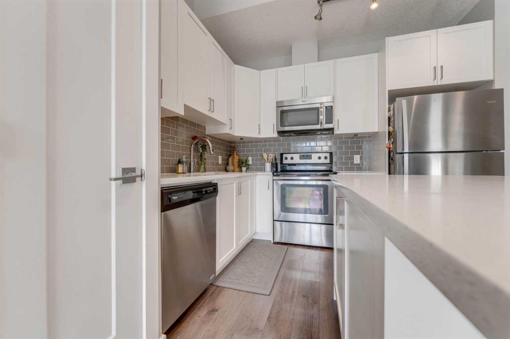 Welcome to this well-maintained, bright and modern 2-bedroom, 1-bathroom townhouse nestled in the vibrant community of Evanston. This beautiful townhouse is perfect for comfortable living and effortless entertaining featuring an open concept main floor layout with a bright living room, a functional kitchen with a centre island and a sunny south-facing exposure that fills the vaulted open floor space with natural light. Decorated in a neutral colour palette, this home also includes rough-ins installed for Air Conditioner and Vacu-Flo vacuum system. The stunning kitchen featuring white modern cabinetry, quartz countertops, stainless steel appliances, and an island for casual seating. Step out onto the south-facing balcony to enjoy fresh air and a relaxing outdoor space. The bedrooms are spacious and bright, with the primary bedroom offers a huge walk-in closet and both with easy access to the stylish bathroom and in-suite laundry. Close to schools, parks, shopping, restaurants, transit, and parks with scenic walking paths right in the family-friendly community of Evanston. This move-in ready home is perfect for first-time homebuyer, downsizer, investor or anyone looking for easy-care living. Don’t miss this fantastic opportunity. Come and see to appreciate!