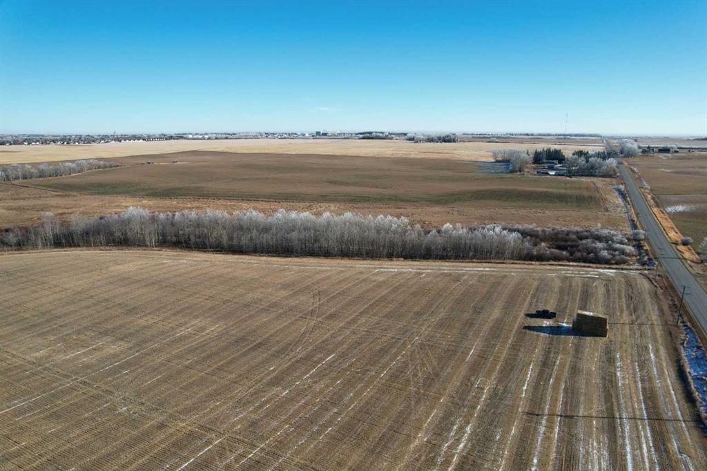 Strategic Urban Fringe Investment | 159 Acres at Olds Town Limits Rare opportunity to secure a premier quarter section (159.0 acres) situated on the immediate southwest boundary of Olds, AB. This highly productive parcel offers the perfect synergy of agricultural income, immediate residential potential, and long-term urban-fringe appreciation. Land & Production: Features approximately 92 acres of high-quality cultivated cropland, with the balance in lush pasture and a mature, treed yard site. Whether you are expanding your agricultural portfolio or seeking a massive private estate, the land is as productive as it is beautiful. Infrastructure & Income: The yard site is accessed via dual approaches directly off pavement and is fully serviced with power, a drilled water well (8 g.p.m.), a steel quonset with power & concrete floor, a traditional red barn with steel roof, and two steel grain bins. Benefit from immediate cash flow with rental income (Ag land & old house tenants in place until Oct 31, 2026), providing a steady ROI while you finalize your development or building plans. Future Potential: Situated in the path of growth, this property offers significant subdivision potential (subject to county approval), including the original yard site or a possibly a naturally severed parcel in the SW corner. List price is strategically based on land value, services, and outbuildings—the existing home is rented but requires substantial maintenance/repairs and upgrading throughout. Invest for the future; build for the generations. Opportunities of this scale on the doorstep of town limits are a rare find.