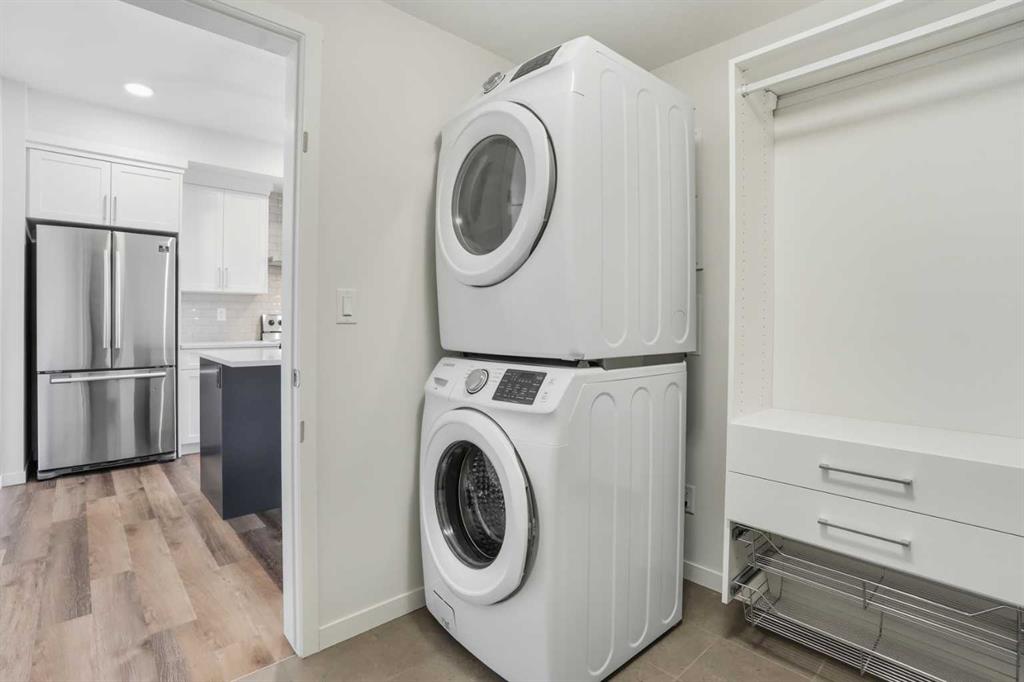 Available for immediate possession! Don't miss your opportunity to own this BRIGHT, TOP FLOOR CONDO featuring stylish vinyl flooring, upgraded finishes, AC, and custom California Closets! The beautifully upgraded kitchen features quartz countertops, stainless steel appliances, large undermount farmhouse sink, full pantry, and an island with a UNIQUE 2-SIDED BREAKFAST BAR that offers table-style dining rare for this type of condo! The primary bedroom is complete with a customized walk-in closet! A full bath serves the primary bedroom and guests. You’ll love the extra storage space and custom shelving in the spacious laundry room! This unit comes with 2 titled parking spaces (one underground, one above ground stall) and a convenient assigned storage locker. Just steps to many community parks, ponds, tennis courts, and playgrounds, and a short drive to The Golf Centre at Harvest Hills. This great location will have you driving just 10 minutes to the Calgary Airport, 20 minutes to downtown, and 5 minutes to the Stoney Trail ring road.