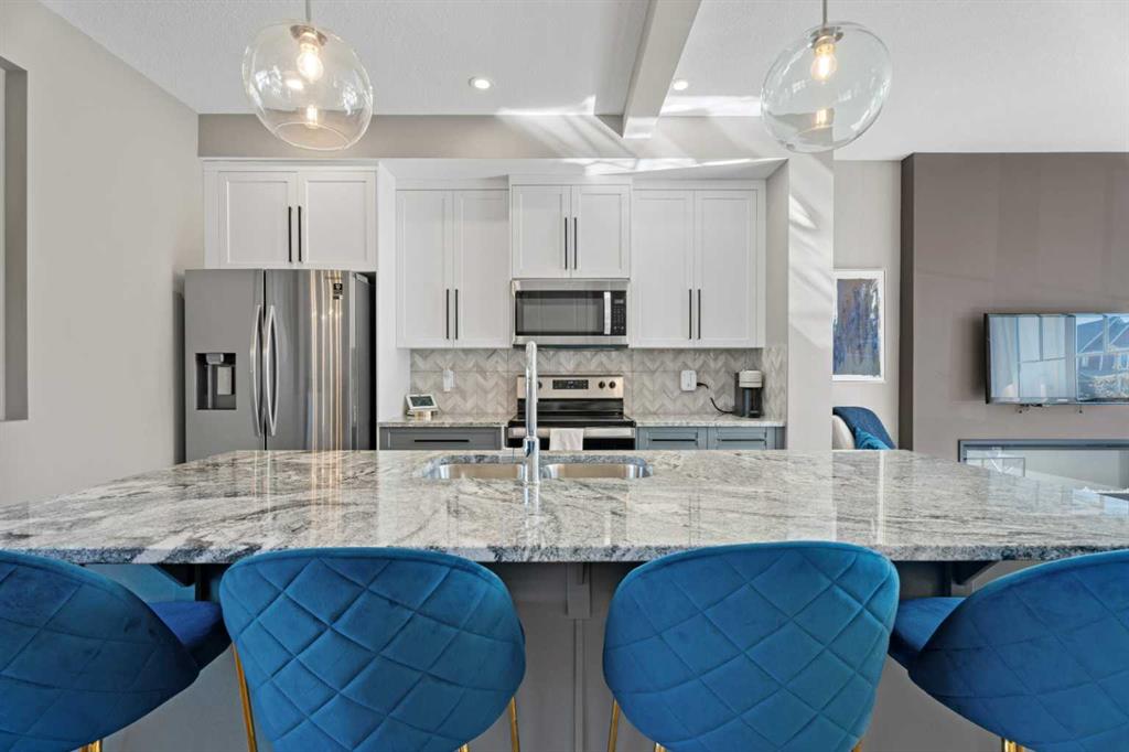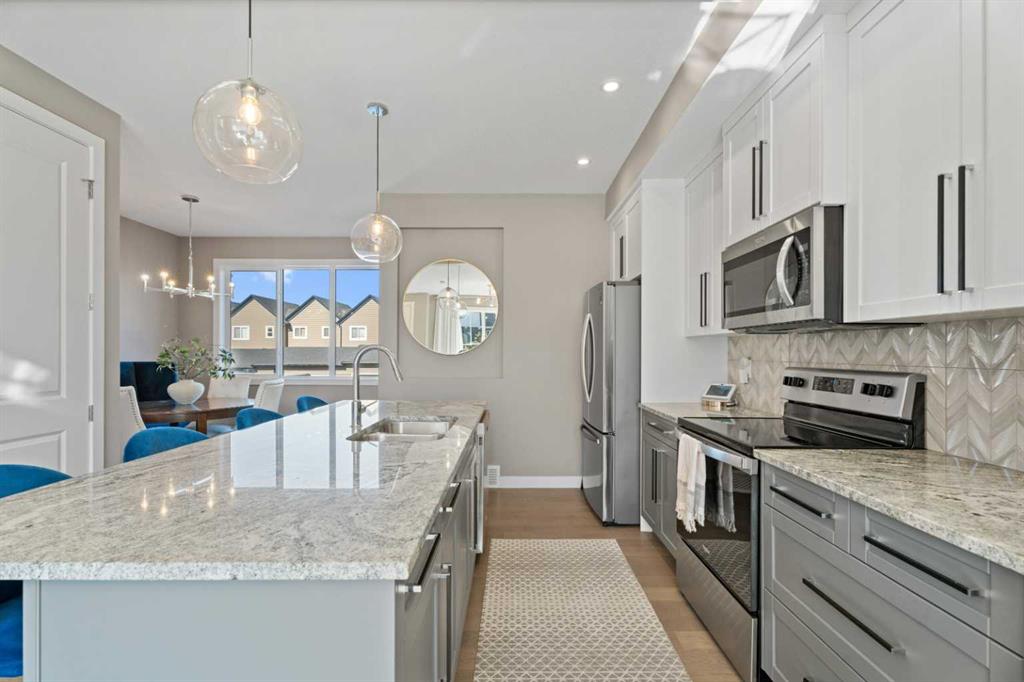 Welcome to this immaculate upgraded home in Lanark, one of Airdrie’s most family-friendly communities! This elegant, timeless home is perfectly situated directly across from a beautiful park, allowing you to watch your kids play right from your front porch. Just one block away, enjoy all the amenities of Lanark’s main community hub, including a pump track, soccer fields, outdoor hockey rink, and a community garden, an ideal setting for an active family lifestyle. Surrounded by kilometers of connected walking and bike paths through Lanark, Kings Heights, and Ravenswood, this home offers a gateway to outdoor adventure. Families will also appreciate the proximity to multiple schools, including French immersion and Catholic options, as well as being just minutes to Kingsview Market and Genesis Place for all your shopping and recreation needs. Inside, you're welcomed by grand 8-foot doors and an open-concept main floor that blends comfort and class. The upgraded flooring, kitchen cabinetry, and counters elevate the space, while the cozy, south-facing living room and fireplace fill the home with warmth and natural light. Upstairs, the spacious primary suite features a walk-in closet and upgraded 3-piece ensuite. Two additional bedrooms and a second full bathroom — also thoughtfully upgraded — complete the upper level. Step outside into your private landscaped backyard oasis, complete with paving stones and raised retaining walls, offering a flat and functional yard perfect for relaxing or entertaining. The key upgrades include and in-ground sprinkler system, complete landscaping, upgraded flooring and granite counters, water fixtures, window coverings, and more. This wonderful home's location adds lifestyle, and the perfect place to plant roots in one of Airdrie’s most sought-after family neighborhoods.