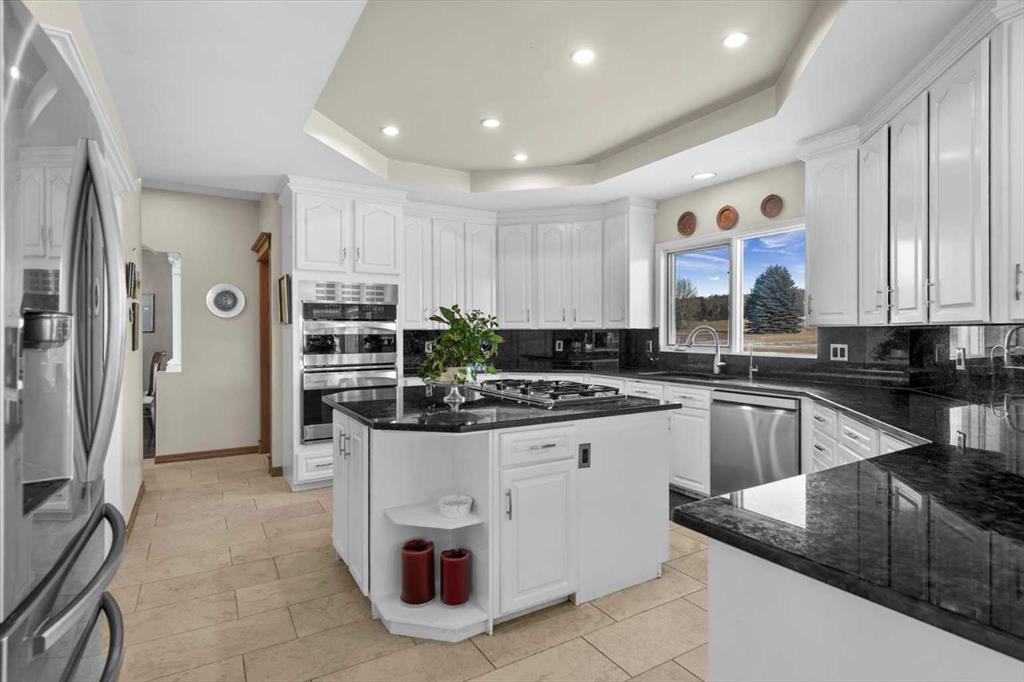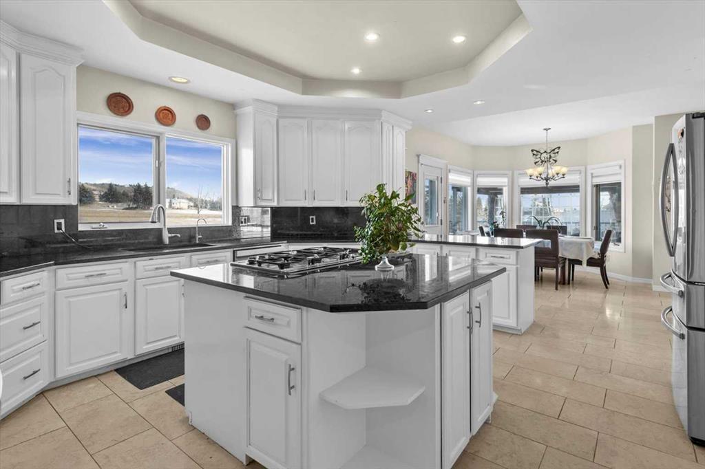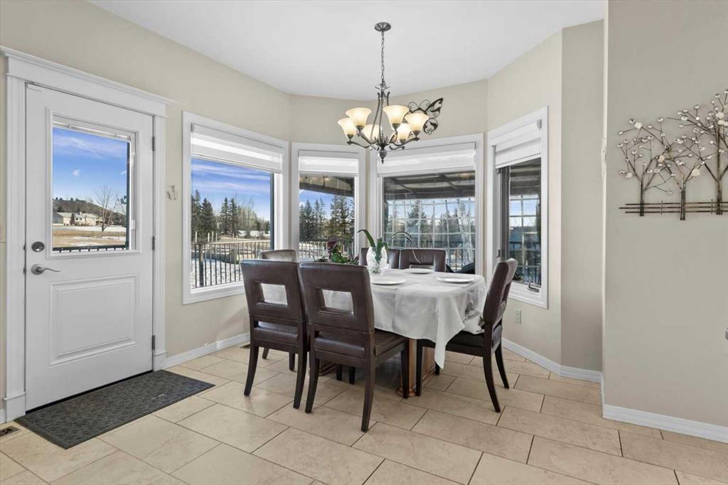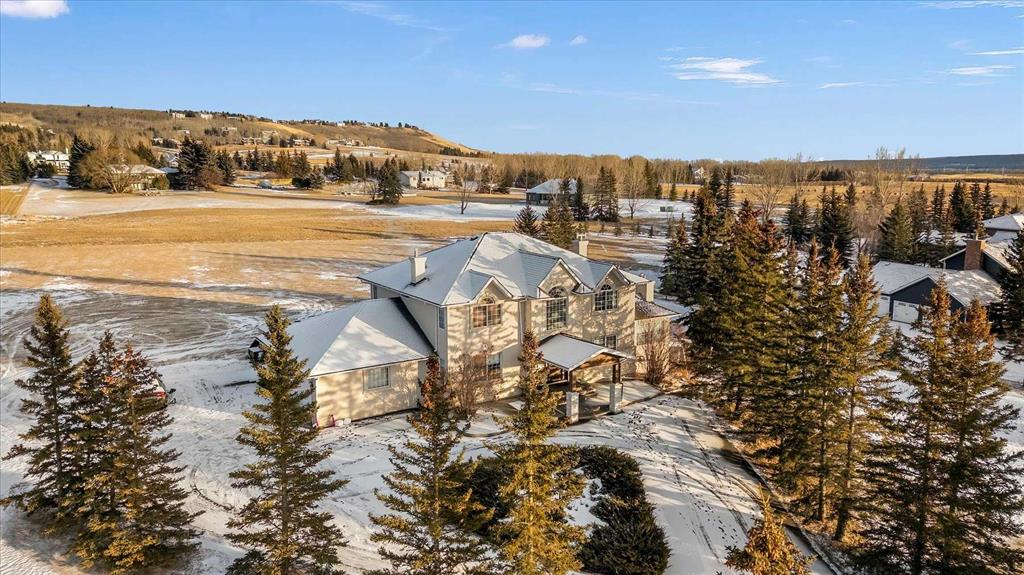 Welcome to Rosewood Estates, an exceptional Springbank community located just minutes west of Calgary. This original-owner 2-storey home with a walkout basement sits on a beautifully landscaped 2-acre lot and offers over 5,000 sq. ft. of thoughtfully designed living space, all positioned to capture sweeping, unobstructed views. Bright, open, and meticulously maintained, the home is ideal for family living with 5 bedrooms and 5 bathrooms a private home office. The main floor features a spacious kitchen and adjoining family room, along with an additional living and formal dining area complete with a dining nook and access to the expansive deck, perfect for enjoying the property’s stunning vistas. Upstairs, you’ll find a generous bonus room and the primary bedroom, which includes a 5-piece ensuite and a triple-sided fireplace. In addition to the primary suite, the upper level offers a total of four bedrooms, including the primary plus three additional bedrooms, one of which features its own private 2-piece bathroom. A separate 4-piece bathroom completes the upper level, providing excellent convenience and flexibility for family or guests. The walkout level is designed for entertaining, featuring a kitchen area, a living room with a fireplace, a sunroom, an additional bedroom with a 3-piece bathroom, and a playroom. Completing this exceptional property is a spacious triple garage, offering ample room for vehicles, storage, or hobby space. This home provides the tranquility of country living with the convenience of being just minutes from shopping and top-rated public and private schools.