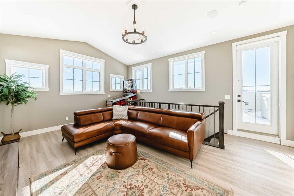 Situated in the award-winning lake community of Harmony in Rural Rocky View County, 108 Cattail Run is a masterclass in modern luxury and functional design, offering over 4,000 square feet of meticulously crafted living space. From the moment you arrive, the oversized garage (which may fit 4 cars) signals that this home was built for a lifestyle of both scale and convenience—providing ample room for your vehicles, a workshop, or all the "lake life" toys you’ll inevitably acquire. To add to this space is the massive amount of space for RV's boats, or trailers out behind the home! The interior is anchored by stunning hardwood floors that flow through an open-concept main level, leading you toward a kitchen that would make a professional chef blush. Featuring high-end appliances, soft-close cabinetry, a convection oven, and a dedicated warming oven, this culinary hub is anchored by massive double-wide refrigerators and a highly functional butler’s pantry to keep your prep work tucked away while hosting. Whether you're retreating to the rooftop patio to soak in the Alberta sunsets or gathering in the upper-level bonus room, the home offers a variety of spaces to unwind. The four spacious bedrooms and 3.5 bathrooms ensure everyone has their own sanctuary, with the added luxury of heated floors in the bathrooms to make those crisp Rocky View mornings much more inviting. The fully finished basement rec room offers the ultimate venue for movie nights or gym space. A large custom sauna will be sure to sooth the body during a crisp winter night. The top floor deck has also been engineered and is pre-wired to be able to accomodate a hot tub ! The southwest-facing backyard ensures your outdoor living area is drenched in sunlight from afternoon to evening. It is a rare combination of high-spec finishes and thoughtful layout, all set within a community that prizes wellness, nature, and world-class amenities like the Mickelson National Golf Club and the future village centre.