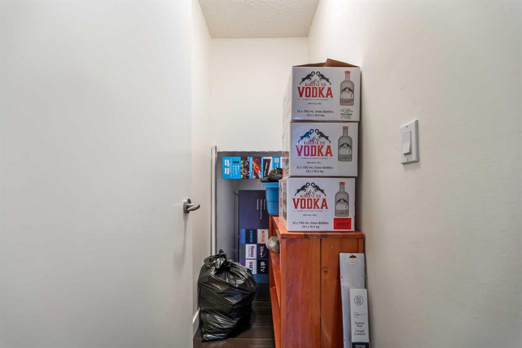 Features include. Black appliances, granite counter tops, shaker style espresso maple cabinets, engineered hardwood flooring with carpeting the bedroom, in-suite laundry ,in-suite storage,. Balcony off living room with west exposure. Call your Realtor to show.