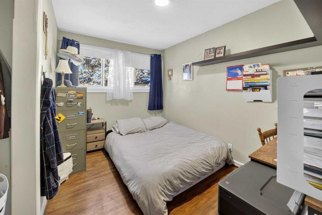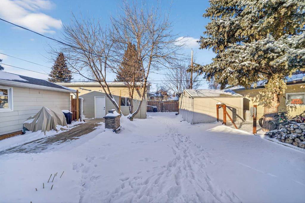 With all the charm of the mid-century era and the quality upgrades today’s buyers expect, this fully developed home on a beautifully landscaped oversized lot truly offers the best of both worlds. Situated on a quiet street close to schools and playgrounds, and just a short walk to downtown, the location is hard to beat. The property is designed to please everyone in the family — featuring a heated 31’X 21’ garage with workshop space, a second 14’ X 28’ storage/garage perfect for storing all the “toys,” plus a concrete side driveway long enough to accommodate your RV and additional vehicles.Inside, the main level showcases refinished hardwood flooring, an electric fireplace in the living room, and a newer kitchen complete with quartz and Douglas Fir countertops and fantastic pull-out shelving for maximum functionality. You’ll also find an upgraded 4-piece bathroom with a relaxing soaker tub, along with three bedrooms — the primary offering multiple closets for excellent storage.The fully developed basement adds incredible living space, including a very large bedroom, a spacious family room with a freestanding gas fireplace, a spot ideal for hosting gatherings, a 3-piece bathroom, and a charming laundry room with abundant cupboard and counter space that truly makes chores more enjoyable. Additional upgrades provide peace of mind and convenience, including updated wiring, a 70-amp panel servicing both garages, and 220V power in each. The home is also equipped with a Dry Basement system with battery backup and lifetime warranty — and the current owners report no water issues since purchasing in 2017. Step outside to the beautifully landscaped and private backyard, where a firepit area creates the perfect setting for summer cookouts with family and friends. This is a home where character, comfort, and functionality come together seamlessly — ready for you to move in and enjoy.