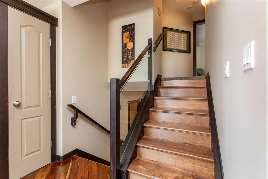 Welcome to this stunning 4-level split in Penhold, a beautifully upgraded family home that blends modern finishes with flexible living spaces. Custom ceramic tile graces both front and back entrances and flows into gorgeous engineered hardwood punctuated by rich wood trim and baseboards. The clean, functional kitchen features maple cabinetry, stainless-steel appliances, a tile backsplash and two pantries! The open living and dining areas offer versatile layout options, and the back entrance off the dining area opens to a spacious deck with pergola and a gas line for the BBQ - perfect for outdoor entertaining. A sleek glass railing adds contemporary flair as you move upstairs. The second level includes two bedrooms, highlighted by a generous primary suite with a dream walk-in closet, and a main bath with vessel sink and a relaxing soaker tub. The lower level is ideal for relaxation and entertaining, with a multi-functional family room and a striking three-piece bath with walk-in shower. The fully finished fourth level offers two more roomy bedrooms - great for older kids, guests or roommates. Outside, the home sits on an easy-access lot and includes a large double detached garage with 220V wiring and extra gravel parking suitable for an RV. Professional finishes, a thoughtful layout and numerous updates make this beautiful property a rare find.