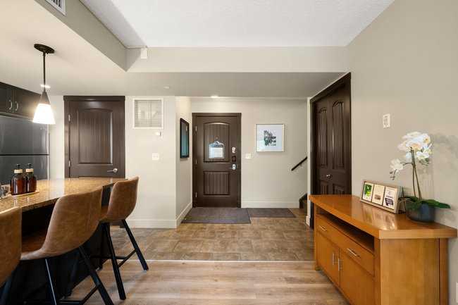 This bright and spacious two-level condo at Copperstone Resort offers the perfect mountain escape with excellent short-term rental potential. Enjoy south-facing views, stylish finishes, and turnkey convenience—use it for your own getaway and offset costs when you're not here. The open-concept main level features an upgraded kitchen with granite countertops, a large island, and stainless steel appliances, flowing into the dining area and generous living room with a cozy stone fireplace, a handy desk nook—ideal for remote work, and a Cabinet Bed to accommodate additional guests. Step out onto the sunny south-facing deck and take in spectacular mountain views. Upstairs, the Large Primary Bedroom offers ample closet space and a 4-piece ensuite with a sizeable vanity. A second bedroom, spacious main 4-piece bathroom, complete the upper level. Additional features include in-suite laundry, underground parking, and a secure storage cage, all in a pet-friendly complex. Zoning allows short-term rentals, with the flexibility to self-manage or use the on-site management company. Offered fully furnished with housewares, electronics, and linens for a true turnkey experience. Copperstone Resort amenities include an outdoor hot tub, BBQ area, firepit, fitness facility, and secure parkade. Located in the quiet hamlet of Dead Man’s Flats along the Bow River—just minutes to Canmore, Kananaskis, world-class skiing, restaurants, and shopping. Price includes GST