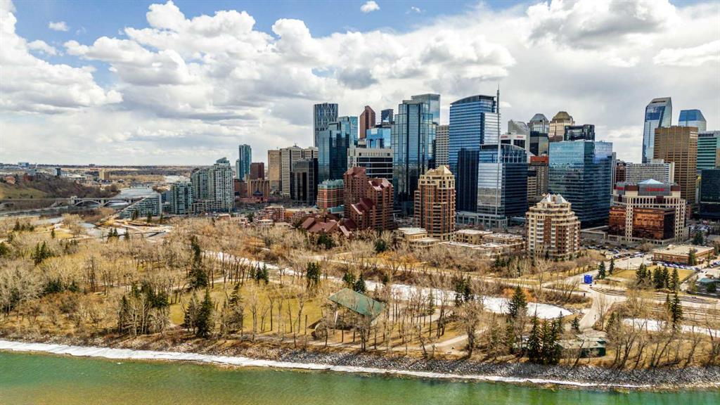 Located along the Bow River in the heart of Eau Claire, this 10th-floor residence at Eau Claire Estates represents one of Calgary’s most prestigious riverfront addresses and offers a combination of size, layout, and features that are increasingly difficult to replicate. Spanning nearly 1,600 sq. ft. of interior living space, this 2-bedroom, 2-bathroom home is defined by its scale and flexibility. The layout is exceptional, featuring expansive principal rooms, excellent separation between living and sleeping areas, and two private balconies—one with a north-facing exposure overlooking the Bow River, and the other south-facing toward the city skyline. A standout and increasingly rare feature is the inclusion of two titled underground parking stalls, a meaningful differentiator within the building and a major value driver for both full-time and part-time residents. The home is well maintained and fully functional in its current condition, offering buyers multiple paths forward: enjoy it as-is, refresh cosmetically over time, or reimagine the space to suit a more modern aesthetic. For those considering a more comprehensive update, professional architectural drawings and interior finish specifications are available, providing a clear vision for future potential. Eau Claire Estates is a solid concrete complex known for its privacy, security, and full-service lifestyle. Amenities include 24-hour concierge and security, a health club with fitness centre, indoor pool and hot tub (currently undergoing a complete renovation and expected to reopen later this summer), car wash, bike storage, resident lounge, and beautifully maintained common areas. Condo fees include all utilities, including electricity, heat, water, and central air conditioning. Steps from Prince’s Island Park, the Bow River pathway system, downtown core, and Eau Claire’s shops and restaurants, this is an opportunity to secure space, parking, and location in one of Calgary’s most established riverfront communities.