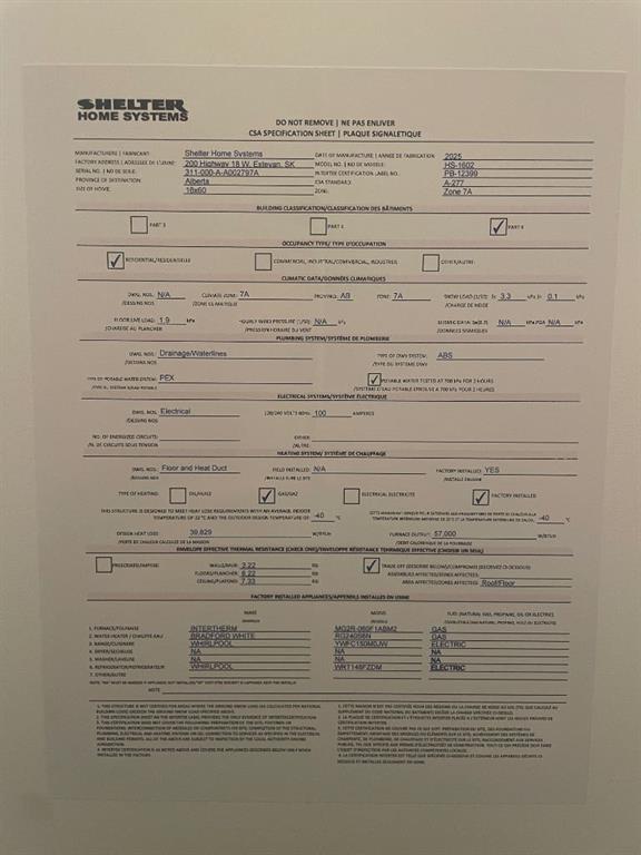 MODERN, EFFICIENT & AFFORDABLE! Brand new, quality built "Shelter" manufactured home will give you peace of mind, easy maintenance & budget conscious payments of $950 monthly OAC. Low maintenance home exterior has vinyl siding, upgraded skirting & vinyl windows. Bright open plan has kitchen, dining & living room centered between the bedrooms at either end of the home. Functional & beautiful kitchen has plenty of cabinets & appliances under warranty. You'll love the kitchen window with the south view. King sized primary bdrm has extra large walk-in closet. Laundry is quietly tucked away around the corner, out of sight of the main living area. Roomy 4 pc bath has easy care tub / shower combo & good storage. Partially fenced, the landscaping is a blank slate, waiting for your plans. Lot rent of $510 monthly. Bassano has excellent amenities with a friendly, small town feeling. Hospital, k-12 school, shopping, golf course, arena & more! You won't find a new home like this at a better price! Take the virtual tour & expect to be impressed. Park manager approval applies. Taxes are not yet assessed. QUICK POSSESSION POSSIBLE.