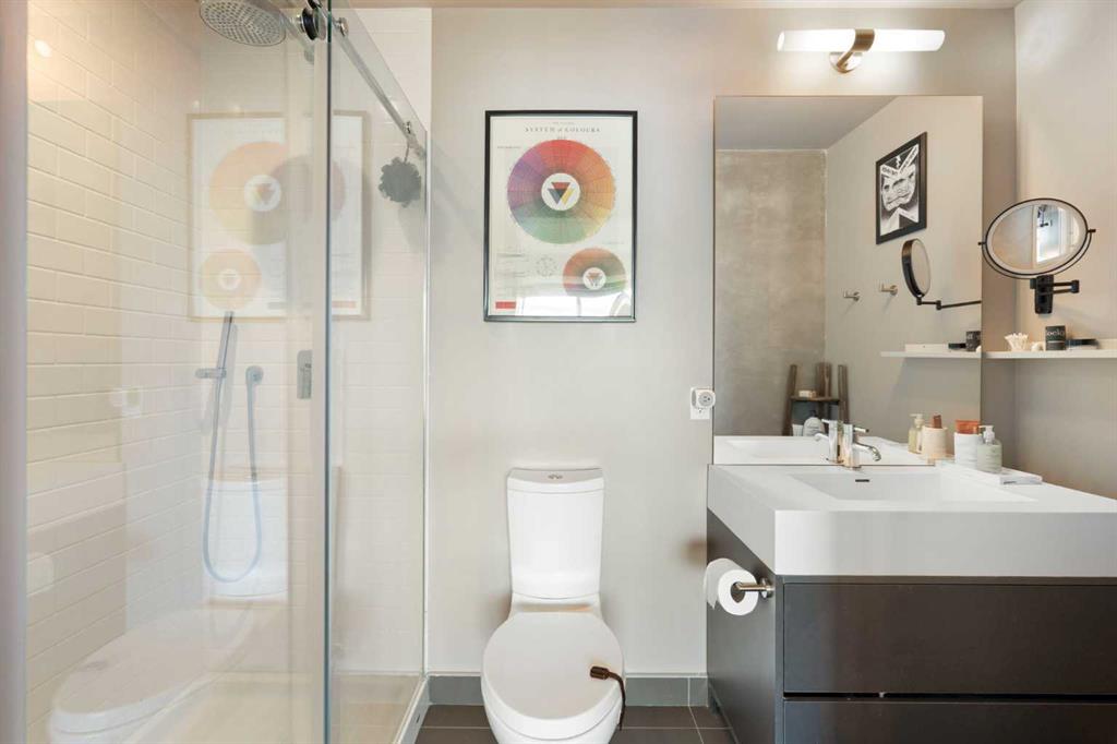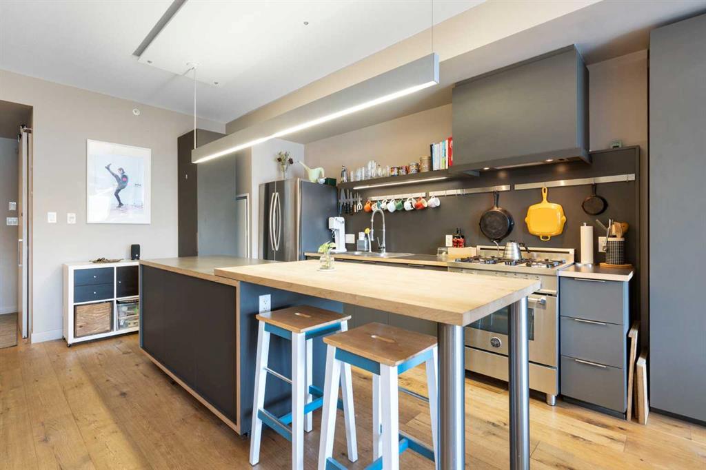 Welcome to one of the most sought-after pockets of Calgary in the heart of Inglewood, where character meets convenience and everything you love is steps from your door. This bright and beautifully maintained 2-bedroom, 2-bathroom top-floor apartment delivers what buyers crave: privacy, quiet, and unbeatable access to the outdoors and downtown. Top floor means no footsteps above you. The building is exceptionally clean, well run, and home to genuinely friendly neighbours who take pride in where they live. There’s access to the gym plus extensive amenities in the building and secure bike storage in the parkade, built for an active, inner-city lifestyle. Inside, hardwood floors add warmth and durability, while the open-concept layout creates space to live and entertain. The kitchen anchors the home with a large island and breakfast bar, perfect for morning coffee or hosting friends before heading out to 9th Ave. In-suite laundry adds everyday convenience, and the smart floorplan separates the two bedrooms for maximum privacy. The primary suite features its own full ensuite, while the second bedroom and bathroom are ideal for guests, roommates, or a home office. Step out onto your private balcony, complete with a gas line for your BBQ for summer evenings done right. You’ll also enjoy a titled parking stall and an oversized titled storage locker (6'6" wide x 7' tall x 3'6" deep), giving you the flexibility and space condo buyers often miss. And the location? It’s unbeatable. Trails run directly behind the building, connecting you north to downtown or south along the Bow. You’re minutes from the Bow River itself, Pearce Estate Park, the historic Sam Livingston Fish Hatchery, and the peaceful Inglewood Bird Sanctuary, nature at your doorstep. When it’s time for coffee, dinner, or a night out, 9th Avenue delivers with independent cafés, restaurants, bars, and boutique shops that make Inglewood one of Calgary’s most vibrant communities. Quick access to major roadways makes getting around the city, or out of town, effortless. Downtown is just minutes away. If you want an inner-city apartment that combines quiet top-floor living, strong building management, unbeatable access to nature, and the character of historic Inglewood, this is it. Book your private showing today!