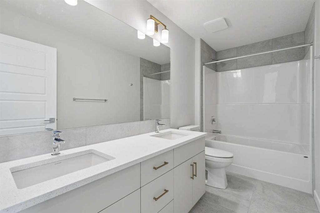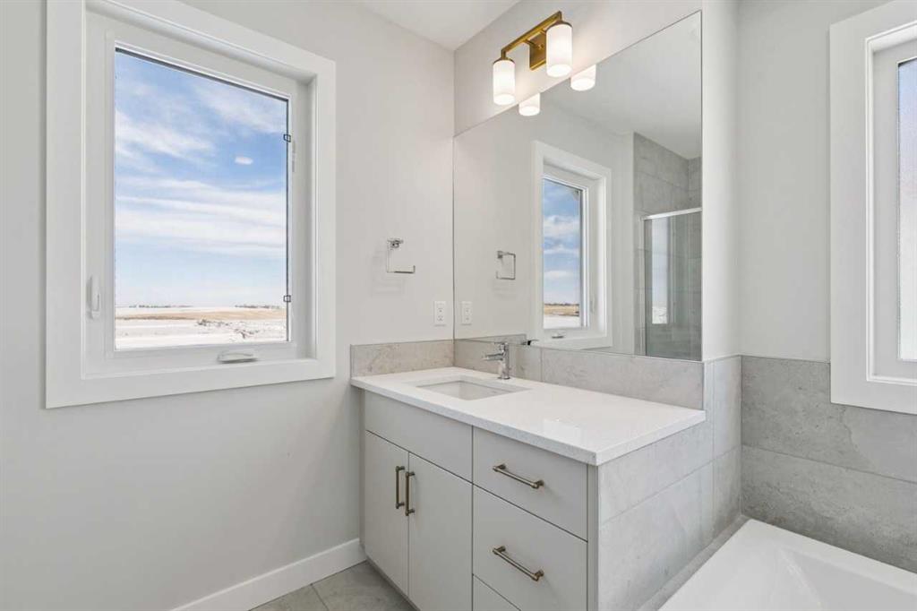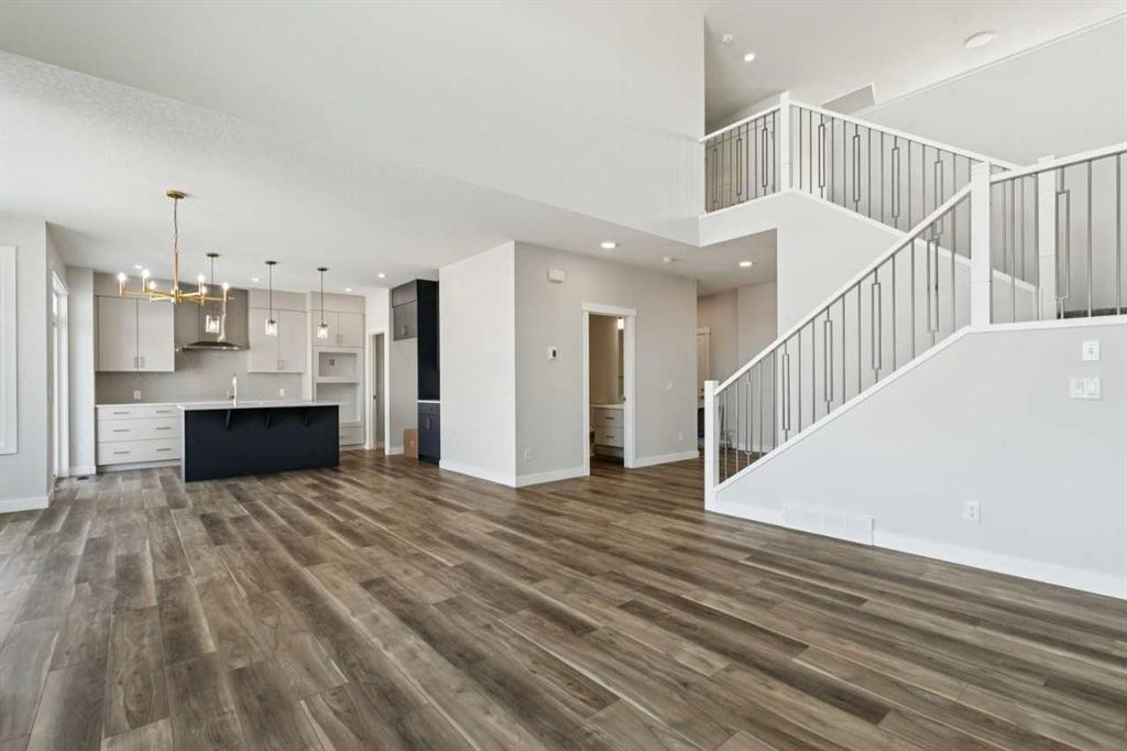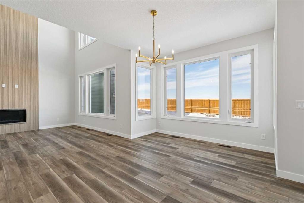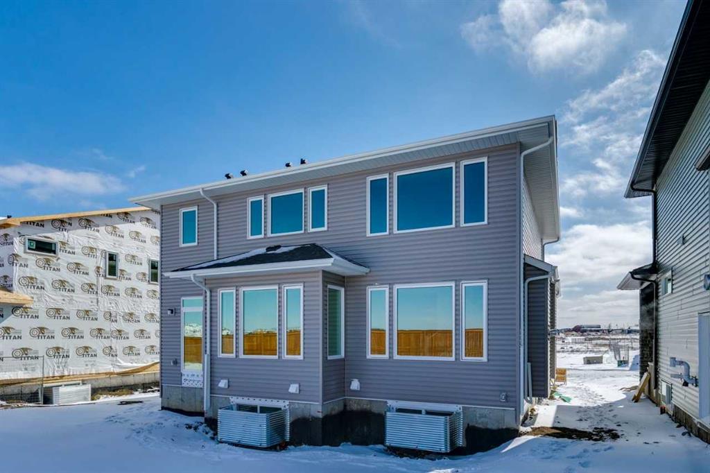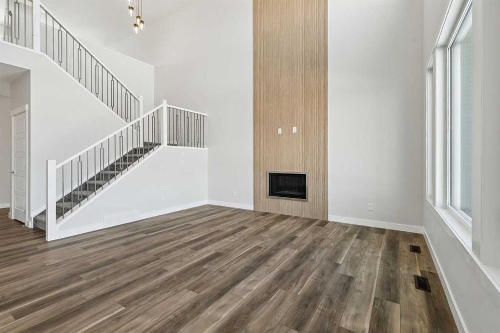 Located at 420 Bridgeport Glen in the Bridgeport community, this Crestview model by NuVista Homes offers 2,323 sq ft of thoughtfully designed living space. Featuring 4 bedrooms and 3 bathrooms, this home showcases a Craftsman elevation and 9’ foundation and main floor ceiling heights. The open-concept main level includes luxury vinyl plank flooring and a natural gas fireplace with full tile surround to the ceiling. The kitchen is well appointed with quartz countertops, taller upper cabinets, and an upgraded Samsung gourmet appliance package. A side entrance provides excellent potential for future basement development. Upstairs, the primary bedroom includes a five-piece ensuite and a large walk-in closet with convenient laundry access. A triple car garage adds exceptional storage and everyday functionality. Designed for comfort and flexibility, this home delivers space and quality in a growing Bridgeport community.