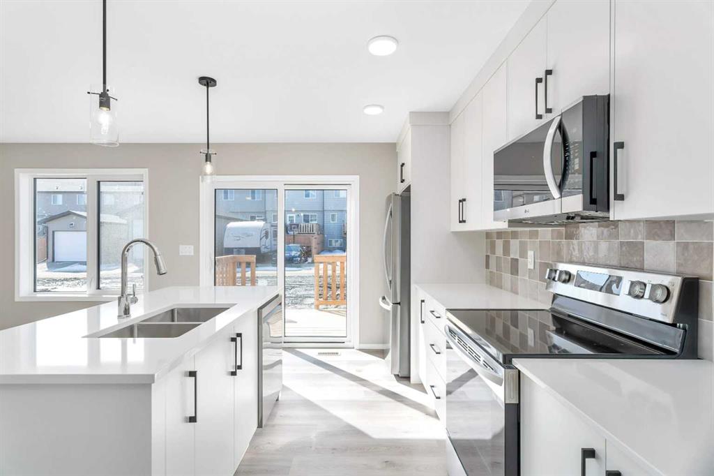 Introducing 42 Anna Close in Aspen Lakes West! This brand new, never lived in 3 bedroom, 2.5 bathroom townhome showcases modern style and functional design. The open concept layout creates a bright and welcoming atmosphere, perfect for both everyday living and entertaining. Spacious bedrooms, contemporary finishes, and thoughtful design make this home stand out. Located in the growing community of Blackfalds, this is an incredible opportunity to own a move in ready new build without the wait. Photos are representative.
