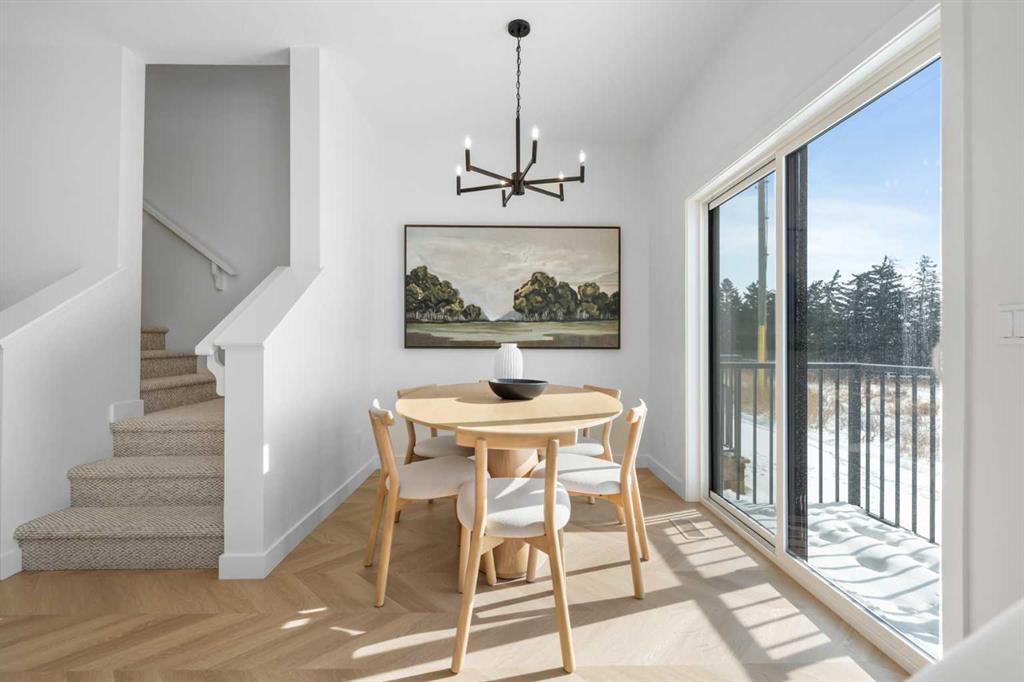 NEW BUILD TOWNHOME | NO CONDO FEES | 3 BED / 2.5 BATH / 1,516 SQ FT | SINGLE ATTACHED GARAGE + DRIVEWAY | POSSESSION Q4 2026 – Welcome to the Sable model by Minto Communities, an award-winning Canadian builder with over 70 years of experience, located in East Hills Crossing, one of southeast Calgary’s fastest-growing and most convenient communities. These thoughtfully designed townhomes feature modern finishes, functional layouts, and long-term value in a location that truly stands out. This unit offers a smart and efficient floor plan designed for everyday comfort. The main floor features a spacious kitchen complete with a kitchen island, stainless steel appliances, and ample cabinetry and storage. The dining area is conveniently located beside the kitchen, flowing seamlessly into the large living space at the back of the home. From here, step outside to your backyard that backs onto green space that is ideal for relaxing or entertaining. Back inside, the front of the home features a spacious foyer, a conveniently tucked-away 2-piece bathroom, and access to your single attached garage. Upstairs, the large primary bedroom includes a walk-in closet and a bright ensuite bathroom. Two additional well-sized bedrooms, a full 4-piece bathroom, and a generous upper-level laundry room complete the second floor. The basement is undeveloped but offers excellent potential for future development, including space for a large recreation room and an additional 3-piece bathroom. Ideally situated directly across from East Hills Crossing Shopping Centre and Costco, this location delivers unmatched convenience with shopping, dining, and everyday services just steps away. Public transit is nearby, offering a quick and easy commute to downtown Calgary. East Hills is a vibrant, well-connected southeast community known for its thoughtful planning, green spaces, pathways, and easy access to major roadways and 17 Avenue SE. Combining modern design, a functional layout, and an unbeatable location, this is an excellent opportunity to secure a brand-new home in East Hills. Don’t miss your chance to be part of this exciting community! Book your showing today!