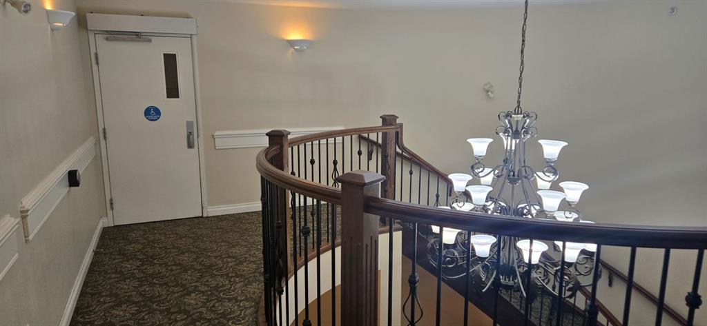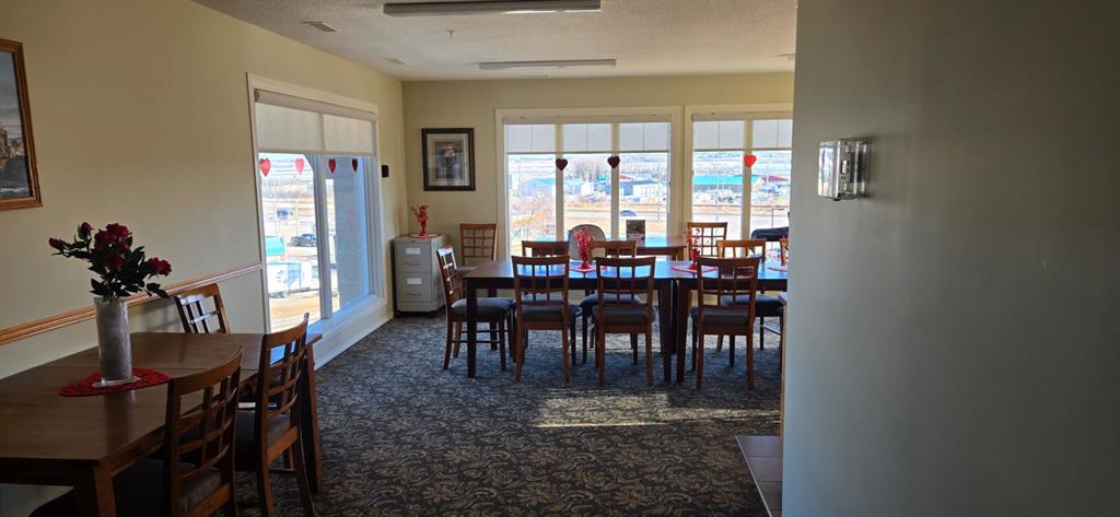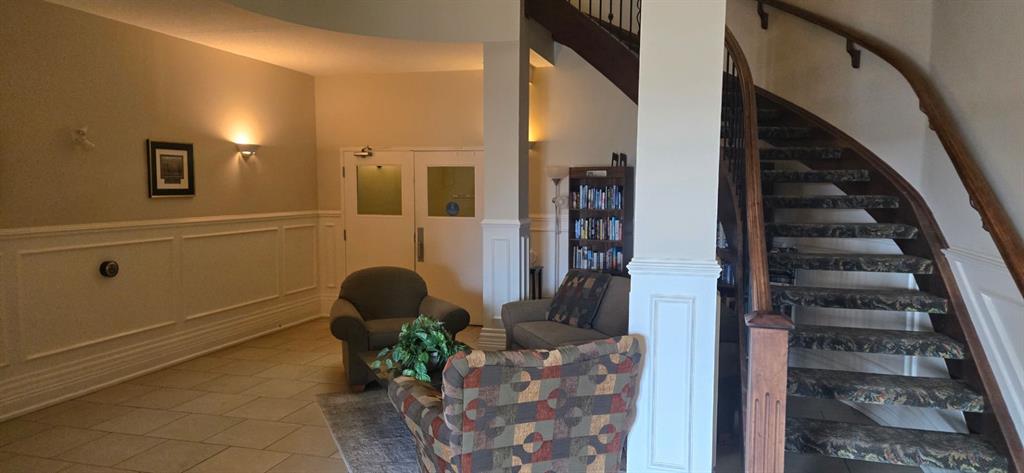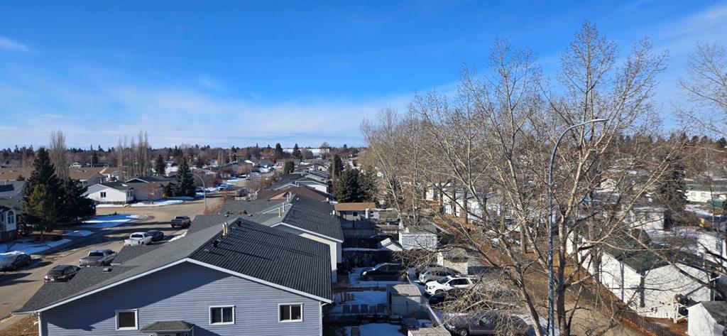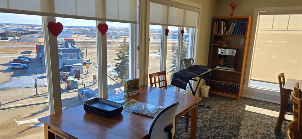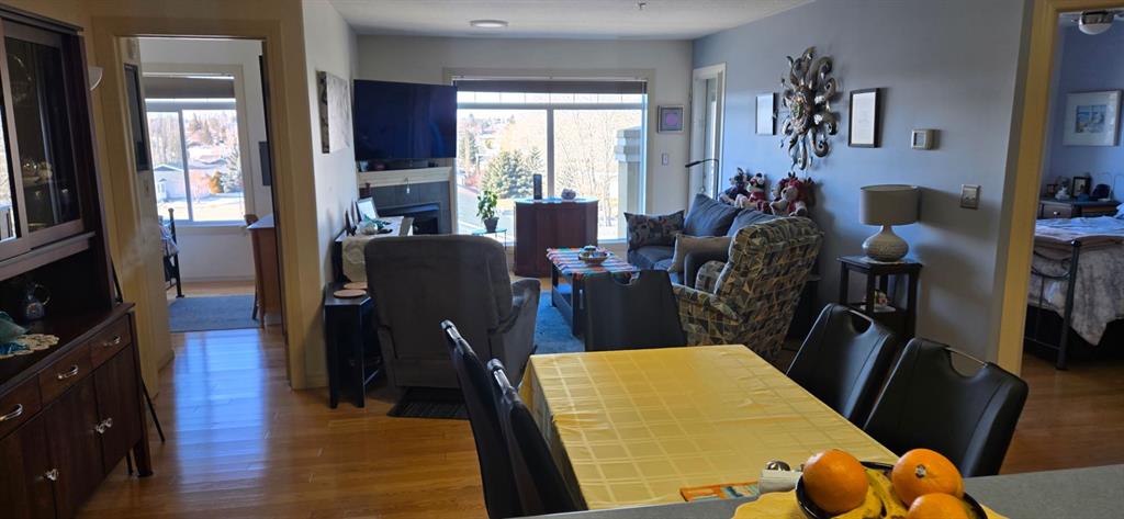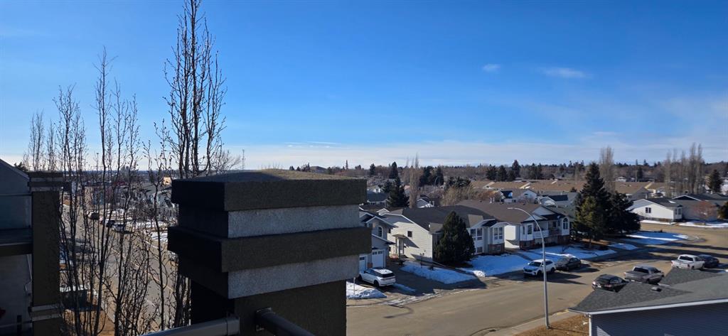 Come and check out this executive style condo that has been beautifully updated in the sought after Chateau Lacombe! Close to all of Lacombe's downtown amenities . This top floor west facing unit has 2 generous bedrooms , 2 bathrooms and adequate laundry room with awesome storage space. The open-concept layout showcases lovely hardwood flooring in the living room and tile in the kitchen. The bright and inviting kitchen offers an island and an abundance of cabinetry,& flowing seamlessly into the spacious living and dining areas complete with black out blinds included, as well with a great view to the west and panoramic view of those stunning Alberta sunsets . Patio door with retractable door screen leads to oversized balcony with a retractable awning that if forgotten about puts itself away! WOWZERS!! A private spot to relax on a summers evening to catch some sun and enjoy the views . The master bedroom has a large ensuite with shower plus huge walk in closet with custom Canadian Closet built ins with enough room for comfort and organization for everyone .There is also a common social room for visiting neighbours, hosting parties or playing cards or host a private function. This very well kept unit offers everything you need including titled underground parking so you never have to worry about parking in the outside elements . Across the parking lot or the street they have coffee until the cows come home with A&W and McDonalds close enough so you never have to drive if you so choose to. A gem waiting to be discovered for the discreet home Buyer in today's market.