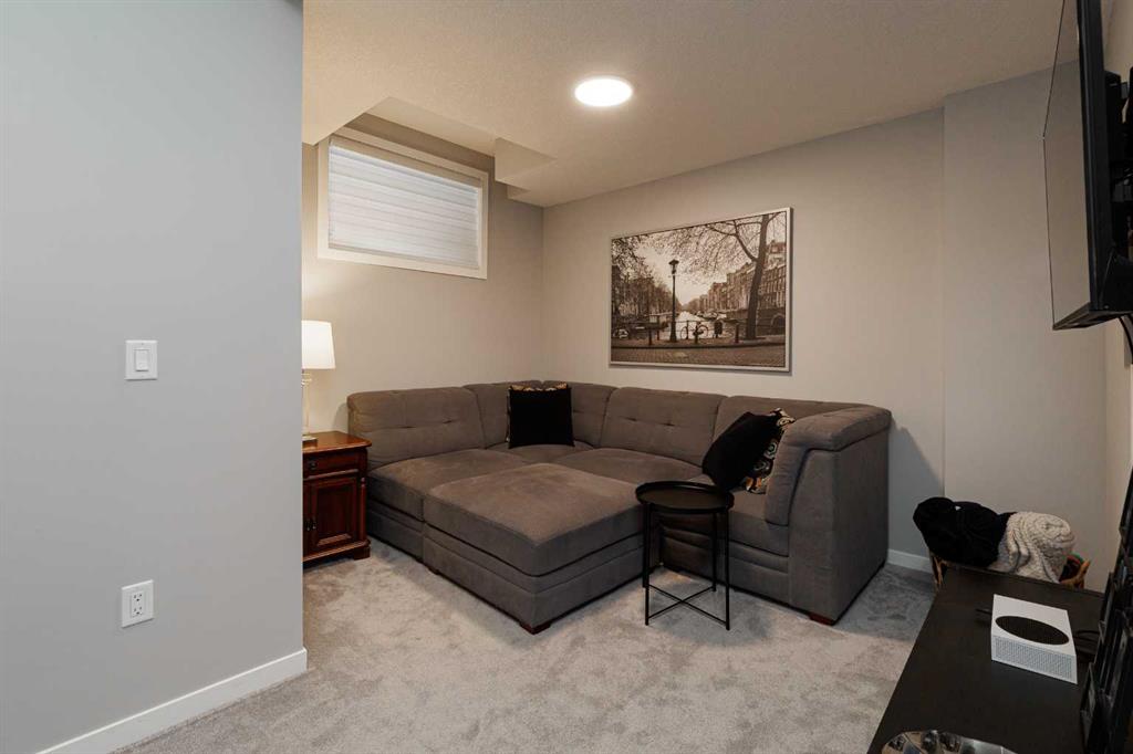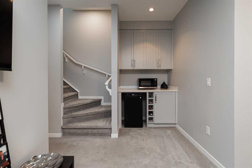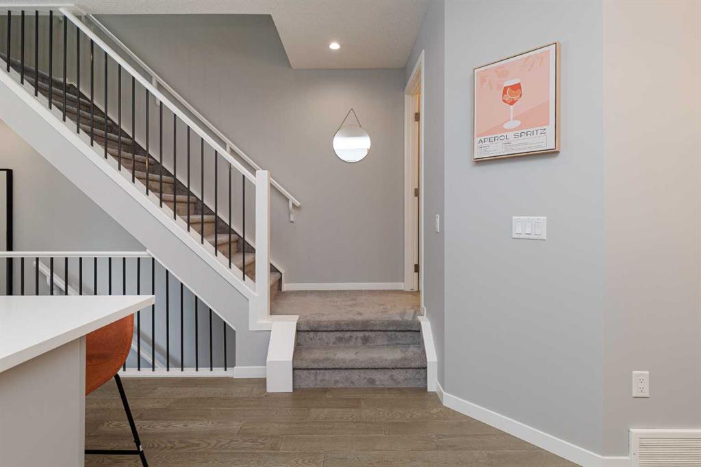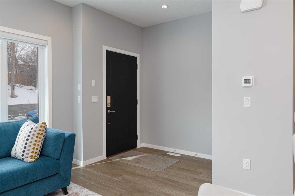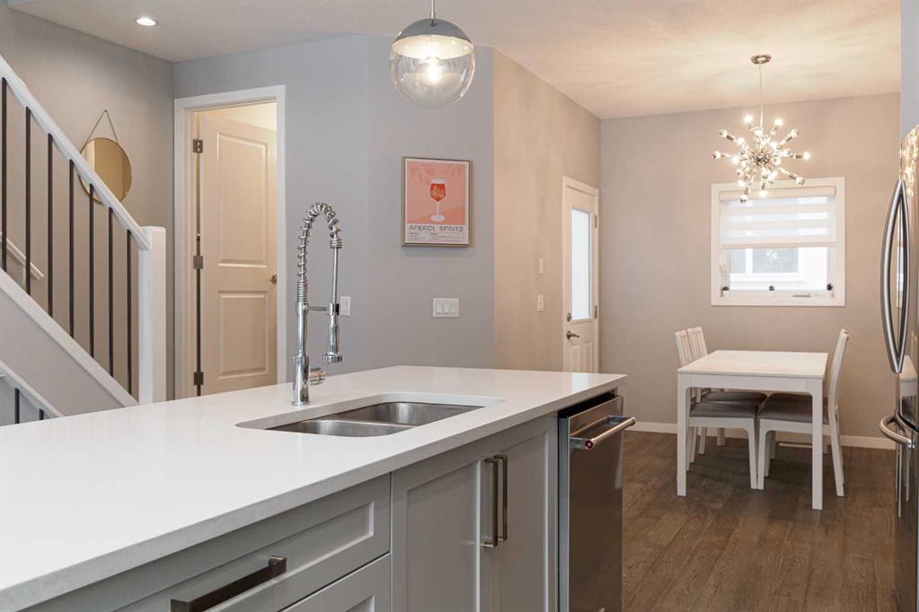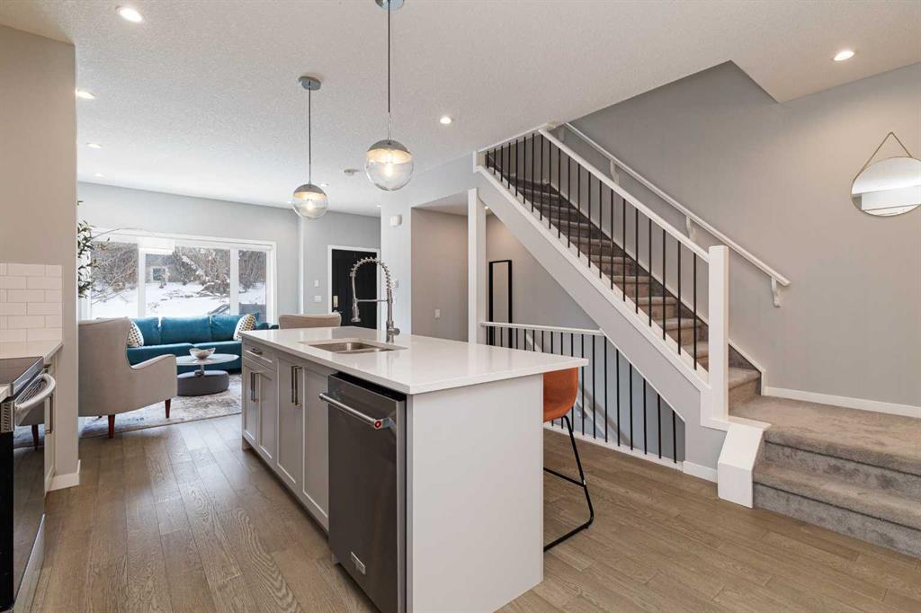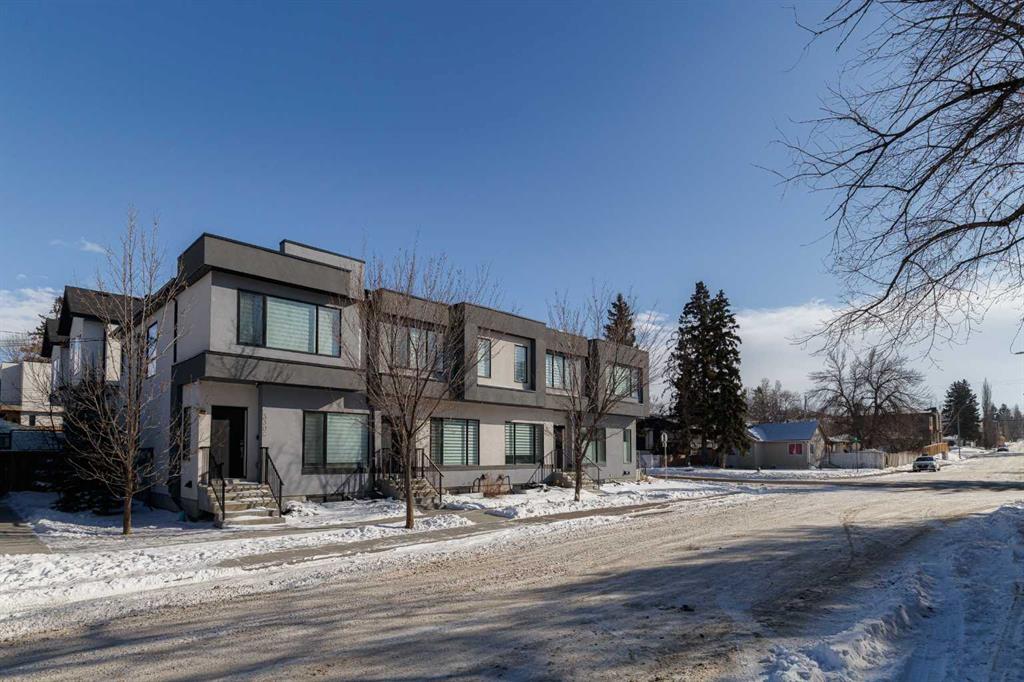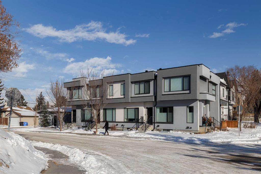 Ideally situated on a serene, tree-lined street in the sought-after community of Highland Park, this exquisitely designed townhouse awaits. Upon entering, you are welcomed by an expansive, sun-drenched floor plan characterized by massive West facing windows that bathe the interior in a warm, natural glow, highlighting the sophisticated modern finishes and wide-plank flooring throughout. The inviting front living room serves as a perfect sanctuary for relaxation, anchored by a sleek focal fireplace with a floor-to-ceiling stone surround. Flowing effortlessly from the living area is the central kitchen featuring an oversized quartz island, stainless steel appliances, and high end cabinetry. This culinary hub transitions gracefully into a dedicated dining area, making the main level an ideal setting for both intimate family evenings and grander entertaining. A two piece washroom completes this floor. The upper level is thoughtfully designed, and houses three bedrooms including a generously sized primary retreat with a walk-in closet and a four-piece ensuite. Down the hall, are the other two bedrooms, and an additional full bathroom. For added convenience, the laundry facilities are located on this upper floor. Extending the living space further, the professionally finished basement features a large recreation room, a stylish bar, a fourth spacious bedroom with walk-in closet, and a third full bathroom, making it perfect for guests or a family member wanting their own separate living space. Beyond the interior, the property includes a small, fenced backyard space, as well as a single detached garage for secure, convenient parking. This is a great opportunity to live in an amenity rich, vibrant neighbourhood, just minutes away from the recreational opportunities at Confederation and Nose Hill Park. Call today to book your showing.
