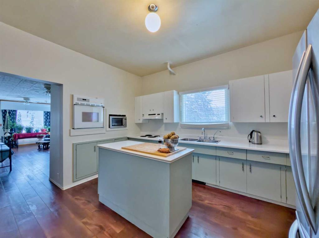 Check out this 1019sqft 2 bedroom 1 bath home on a corner lot, with a huge back lane, and large 20’ wide x 29’ deep double garage that’ll keep your toys dry and secure. With some of the important upgrades already done to the house including new flooring, newer high efficiency furnace (2021), hot water tank installed (2025) brand new Pex water lines (your insurance company will love you for that), newer fridge and washing machine, as well as some fresh paint in the kitchen and living room, you will be in great shape to take over and make this place your own. Please note, the washer and dryer are currently guests in the second bedroom. These were moved from the back entry and should be easy enough to move back there to free this room up again to its available second bedroom status if required.