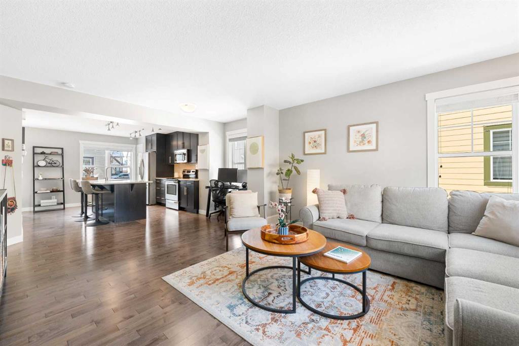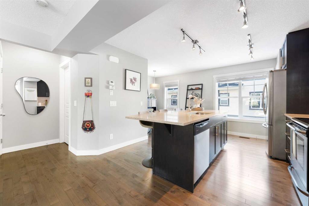 Discover exceptional value in this beautifully maintained end-unit townhouse located in the heart of the sought-after community of McKenzie Towne. Designed with comfort and functionality in mind, the home showcases a bright, open-concept floor plan highlighted by rich hardwood flooring and expansive windows that fill the space with natural light. The well-appointed kitchen is both stylish and practical, featuring quartz countertops, stainless steel appliances, a large centre island with breakfast bar, and a pantry for added storage. The main level is completed by a generous living area, inviting dining space, and a convenient 2-piece powder room—ideal for everyday living and entertaining alike. Upstairs, you will find two spacious primary-style bedrooms, each offering a walk-in closet and private ensuite for ultimate privacy. A charming loft area provides flexible space for a home office, reading nook, or relaxation zone. The fully finished basement includes a dedicated laundry room and ample storage, with direct access to the double attached garage for added convenience. Step outside to your private, west-facing front patio—perfectly sized for summer evenings and equipped with a gas line for your BBQ. Enjoy the unbeatable location within walking distance to McKenzie Towne’s vibrant High Street, where you’ll find shops, restaurants, transit, parks, and everyday amenities just steps away. Set within a well-managed complex that reflects true pride of ownership, this home presents an outstanding opportunity for buyers seeking comfort, style, and convenience.
