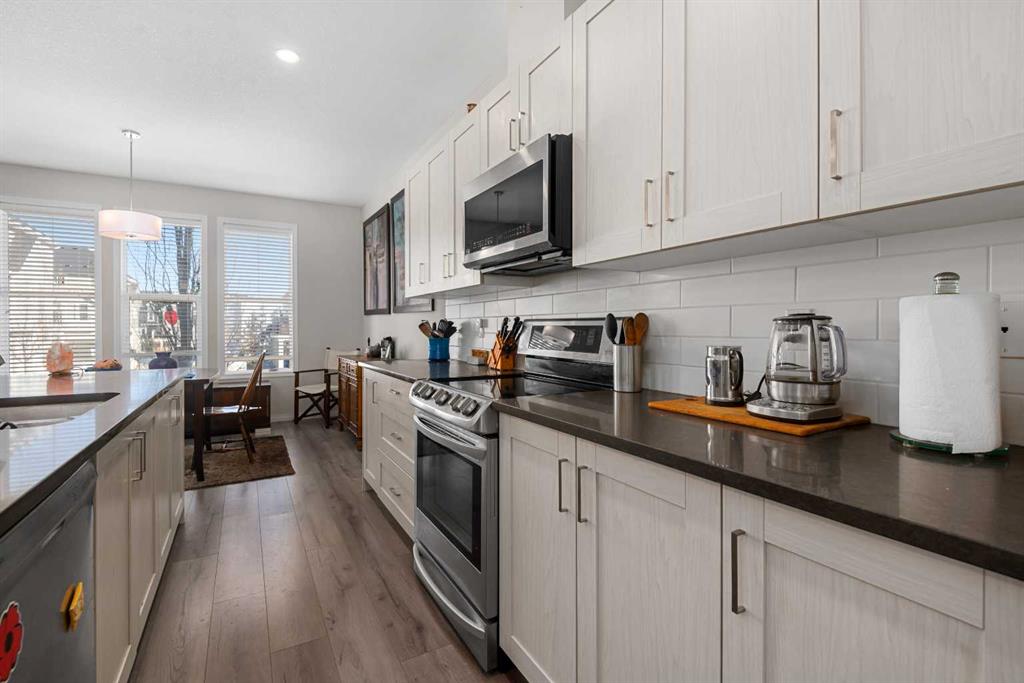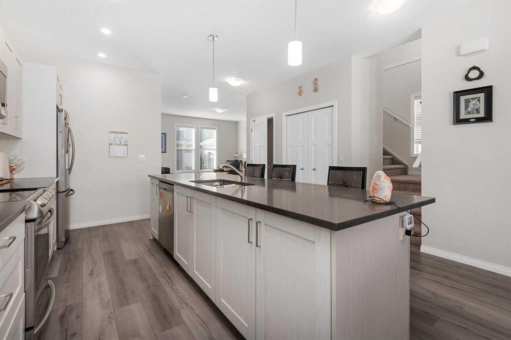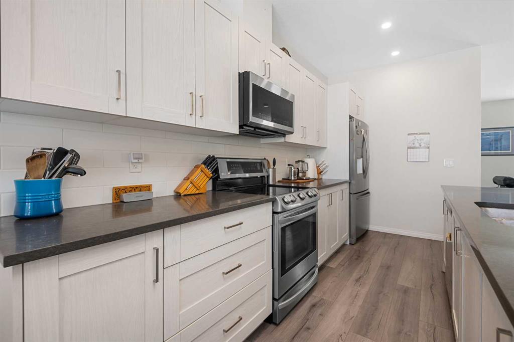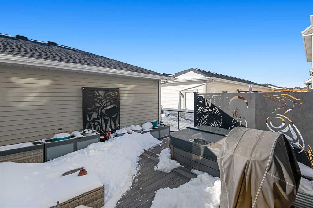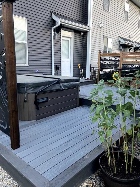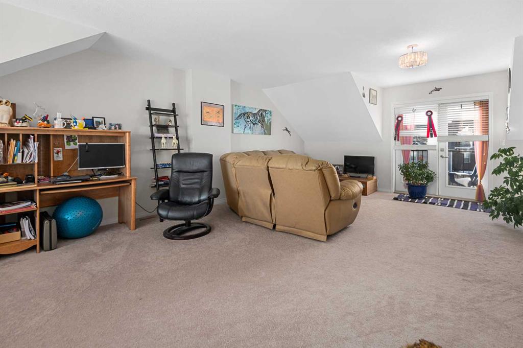 NO CONDO FEES - 2300 SF PLUS 834 SF UNFINISHED BASEMENT - END UNIT - UNIQUE MASSIVE 24'X21' UPPER BONUS ROOM WITH BALCONY - PRIVATE BACKYARD WITH HOT TUB - DETACHED DOUBLE GARAGE - - LARGEST TOWNHOUSE ON THE MARKET - Family need more room to grow? This beautifully designed END UNIT townhome delivers with 2,300 sq. ft. of developed living space, plus an additional 834 sq. ft. in the unfinished basement — offering the potential for more than 3,100 sq. ft. of total space. Best of all, there are NO CONDO FEES. With its UNIQUE DESIGN, offering Stand-out Features including a double detached garage – Traditional 2 Story layout with a MASSIVE UPPER BONUS ROOM on the entire 3rd level with it’s own balcony – 3 bedrooms – 2.5 baths – Ability to add an extra bedroom & bath in the 834 SF basement. The bright, open-concept main floor is perfectly suited for everyday family living. Relax by the cozy electric fireplace in the great room, or gather in the stylish kitchen featuring quartz countertops, stainless steel appliances, and a central island with seating. The dining area provides plenty of space for family meals and entertaining, while a convenient half bath & main floor laundry completes the level. Upstairs, the large primary suite offers a peaceful retreat with a walk-in closet and private three-piece ensuite. Two additional bedrooms and a full bathroom ensure comfort and space for the whole family. The showstopper is the impressive upper bonus room — a sprawling, light-filled space ideal for movie nights, a playroom, home office, or teen lounge. Double doors lead to a charming private balcony, perfect for morning coffee or unwinding in the evening. The unfinished basement provides excellent potential for future development or generous storage space. Outside, enjoy your own private oasis with a full-length deck, privacy wall, fenced yard, and a double detached garage to keep vehicles secure year-round. Situated on a quiet street close to schools, parks, ponds, playgrounds, and everyday amenities, this home truly offers the complete package — space, style, and flexibility for years to come. Click on Floor Plans & Media Walkthrough