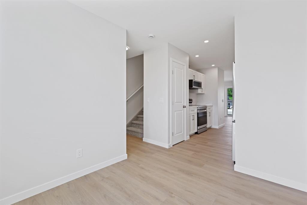 Welcome to this stylish and affordable freehold townhouse with no condo fees, built by Jonboyz Construction, a reputable local builder in Didsbury. Located in the desirable community of Valarosa, this soon to be completed home offers nearly 1,300 sq ft of functional living space with thoughtful design and family-friendly features. The main level includes an attached garage, utility room, and direct access to the backyard — offering both practicality and convenience. Upstairs, the bright and spacious main floor boasts an open dining area, cozy living room, and a modern kitchen complete with white soft-close cabinets, white quartz countertops, a pantry, and vinyl plank flooring in a warm, neutral tone. This level also includes a 2-piece bathroom and access to your private rear deck — ideal for relaxing or entertaining. On the third floor, you’ll find two generously sized bedrooms, a 4-piece bathroom, and a convenient upstairs laundry room. The primary bedroom features dual closets, providing excellent storage space. Carpet flooring adds warmth and comfort to the bedrooms and hallway. This townhouse offers a spacious backyard, and front yard — a rare find. The builder will also be including a fully fenced backyard, providing privacy, security, and a safe space for children or pets. Located just steps from a scenic protected forest area with walking paths and local wildlife, and close to a playground and baseball diamond, this home is perfect for families looking for space and community. Don’t miss your chance to own this well-crafted home in a peaceful, family-oriented neighborhood.