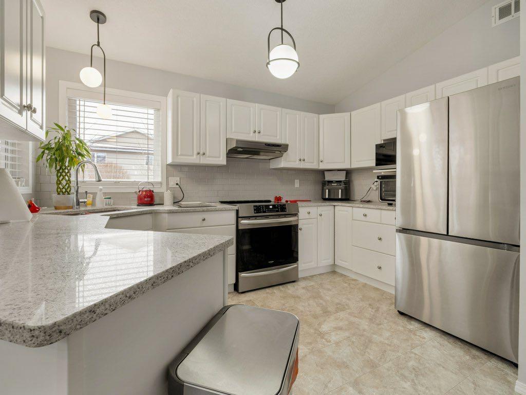 Tucked away in a quiet cul-de-sac in one of Lethbridge’s sought-after family neighbourhoods, this beautifully reimagined 4-level split offers approximately 1,200 square feet of thoughtfully updated living space designed for both comfort and modern style. Extensively upgraded within the past year, the home has been freshly painted throughout — including ceilings — creating a bright, cohesive aesthetic. The kitchen has been elevated with elegant quartz countertops, a new sink and faucet, a contemporary tiled backsplash, and a premium appliance package featuring a Samsung refrigerator, Frigidaire Gallery induction range, and Miele dishwasher. The main level features new subflooring and luxury vinyl plank, complemented by all new floor coverings across the three developed levels. New lighting throughout enhances the home’s warm, modern ambiance. Upstairs offers three bedrooms, while the lower level presents an expansive family room and additional bedroom with ensuite — ideal for guests, a private retreat, or home office. Bathrooms have been refreshed with new faucets and comfort height toilets. Mechanical updates include a new Lennox fHRV system for improved efficiency and year-round comfort. Laundry is complete with new LG washer and dryer. Exterior improvements include a new front railing, and recent professional tree pruning along with the inground sprinkler system.The double attached garage is insulated and drywalled. A truly move-in-ready residence offering quality upgrades, functional layout, and a desirable cul-de-sac location — an exceptional opportunity for discerning buyers. Enjoy living in Riverstone, an amazing community, offering parks, pathways, and coulees. And offered at an affordable price for a new family!