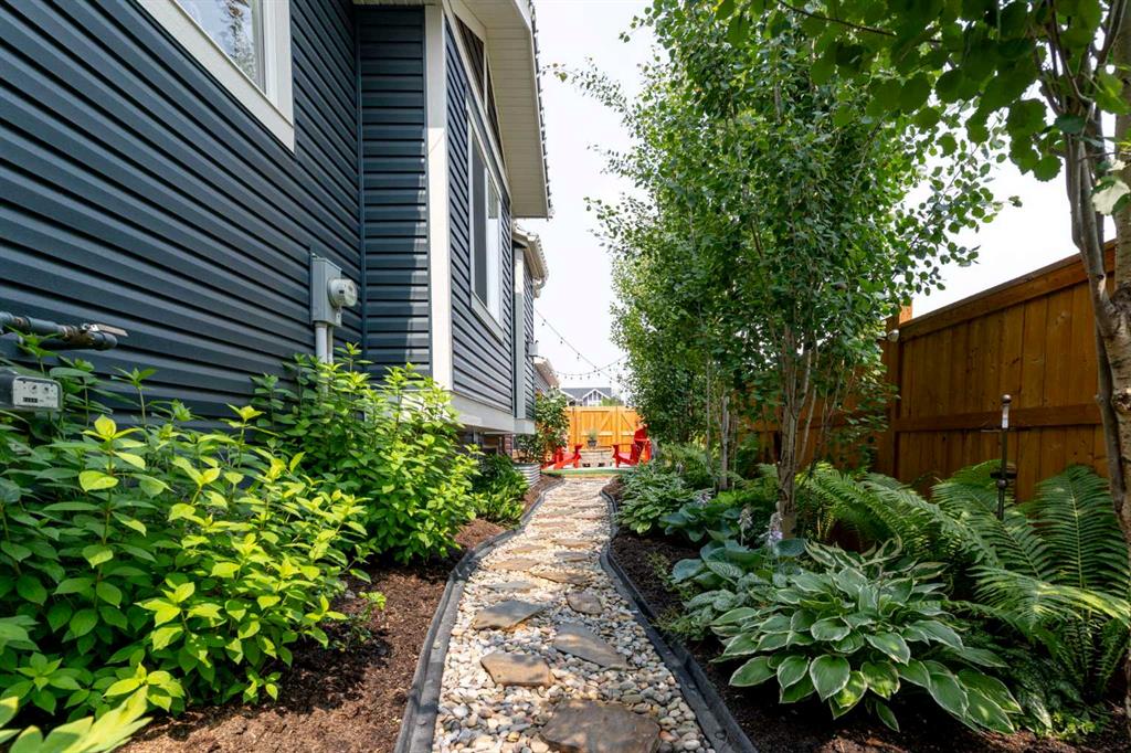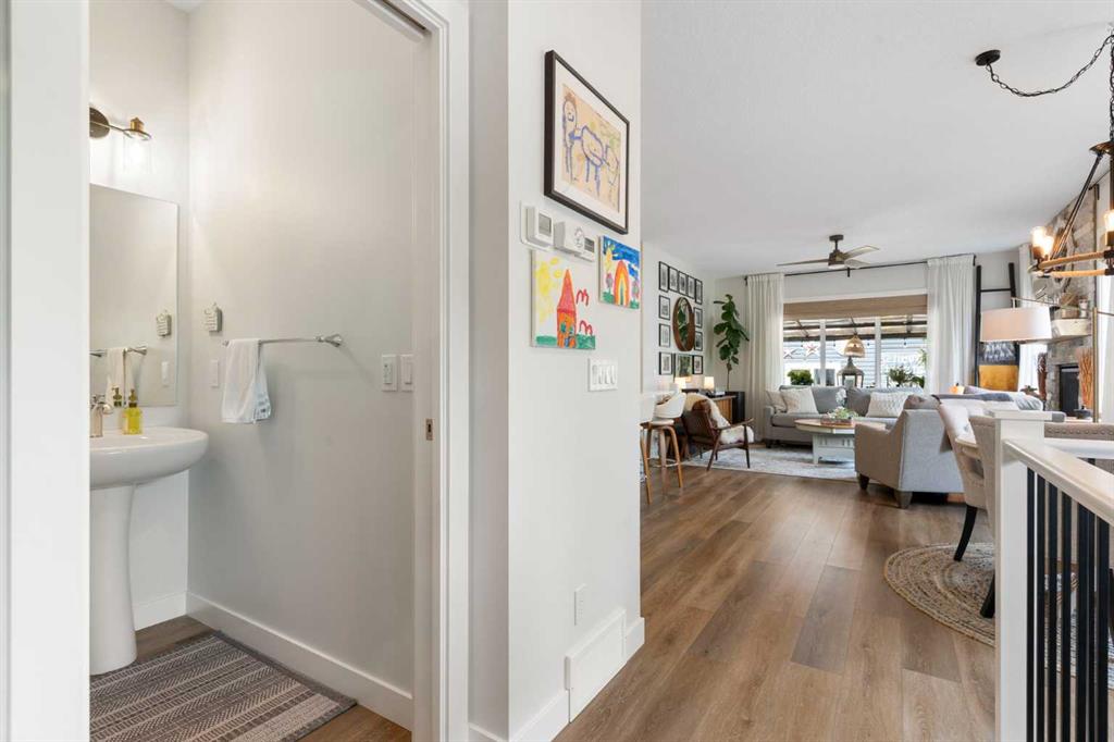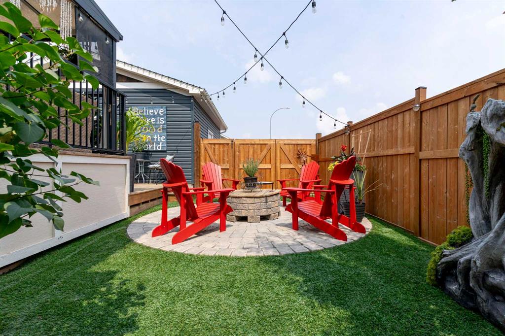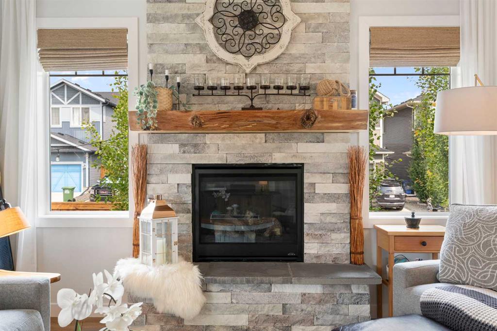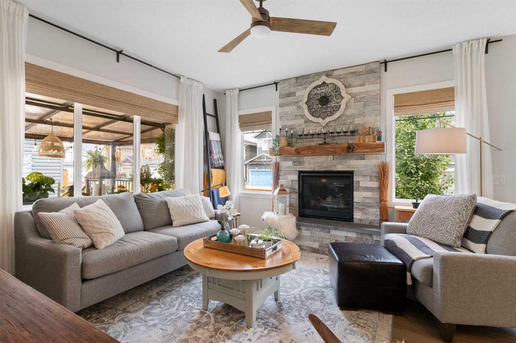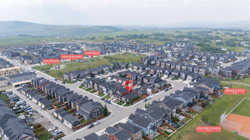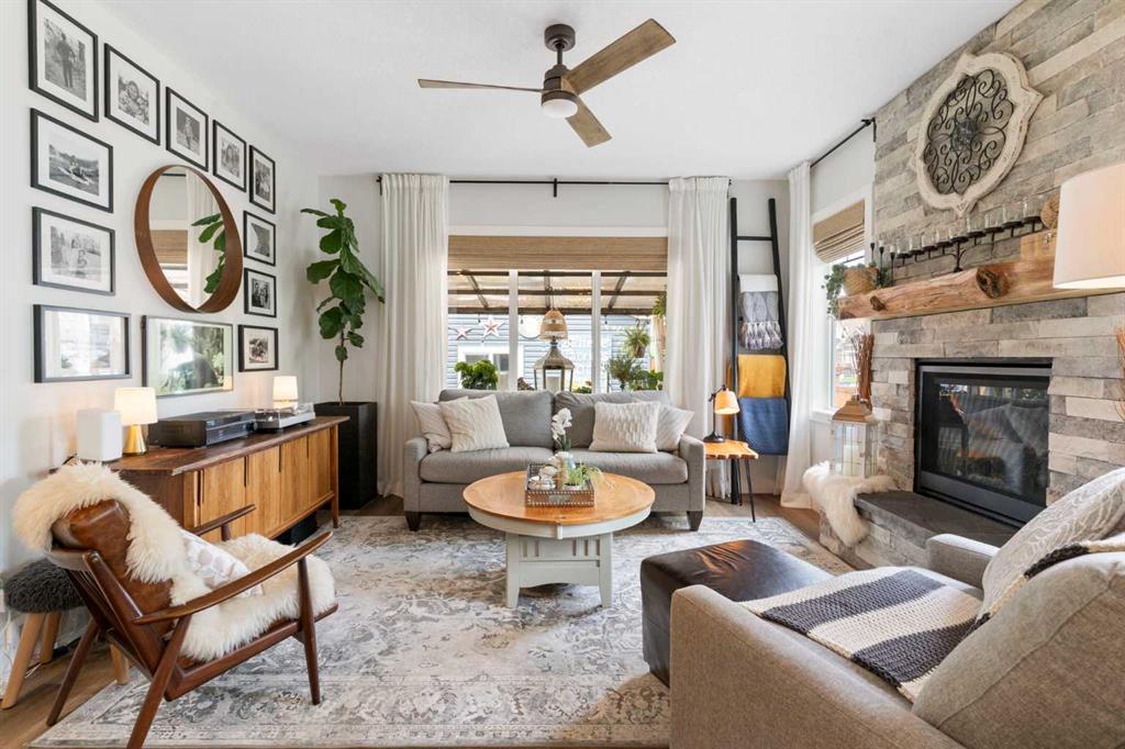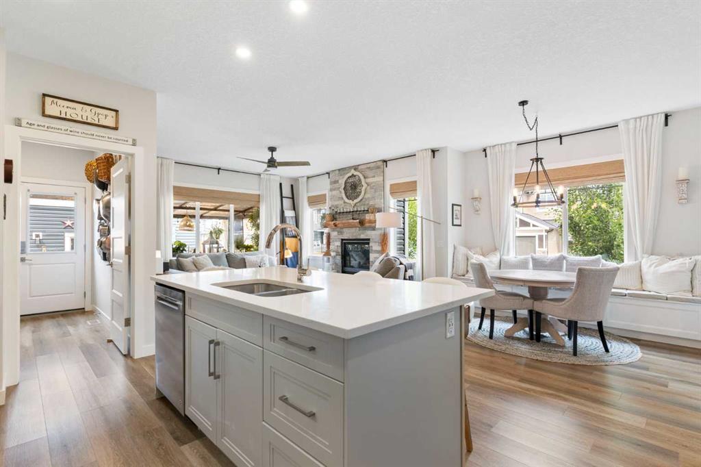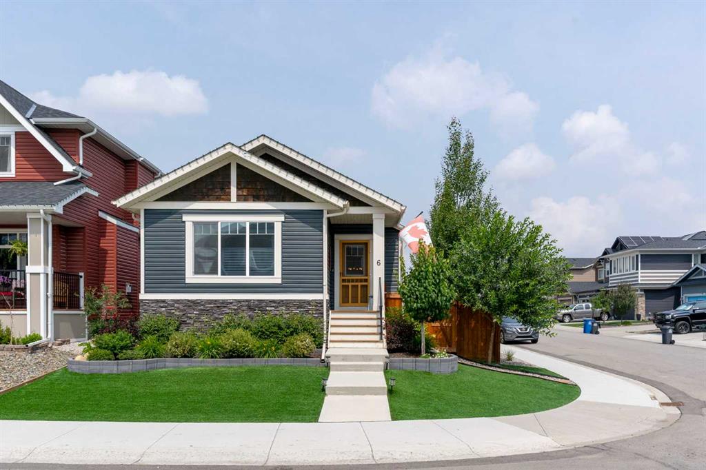 ** Open House: Saturday, Apr. 4th | 10:30 am to 12:30 pm ** Welcome to 6 Emberside Hollow, a bright corner-lot bungalow located in the heart of Cochrane’s sought after Fireside community. Offering just over 2,030 square feet of well-designed living space, this home delivers modern finishes paired with everyday functionality. The main floor is airy and welcoming with 9ft ceilings, wide plank luxury vinyl flooring, and oversized windows that flood the space with natural light. The kitchen is designed to impress, featuring full height soft grey cabinetry with undermount lighting, quartz countertops, stainless steel appliances, a gas range, an undermount sink, and a large island with seating for three. Just off the kitchen, the dining nook includes a built-in bench with pull out drawers for added storage and convenience. The living room is anchored by a striking floor to ceiling brick fireplace, while a convenient half bath and functional mudroom help keep daily life organized. The primary bedroom is a comfortable retreat with a walk-in closet and spa-inspired ensuite offering dual sinks, a spacious tiled shower with bench, and a glass door. The bedroom window is tinted for added privacy without sacrificing natural light. A metal spindle railing leads to the fully finished lower level, where 9ft ceilings create a spacious family room ideal for movie nights, games, or play space. Two generous bedrooms share a stylish 4 piece bathroom, and a dedicated home office with wall to wall desk and shelving provides a perfect work from home setup. Outside, the fully fenced yard is designed for easy enjoyment. Low maintenance artificial turf eliminates mowing, while an irrigation system services the flowerbeds and planters. Landscape lighting enhances evening ambiance, and a circular gas fire pit creates a natural gathering space. The detached 22' × 22' garage features high ceilings, two large windows, 30-amp 120/240-volt service, a 240-volt heater, overhead storage racks, and a built-in workbench, making it ideal for vehicles, hobbies, and storage. The additional gravel parking pad offers excellent flexibility for extra vehicles, a trailer, or RV, with a gate that opens to allow for longer RV parking. Fireside is known for its walkable pathways, playgrounds, pump track, new skateboard park, and proximity to Fireside School (K–8), Holy Spirit Catholic School (K–8), local coffee shops, and the Emberside commercial plaza. With Highway 22 just minutes away, Calgary and the mountains are both easily accessible. Offering single level living, modern finishes, an entertainer friendly backyard, and a vibrant neighbourhood setting, 6 Emberside Hollow is a home you will love coming back to.
