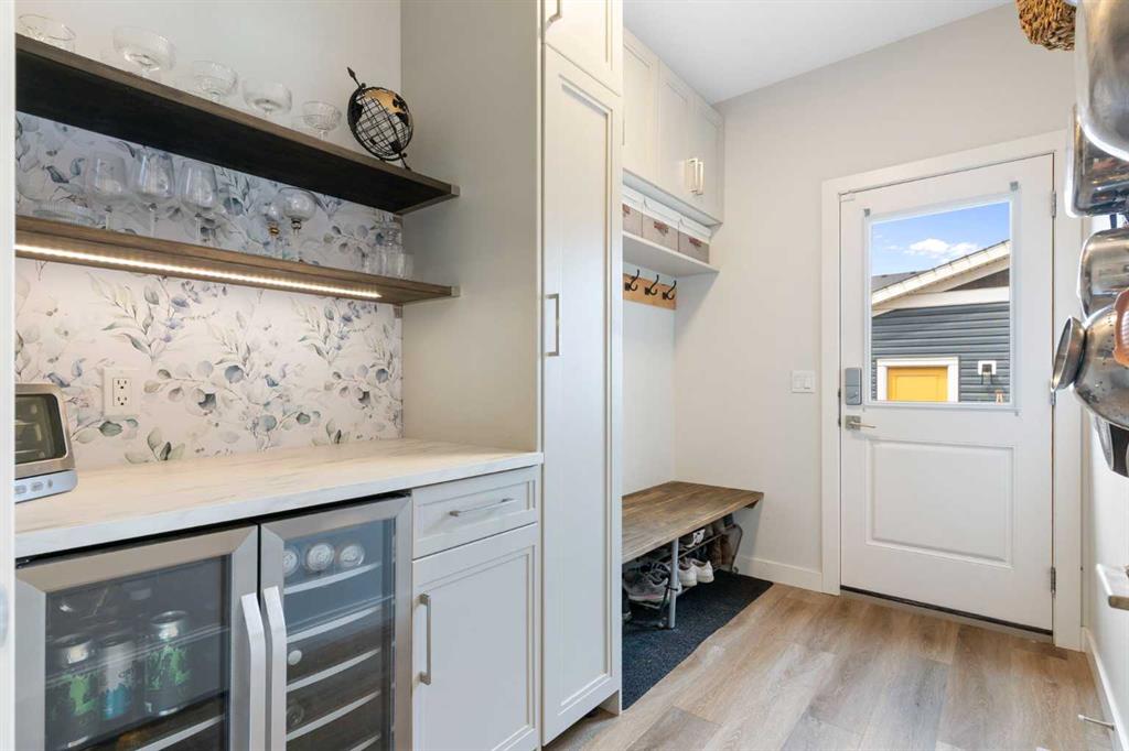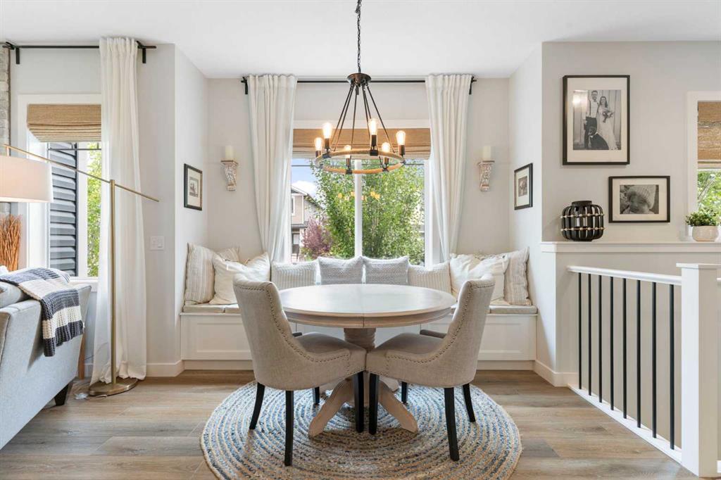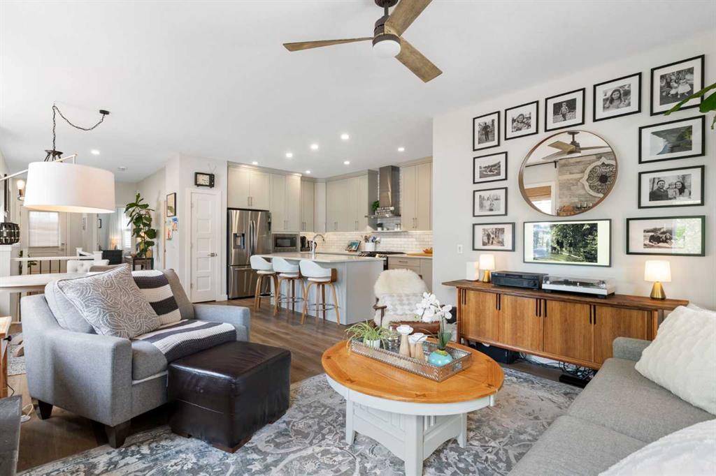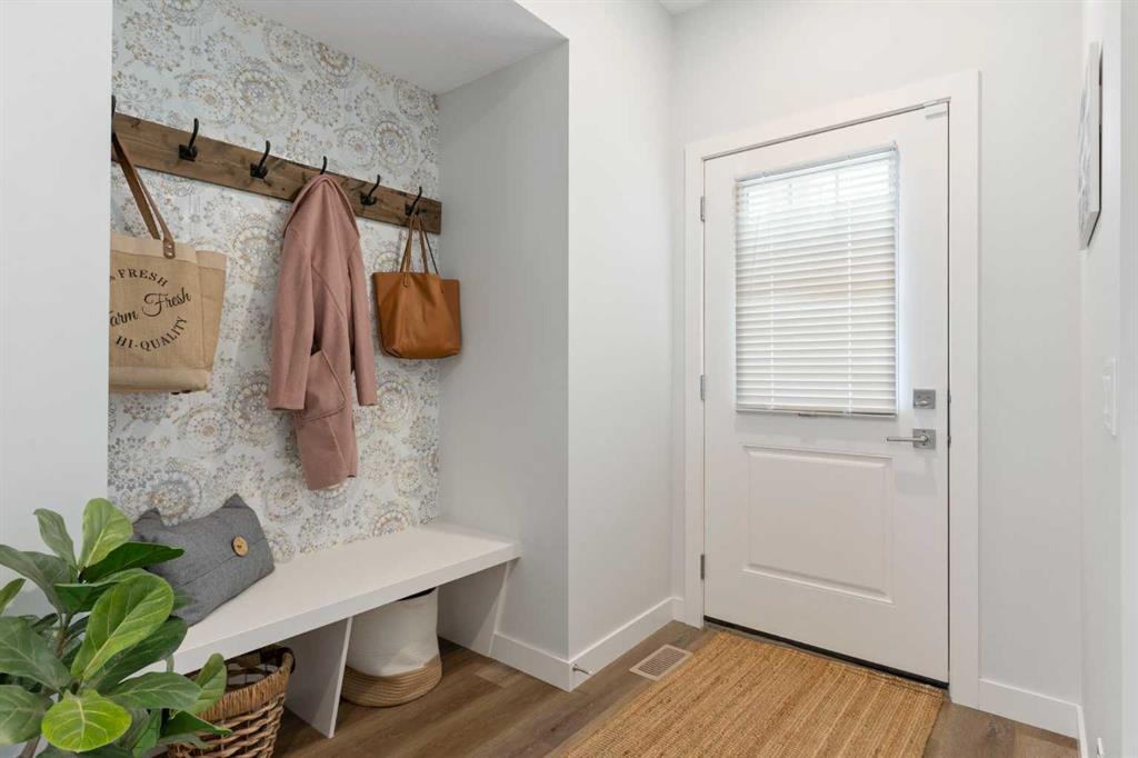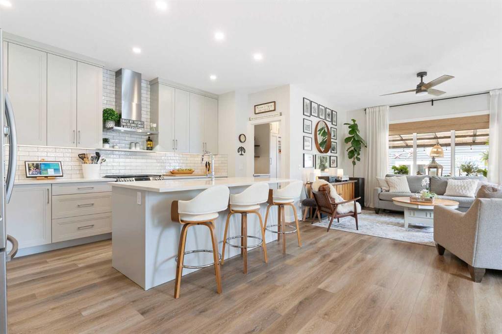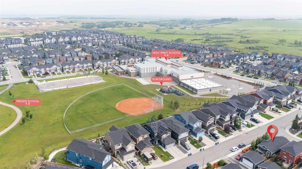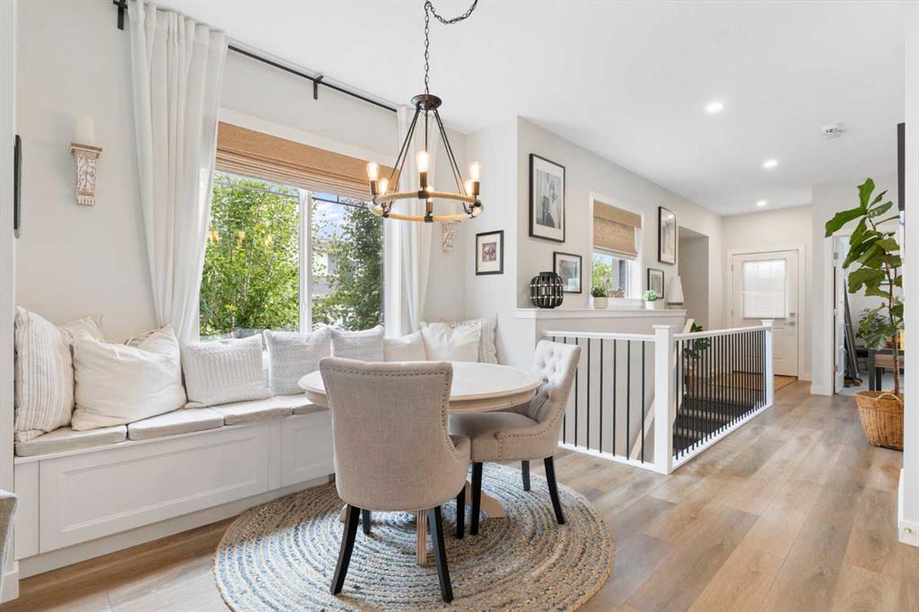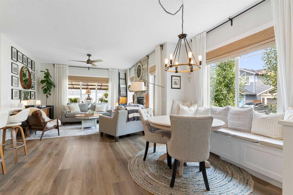 ** Open House: Saturday, Apr. 4th | 10:30 am to 12:30 pm ** Welcome to 6 Emberside Hollow, a bright corner-lot bungalow located in the heart of Cochrane’s sought after Fireside community. Offering just over 2,030 square feet of well-designed living space, this home delivers modern finishes paired with everyday functionality. The main floor is airy and welcoming with 9ft ceilings, wide plank luxury vinyl flooring, and oversized windows that flood the space with natural light. The kitchen is designed to impress, featuring full height soft grey cabinetry with undermount lighting, quartz countertops, stainless steel appliances, a gas range, an undermount sink, and a large island with seating for three. Just off the kitchen, the dining nook includes a built-in bench with pull out drawers for added storage and convenience. The living room is anchored by a striking floor to ceiling brick fireplace, while a convenient half bath and functional mudroom help keep daily life organized. The primary bedroom is a comfortable retreat with a walk-in closet and spa-inspired ensuite offering dual sinks, a spacious tiled shower with bench, and a glass door. The bedroom window is tinted for added privacy without sacrificing natural light. A metal spindle railing leads to the fully finished lower level, where 9ft ceilings create a spacious family room ideal for movie nights, games, or play space. Two generous bedrooms share a stylish 4 piece bathroom, and a dedicated home office with wall to wall desk and shelving provides a perfect work from home setup. Outside, the fully fenced yard is designed for easy enjoyment. Low maintenance artificial turf eliminates mowing, while an irrigation system services the flowerbeds and planters. Landscape lighting enhances evening ambiance, and a circular gas fire pit creates a natural gathering space. The detached 22' × 22' garage features high ceilings, two large windows, 30-amp 120/240-volt service, a 240-volt heater, overhead storage racks, and a built-in workbench, making it ideal for vehicles, hobbies, and storage. The additional gravel parking pad offers excellent flexibility for extra vehicles, a trailer, or RV, with a gate that opens to allow for longer RV parking. Fireside is known for its walkable pathways, playgrounds, pump track, new skateboard park, and proximity to Fireside School (K–8), Holy Spirit Catholic School (K–8), local coffee shops, and the Emberside commercial plaza. With Highway 22 just minutes away, Calgary and the mountains are both easily accessible. Offering single level living, modern finishes, an entertainer friendly backyard, and a vibrant neighbourhood setting, 6 Emberside Hollow is a home you will love coming back to.