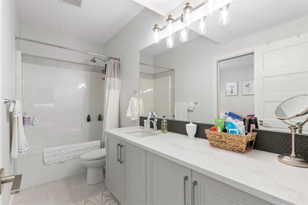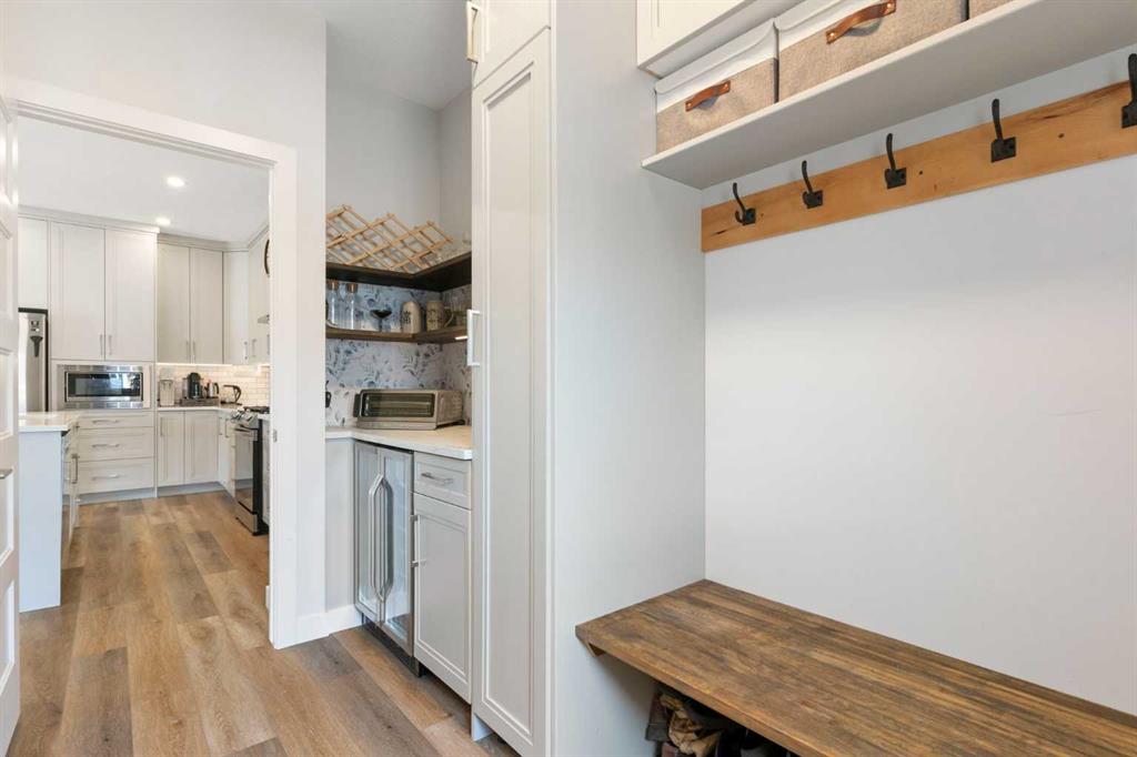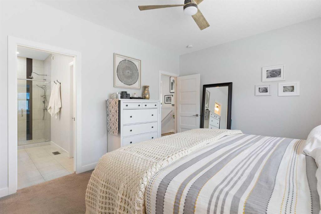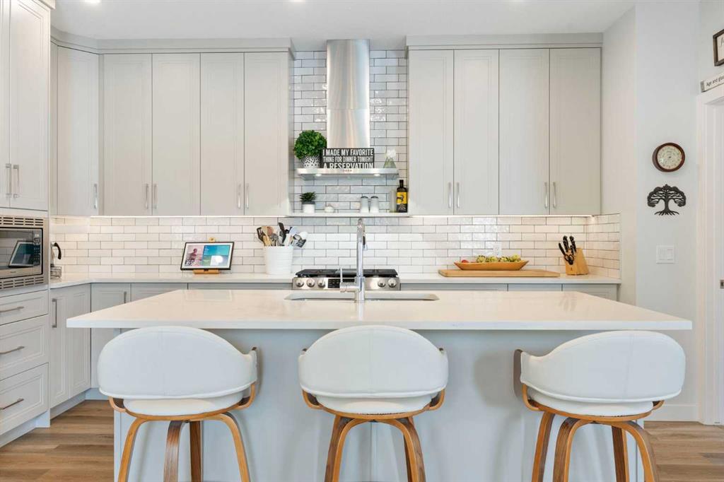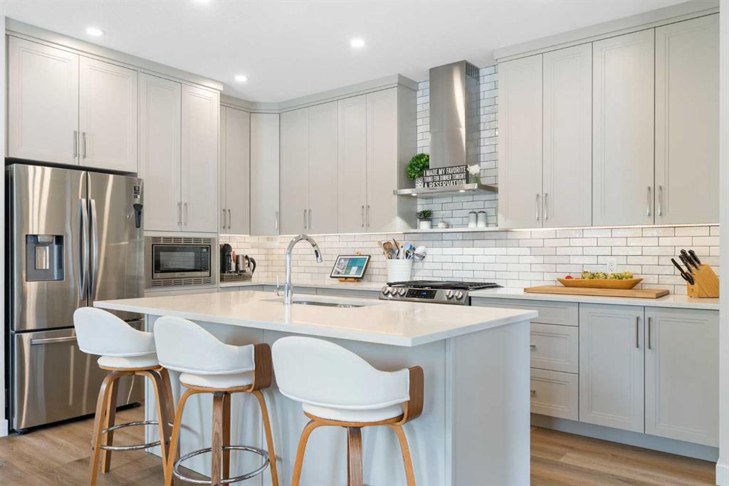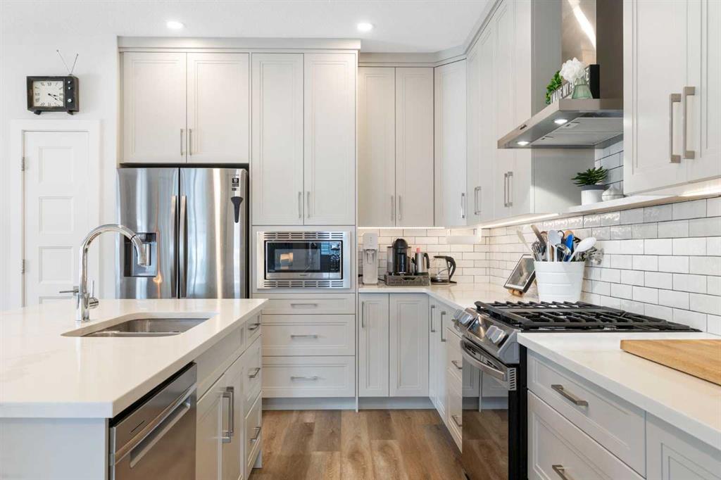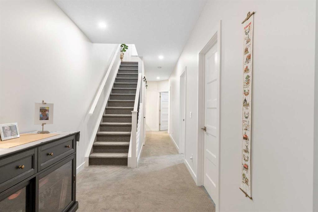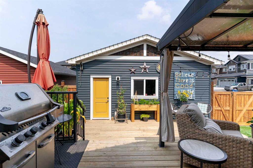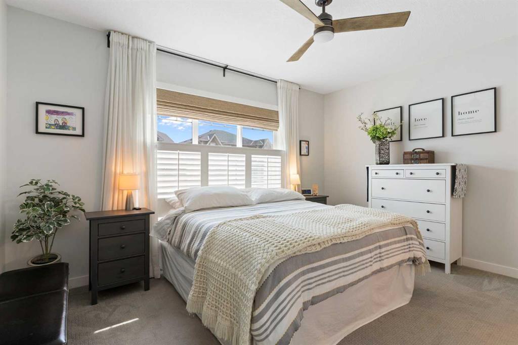** Open House: Saturday, Apr. 4th | 10:30 am to 12:30 pm ** Welcome to 6 Emberside Hollow, a bright corner-lot bungalow located in the heart of Cochrane’s sought after Fireside community. Offering just over 2,030 square feet of well-designed living space, this home delivers modern finishes paired with everyday functionality. The main floor is airy and welcoming with 9ft ceilings, wide plank luxury vinyl flooring, and oversized windows that flood the space with natural light. The kitchen is designed to impress, featuring full height soft grey cabinetry with undermount lighting, quartz countertops, stainless steel appliances, a gas range, an undermount sink, and a large island with seating for three. Just off the kitchen, the dining nook includes a built-in bench with pull out drawers for added storage and convenience. The living room is anchored by a striking floor to ceiling brick fireplace, while a convenient half bath and functional mudroom help keep daily life organized. The primary bedroom is a comfortable retreat with a walk-in closet and spa-inspired ensuite offering dual sinks, a spacious tiled shower with bench, and a glass door. The bedroom window is tinted for added privacy without sacrificing natural light. A metal spindle railing leads to the fully finished lower level, where 9ft ceilings create a spacious family room ideal for movie nights, games, or play space. Two generous bedrooms share a stylish 4 piece bathroom, and a dedicated home office with wall to wall desk and shelving provides a perfect work from home setup. Outside, the fully fenced yard is designed for easy enjoyment. Low maintenance artificial turf eliminates mowing, while an irrigation system services the flowerbeds and planters. Landscape lighting enhances evening ambiance, and a circular gas fire pit creates a natural gathering space. The detached 22' × 22' garage features high ceilings, two large windows, 30-amp 120/240-volt service, a 240-volt heater, overhead storage racks, and a built-in workbench, making it ideal for vehicles, hobbies, and storage. The additional gravel parking pad offers excellent flexibility for extra vehicles, a trailer, or RV, with a gate that opens to allow for longer RV parking. Fireside is known for its walkable pathways, playgrounds, pump track, new skateboard park, and proximity to Fireside School (K–8), Holy Spirit Catholic School (K–8), local coffee shops, and the Emberside commercial plaza. With Highway 22 just minutes away, Calgary and the mountains are both easily accessible. Offering single level living, modern finishes, an entertainer friendly backyard, and a vibrant neighbourhood setting, 6 Emberside Hollow is a home you will love coming back to.