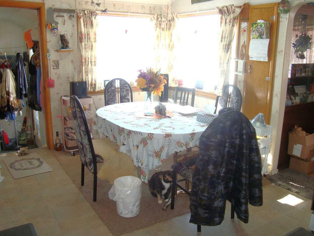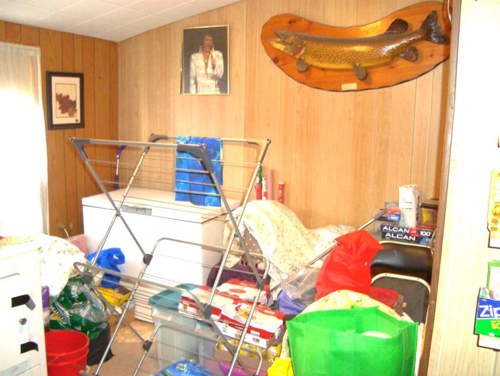 Cute and cozy with recent exterior upgrades, shingles, eavestroughing, facia and sofit. 2 Bedroom with 3rd converted to main floor laundry, west facing large living room. All 8 appliances come with the home. Mature trees and bushes on the 3 lots together. A 10 x 20 covered patio ajoined to the home, an older garage and a storage shed. Enough room to live in this while building your new home in this quite friendly community.