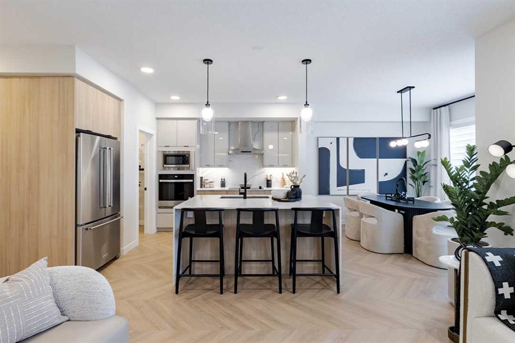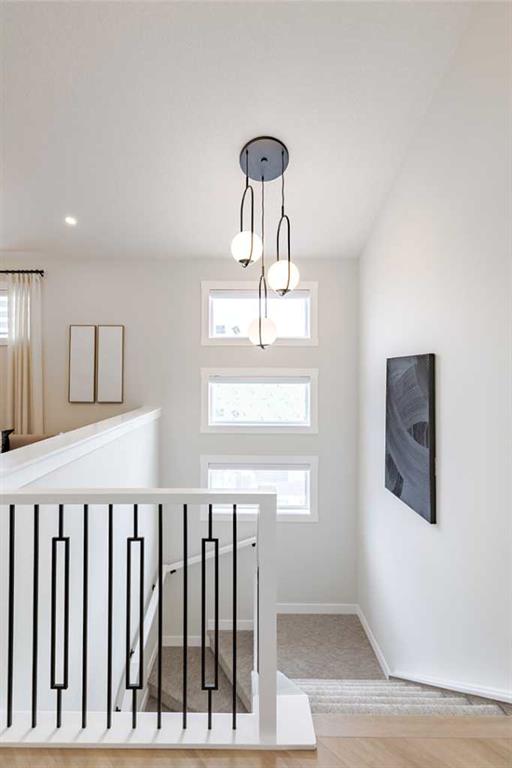 Welcome to the Katalina by Shane Homes, a pre construction home with a tentative 10-12 month possession timeframe. This front-drive home with a double attached garage is located in the community of Rose Ranch. The main floor features a full bedroom and full bathroom with shower, ideal for guests. The open-concept layout includes a living room with electric fireplace, dining nook, and a kitchen with island seating and a walk-in pantry. Upstairs offers three bedrooms, including the primary bedroom with dual vanity ensuite, soaker tub, separate shower, and walk-in closet. All upstairs bedrooms include walk-in closets, along with a full laundry room and an additional full bathroom. The undeveloped basement is ready for potential future development and includes rough-ins. This home can be customized to suit buyer needs. Photos are illustrative and for representative purposes only.