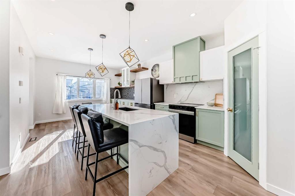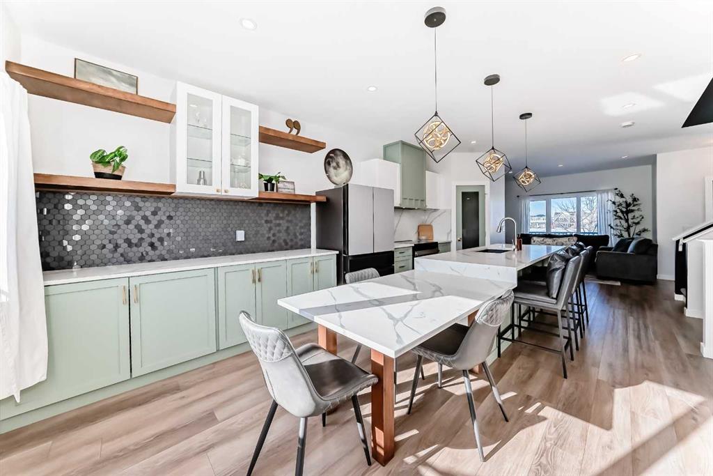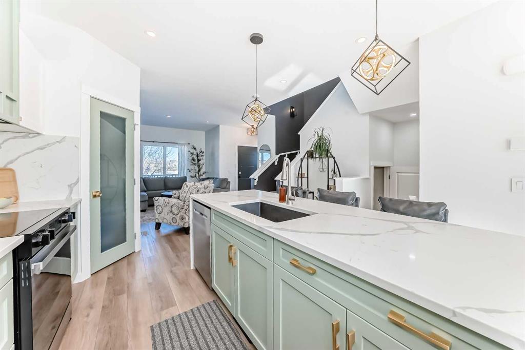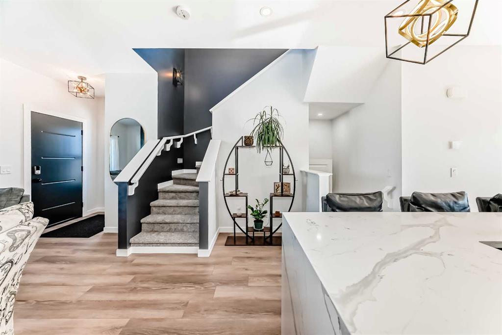 Welcome to this beautifully updated, move-in ready home with over 1800 sqft of finished living space located in the heart of Reunion. Perfectly positioned on a corner lot, directly across from open green space, and within walking distance to Heron’s Crossing school. Bright, welcoming and thoughtfully upgraded throughout, this home offers the ideal blend of comfort, style and functionality in a quiet, family-friendly neighbourhood. Step inside and you’ll immediately notice how bright and inviting the main floor feels, with new windows and doors allowing natural light to pour in. The living area is anchored by a custom feature wall with a contemporary electric fireplace, creating a warm and modern focal point. The fully updated custom kitchen is truly the heart of the home, complete with new appliances, updated lighting, luxury vinyl flooring and an oversized waterfall quartz island with matching table. Perfectly designed for everyday living and effortless entertaining. Upstairs, you’ll find three bedrooms including a spacious primary retreat with its own full ensuite, offering a comfortable and private space to unwind. New carpet on the stairs adds a fresh finishing touch The lower level is fully developed, providing valuable additional living space ideal for a rec room, home office, gym or family area, a flexible space that adapts to your needs. Outside enjoy the low maintenance front yard enhancing curb appeal while keeping upkeep simple. Out back, you’ll find a fully fenced yard with grass space ideal for children and pets, along with an updated patio and gazebo designed for relaxing and hosting. The corner lot provides ample parking, in addition to the double detached garage and parking pad, offering flexibility for vehicles, toys or guests. Located just steps to schools, shopping, churches, parks and walking paths, this home offers both convenience and community. Bright, stylish and thoughtfully upgraded. This is one you will not want to miss! Contact your favorite Realtor to schedule a showing today.