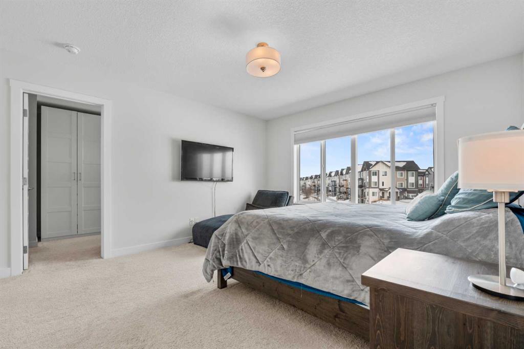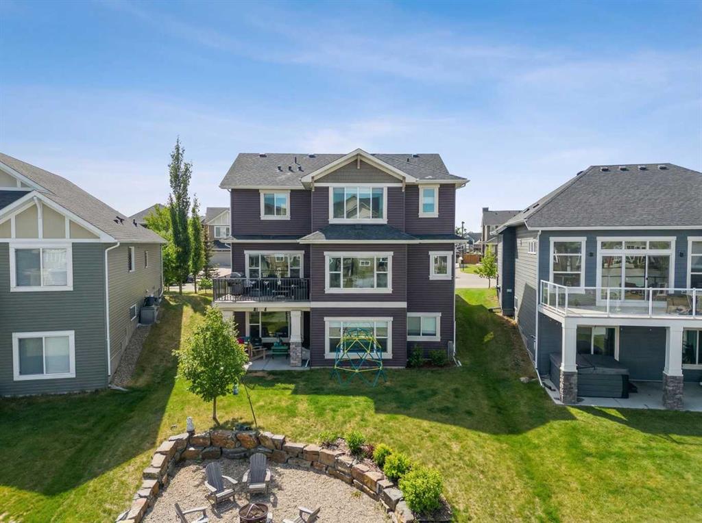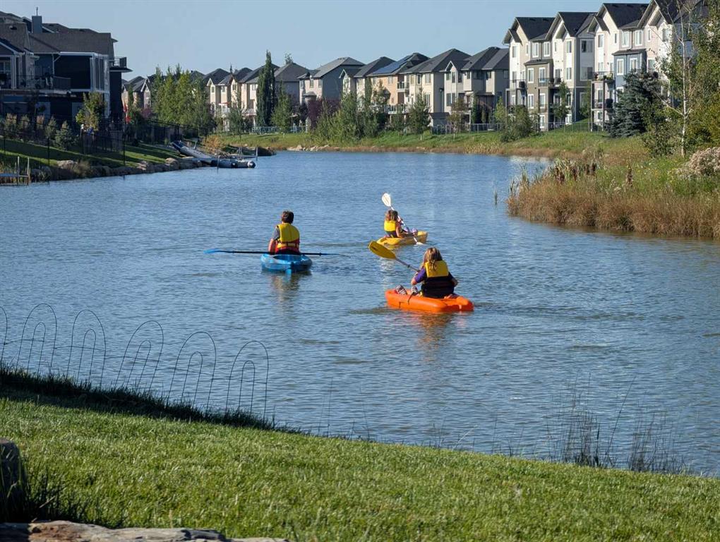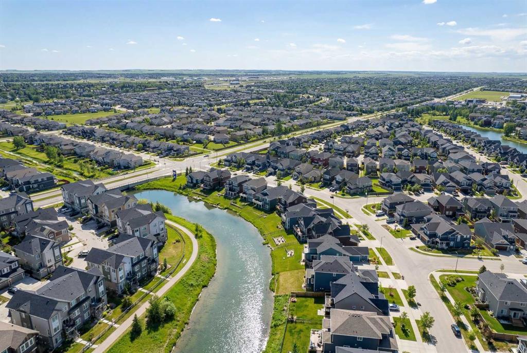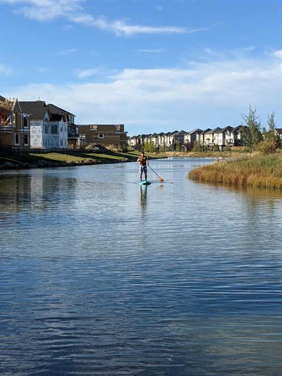 It’s a lifestyle in Bayside! Where childhood memories are made on the water in one of Alberta’s fastest-growing cities. This 3 bedroom, 2.5 bathroom home backs directly onto the canal, creating the perfect setting for families. Imagine the kids paddle boarding and splashing all summer, then lacing up their skates with friends in the winter all just, steps from your backyard. The 9 ft ceilings on the main level enhance the sense of space and natural light, complementing the bright, open kitchen designed for the entertainer and home chef. Complete with a walk-through pantry and functional mud room for extra storage and organization, this layout is perfect for busy family life. Upper-floor laundry, generous bedrooms, and comfortable living spaces add to the home’s thoughtful design. Energy-efficient solar panels and an HRV system provide year round comfort and savings. The unspoiled walk-out basement offers matching 9-foot ceilings, a separate entrance, and rough-in plumbing, ready for your custom design, whether for extended family living, a future income generator, or additional recreation space. Fully landscaped with smart underground sprinkler system. Just minutes to schools, shopping, and a short commute into Calgary, this home blends waterfront living with everyday convenience and long-term potential. Welcome Home!