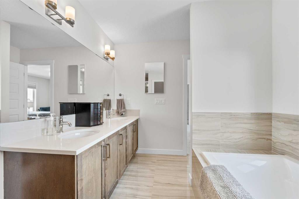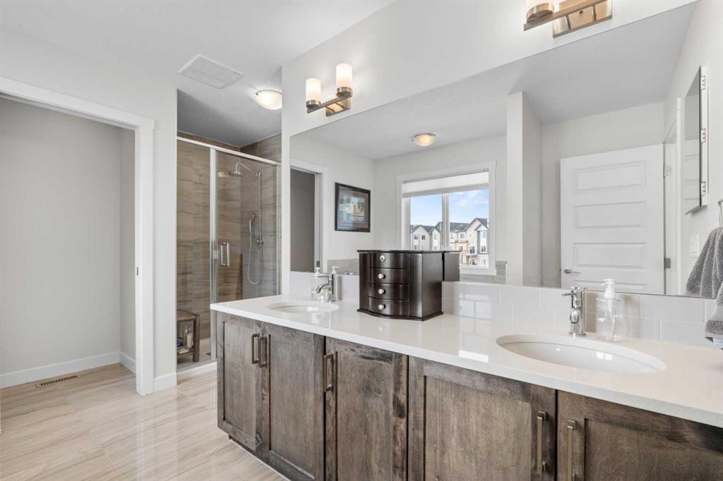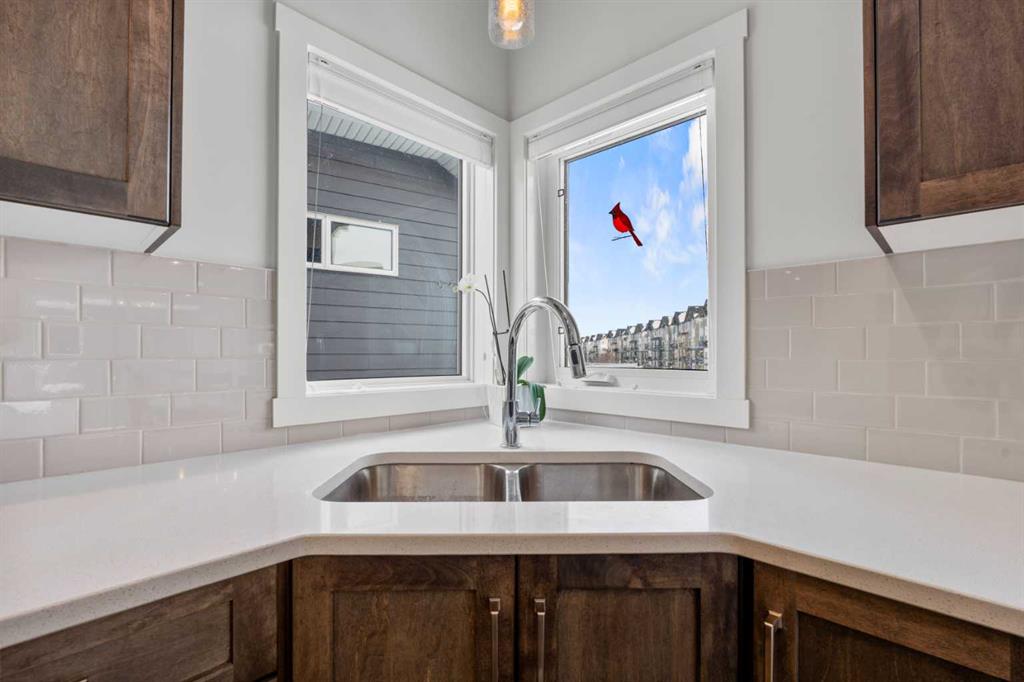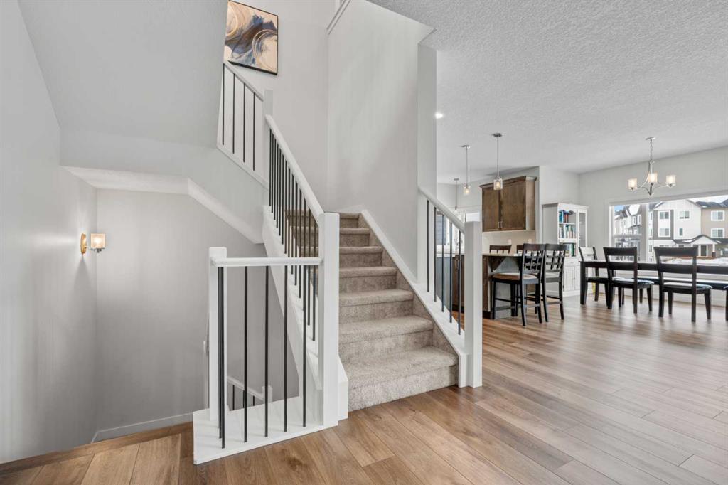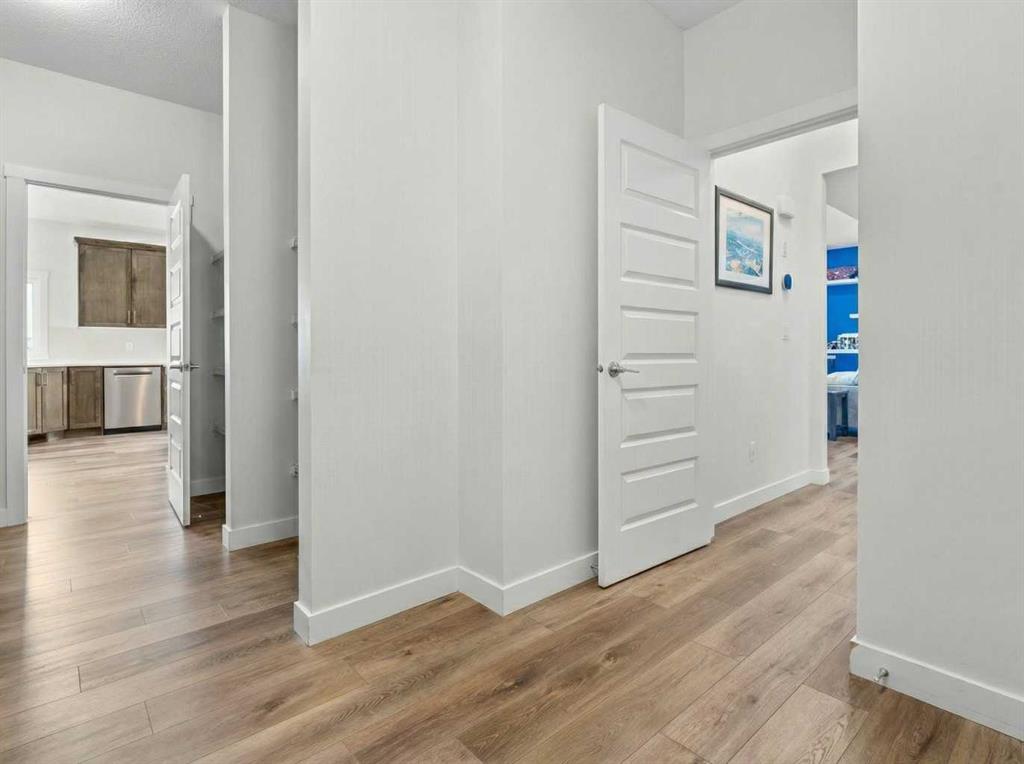 It’s a lifestyle in Bayside! Where childhood memories are made on the water in one of Alberta’s fastest-growing cities. This 3 bedroom, 2.5 bathroom home backs directly onto the canal, creating the perfect setting for families. Imagine the kids paddle boarding and splashing all summer, then lacing up their skates with friends in the winter all just, steps from your backyard. The 9 ft ceilings on the main level enhance the sense of space and natural light, complementing the bright, open kitchen designed for the entertainer and home chef. Complete with a walk-through pantry and functional mud room for extra storage and organization, this layout is perfect for busy family life. Upper-floor laundry, generous bedrooms, and comfortable living spaces add to the home’s thoughtful design. Energy-efficient solar panels and an HRV system provide year round comfort and savings. The unspoiled walk-out basement offers matching 9-foot ceilings, a separate entrance, and rough-in plumbing, ready for your custom design, whether for extended family living, a future income generator, or additional recreation space. Fully landscaped with smart underground sprinkler system. Just minutes to schools, shopping, and a short commute into Calgary, this home blends waterfront living with everyday convenience and long-term potential. Welcome Home!