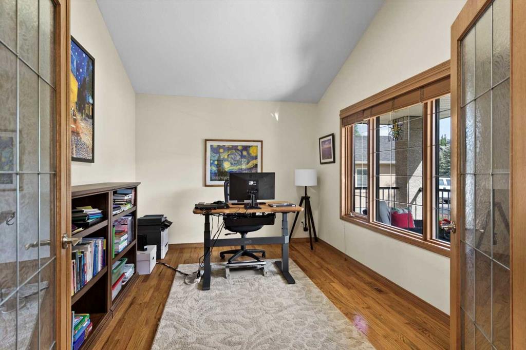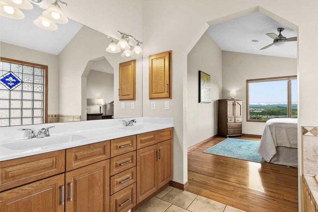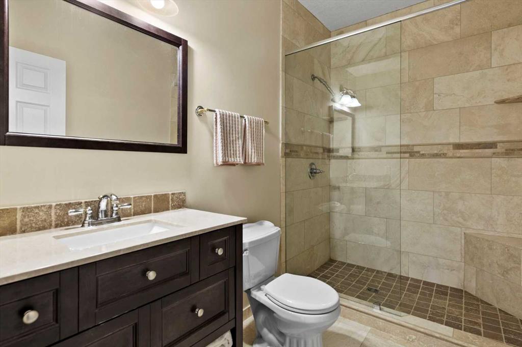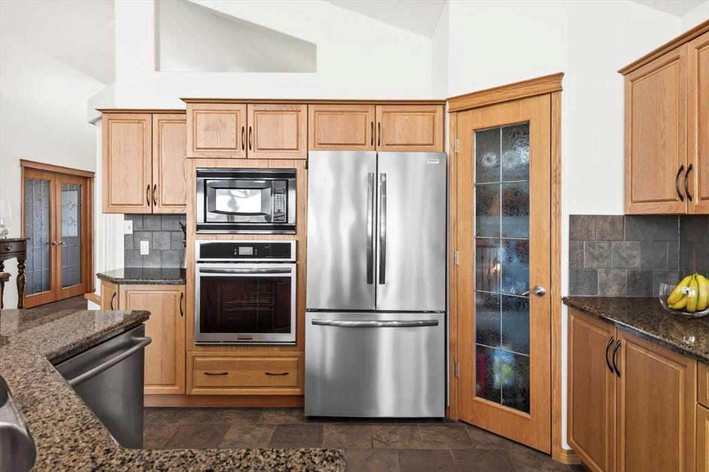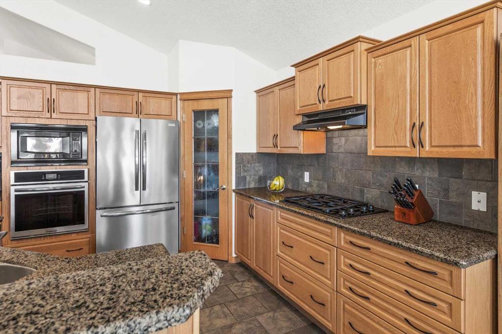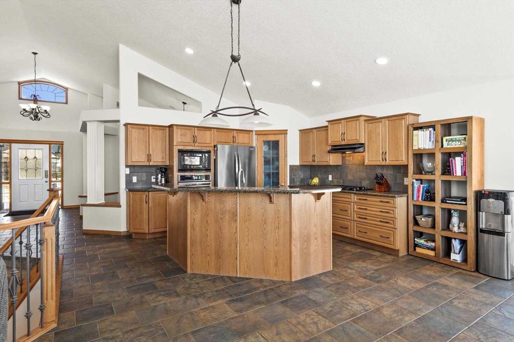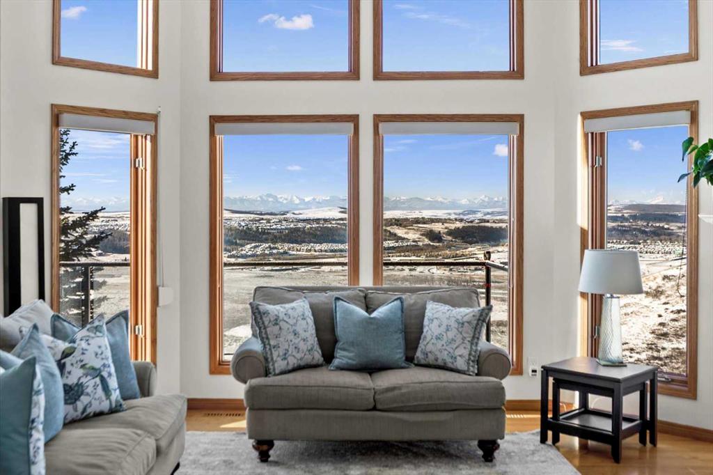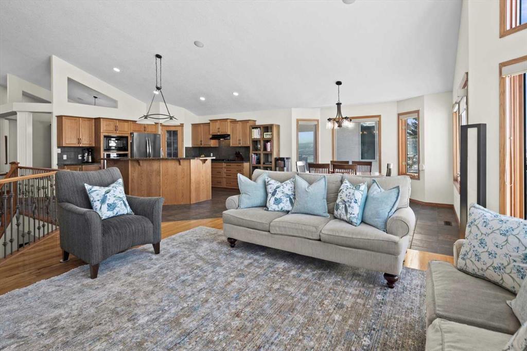 Perched in a prime southwest facing location, this traditionally designed executive walkout bungalow offers unparalleled views of the surrounding mountains and valleys, with no obstructions to spoil the scenic beauty. Impeccably maintained and boasting 1,713 square feet of living space, this home blends classic charm with modern comforts, making it an ideal retreat for both relaxation and entertainment. The spacious entry flows into the open-concept main floor and features a light, neutral interior that enhances the spacious feel of the home. Off the entry is a separate home office or den with French doors for privacy. Opposite the office is the main floor laundry and mud room with lots of storage space and access to the oversized double car garage. The elegant, formal dining room is a perfect location for hosting small or large gatherings. Floor to ceiling windows and soaring high ceilings flood the space with natural light, creating an inviting and airy ambiance. A central fireplace in the living room offers warmth and coziness, perfect for cooler evenings. Sliding doors lead out to a deck, where you can enjoy the stunning views while sipping your morning coffee or hosting gatherings. The chef-inspired kitchen is outfitted with high-end stainless steel appliances, granite countertops, and a large island for additional workspace. New refrigerator, oven, washer and dryer this year and dishwasher 2024. A walk-in pantry provides ample storage, while the adjacent dining area flows effortlessly into the living room, making it perfect for both intimate dinners and entertaining larger groups. The master suite, conveniently located on the main floor, is a true sanctuary. It features a luxurious 5-piece ensuite bath and offers easy access to the main living areas. The walkout lower level is an entertainer’s dream, with in-floor heating and a media room complete with theater seating for an immersive viewing experience. A games room with a full bar and pool table is ideal for hosting friends, while the custom library offers a quiet spot for reading or relaxation. Two additional bedrooms are located on the lower level, along with a spacious 3-piece bath. The lower level also opens onto a patio, offering seamless access to the beautifully landscaped yard with a terraced garden and full irrigation system. For added comfort, the home is equipped with central air conditioning and surround sound throughout, ensuring the perfect atmosphere year-round. Whether you're enjoying a cozy evening by the fire, hosting a game night, or unwinding on the deck with a glass of wine, this home offers an exceptional lifestyle.