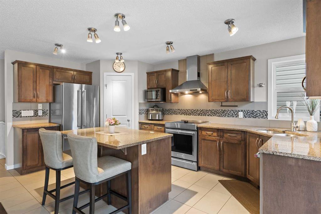OPEN HOUSE: SAT. MARCH 28, 11 AM to 1 PM | Air Conditioning | Hot Tub | Huge Backyard | Double Attached Garage | Granite Countertops | Stainless Steel Appliances | Pantry | Bonus Room | Gas Fireplace | Large Storage Shed | Welcome to 74 Hillcrest Street SW in the established, family-friendly community of Hillcrest in Airdrie. Offering over 1,880 sq ft above grade and an exceptionally functional layout, this home delivers the space, light, and outdoor living everyone is looking for. The main floor opens with a generous foyer and flows naturally into an open-concept living space designed for everyday practicality. The kitchen is anchored by granite countertops, a large central island, stainless steel appliances, a chimney-style range hood, a corner sink framed by windows, and a walk-in pantry. Ample cabinetry ensures storage is never an issue. The adjacent dining nook is surrounded by windows, creating a bright and welcoming space that connects directly to the full-width deck. The large living room, a main-floor laundry, and a powder room complete this level. Upstairs, the 18 x 13 bonus room stands out with oversized windows that fill the space with natural light, making it ideal for a media room, play area, or second family lounge. The primary bedroom offers a walk-in closet and a private 5-piece ensuite with soaker tub and separate shower. Two additional bedrooms and a full bathroom complete the upper level. The backyard is a major highlight. Larger than many comparable lots, it offers a sizable deck, hot tub, storage shed, and ample fenced yard space for kids, pets, and entertaining. Central air conditioning provides added comfort through the summer months. Hillcrest is consistently sought after for its quiet streets, parks, playgrounds, and walking paths. Schools and everyday amenities are nearby, and quick access to 8 Street SW and Yankee Valley Boulevard connects easily to Highway 2 for a smooth commute into Calgary. You are also well-positioned for westbound travel toward Cochrane, Canmore, and the Rocky Mountains, making weekend escapes part of your lifestyle. A well-designed home in a strong community, offering space, comfort, and long-term value.