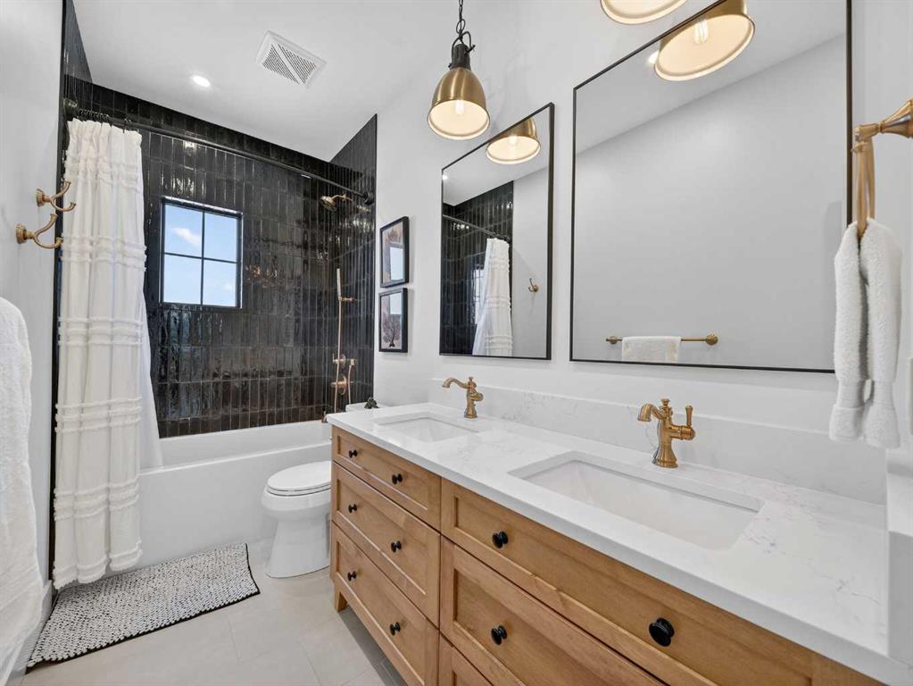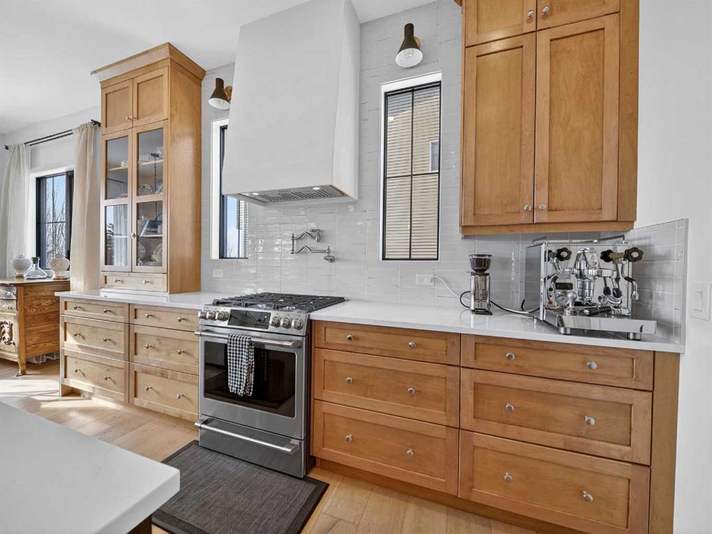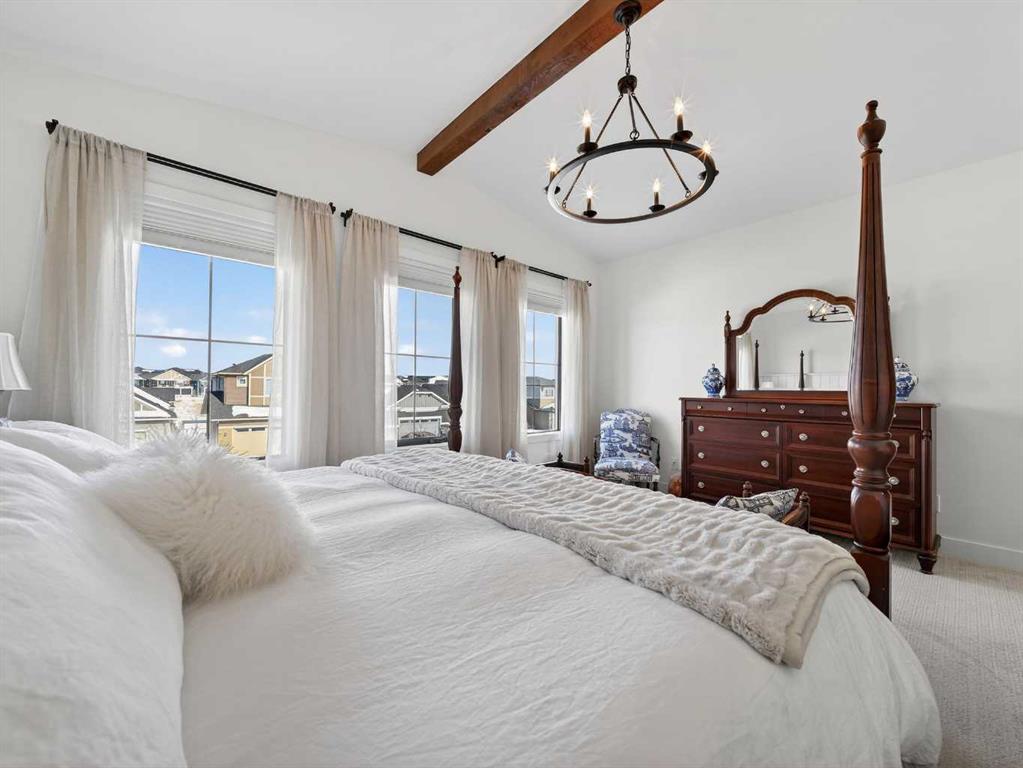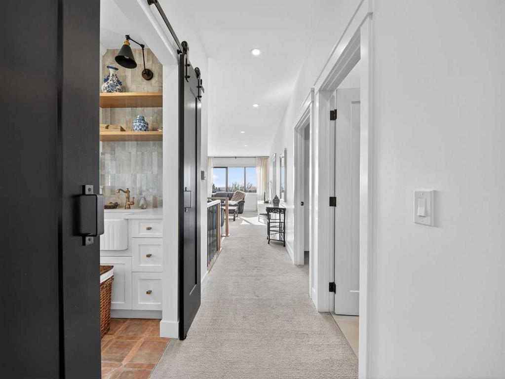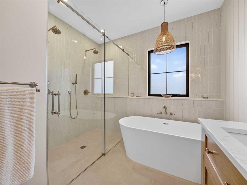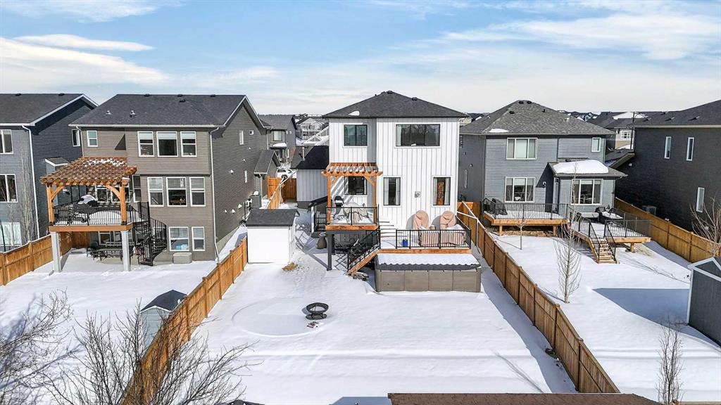 Welcome to an extraordinary custom-built farmhouse by Batten Lane in the prestigious community of Wedderburn in Okotoks — a residence where refined craftsmanship meets timeless elegance. From the moment you arrive, the home’s striking curb appeal, architectural charm, and warm, inviting presence create an unforgettable first impression. A gracious and spacious foyer welcomes you inside, immediately setting the tone for the thoughtful design. Just off the entry, a beautifully appointed office offers both functionality and sophistication, complete with bespoke built-in cabinetry and a custom desk. As you continue into the heart of the home, the 10 ft ceilings and breathtaking kitchen unfolds in true European Tuscan farmhouse style. Floor-to-ceiling custom maple cabinetry, rich in detail and warmth, is perfectly complemented by white oak flooring that flows seamlessly throughout the main level. A generous central island anchors the space, while a statement custom hood fan, built-in appliances, and exquisite imported tile elevate the design. Expansive windows capture sweeping west-facing mountain views and southern vistas overlooking Okotoks. The adjoining dining and living areas are designed for both intimate evenings and elegant entertaining. A custom gas fireplace provides warmth and ambiance, while an abundance of windows invites natural light and frames the stunning landscape beyond. Completing the main floor is a thoughtfully designed mudroom featuring custom cabinetry and a pristine dog bath. Ascending to the upper level, you are welcomed by a stunning bonus room perfectly positioned to take full advantage of the south-facing views over Okotoks and the majestic Rocky Mountains to the west. Three spacious bedrooms offer comfort and refinement. The primary retreat is a sanctuary unto itself, showcasing a spa-inspired ensuite with dual vanities, a freestanding soaking tub, and an oversized custom walk-in shower. Two additional bedrooms share a beautifully appointed bathroom. The laundry room is exceptional — custom cabinetry and farmhouse sink create a space as beautiful as it is functional. The fully developed lower level elevates this home even further. In addition to a completely separate legal basement suite with its own private entrance, quartz countertops, stainless steel appliances, and stacking washer and dryer — the lower level also features an additional bedroom or multifunction room with a full private ensuite. Bright, airy, and finished to the same uncompromising standards as the upper levels, nothing has been overlooked. Outdoors, the property truly shines. Situated on one of the largest lots in Wedderburn, the expansive south-facing backyard offers endless opportunity for relaxation and recreation. A two-tiered deck with pergola creates the perfect setting for summer entertaining with the Aqua Trainer 17AX and open skies. Every detail of this residence has been meticulously curated, the epitome of luxury farmhouse living.